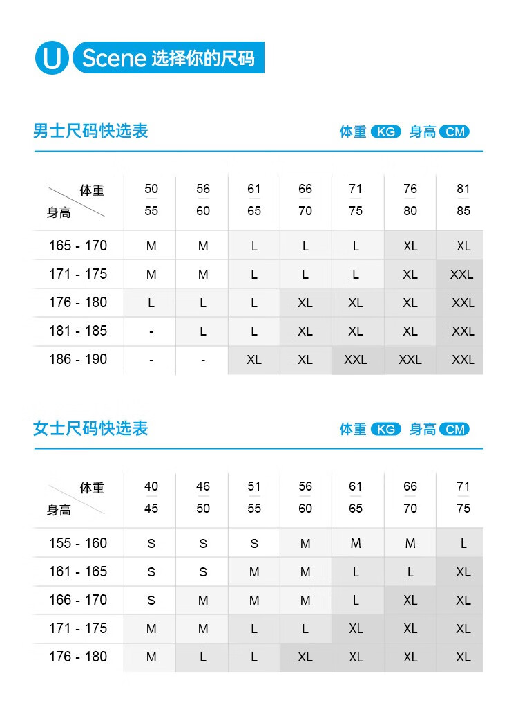 China (cm) 160-165/84-86 165-170 / 88-90 167-172 / 92-96 168-173 / 98-102 170-176 / 106-110