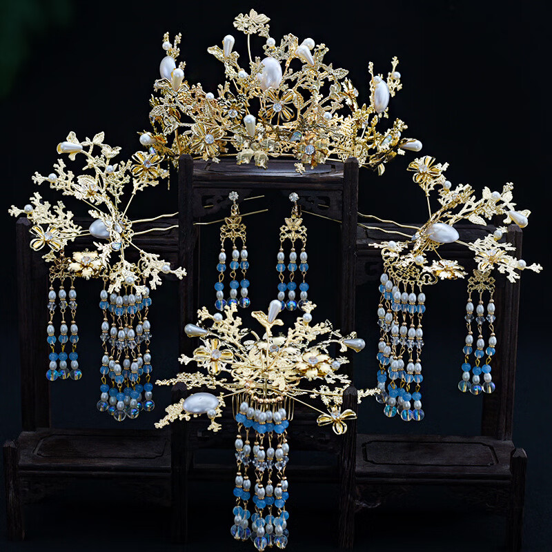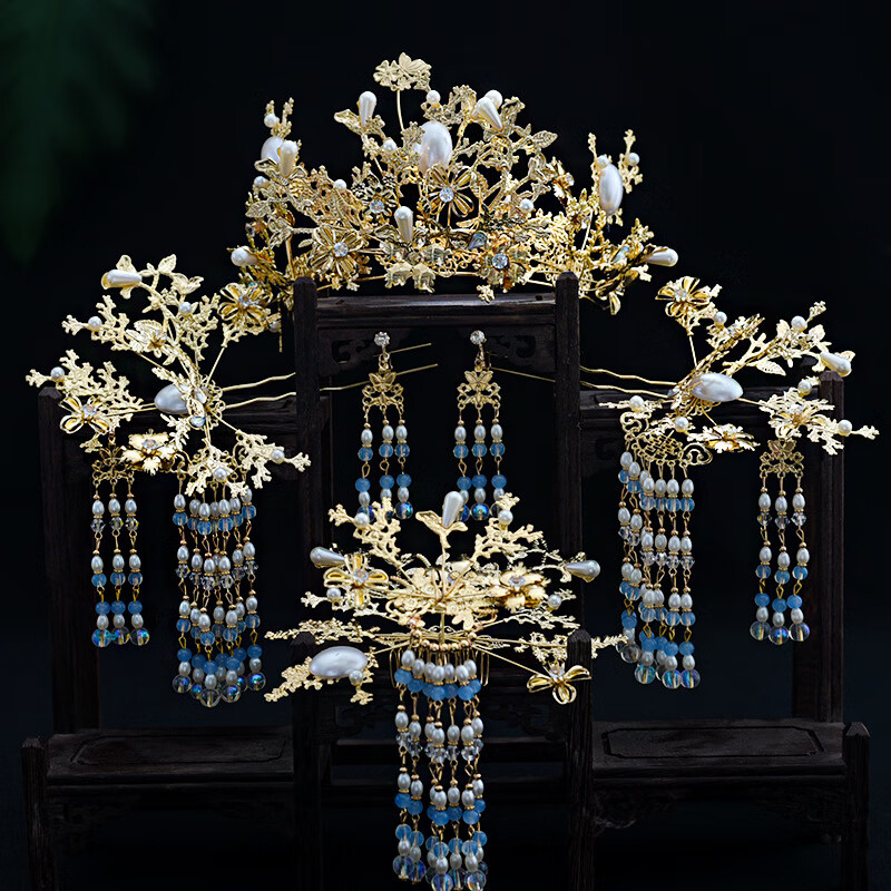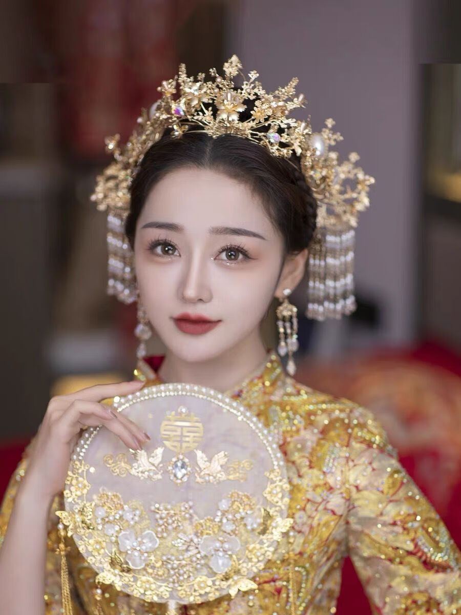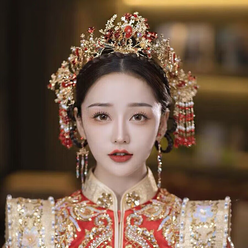 Wanbaozi bride Xiuhe tiara Chinese style ancient costume red phoenix crown tassel hair band back pressed Xiuhe clothing accessories make the face look smaller red crown suit