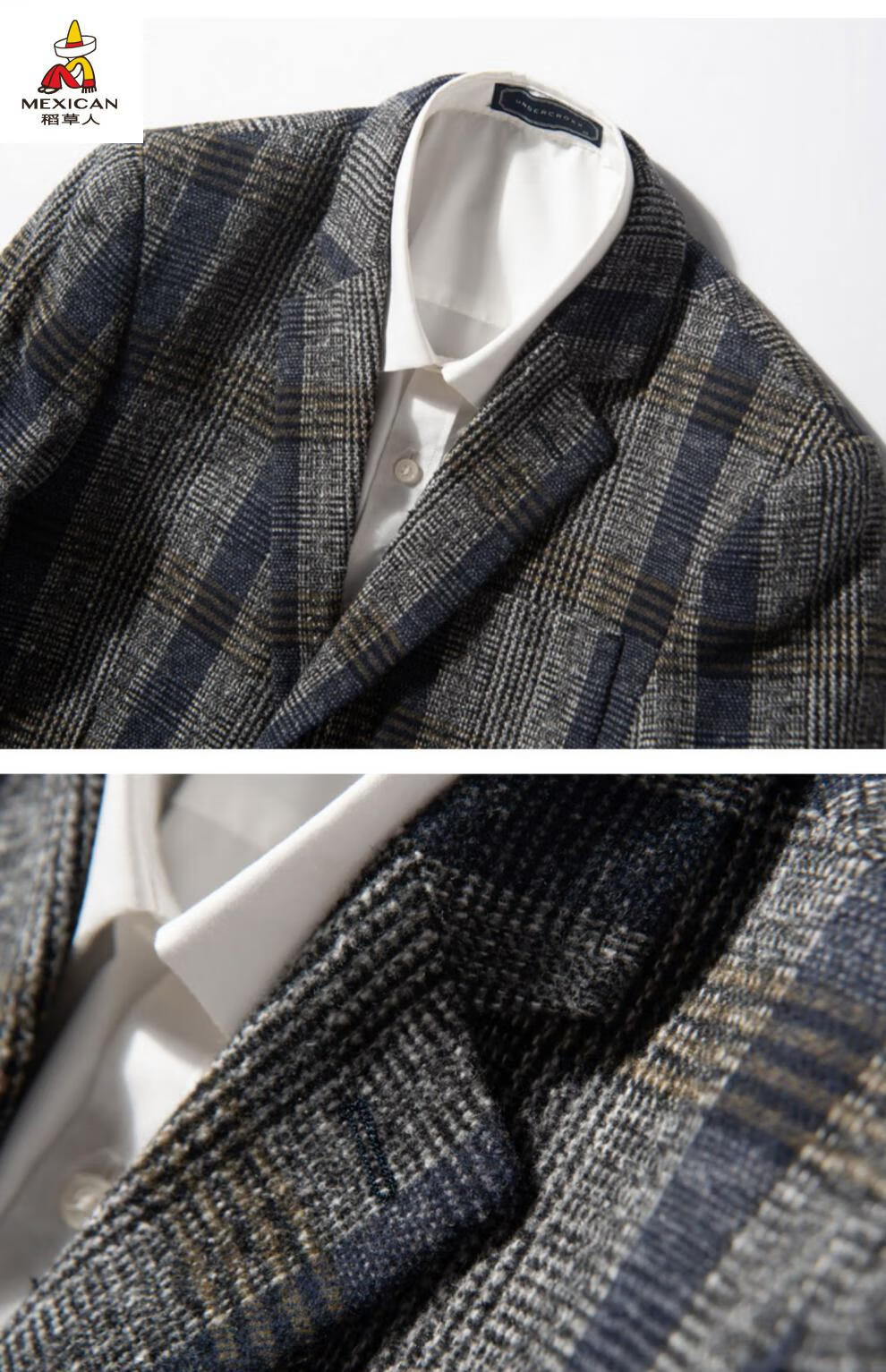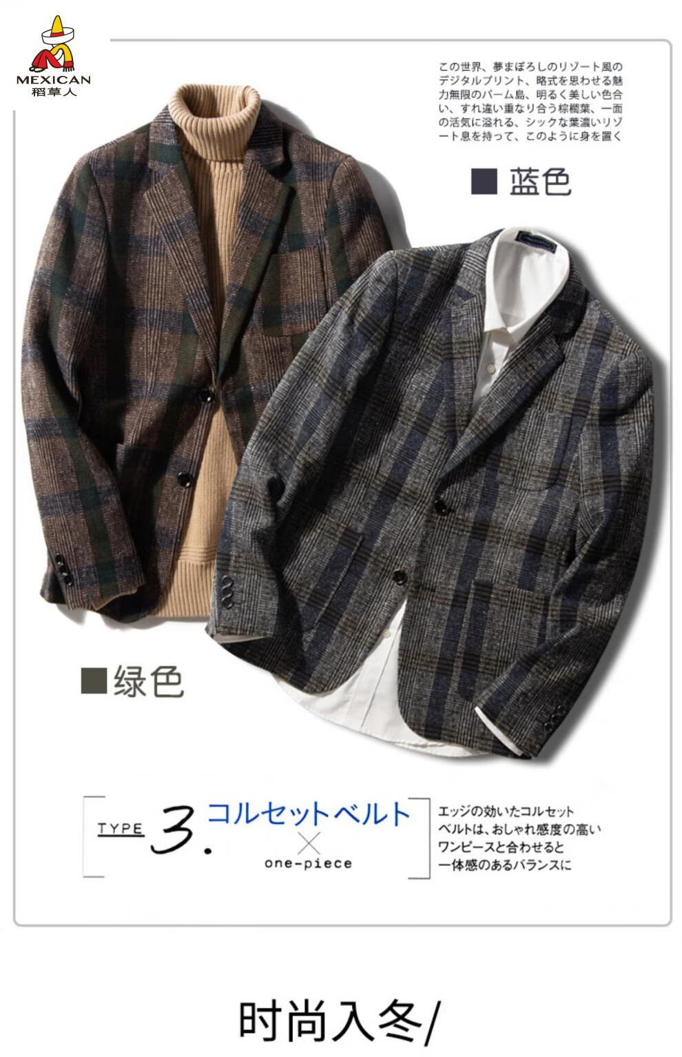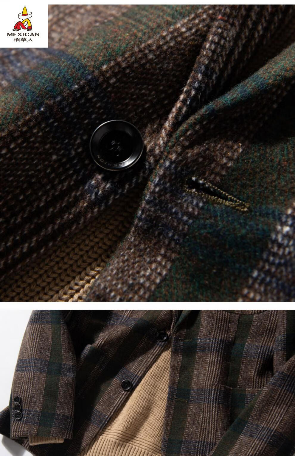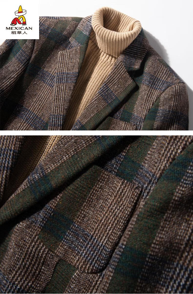 Scarecrow British Retro Formal Tartan Wool Jacket Suit Business Cashmere Warm Wool Single Suit Men's Thick Homemade Unique Green M