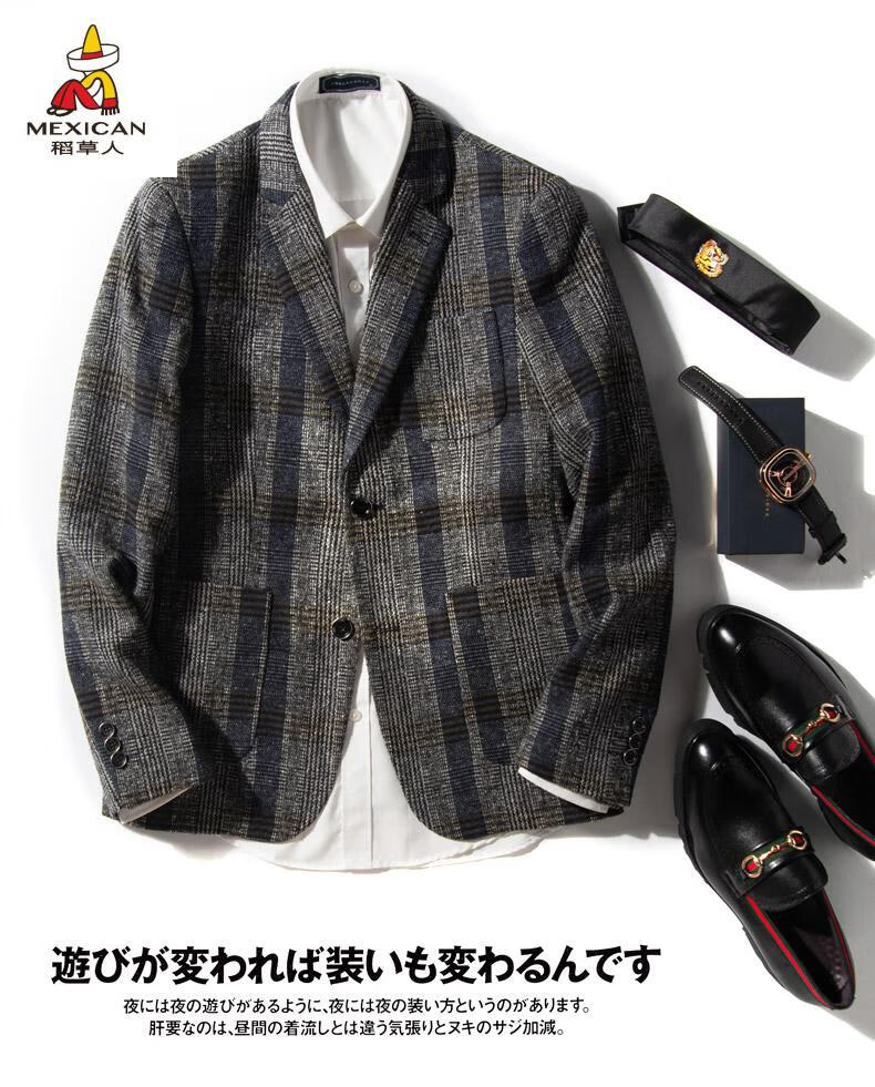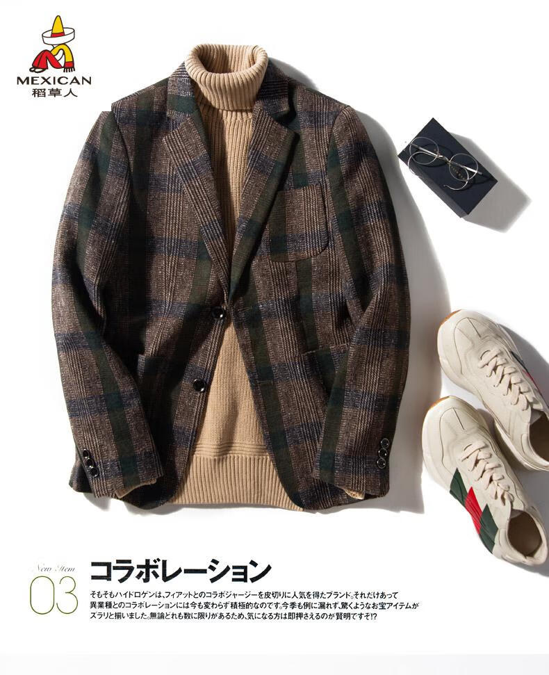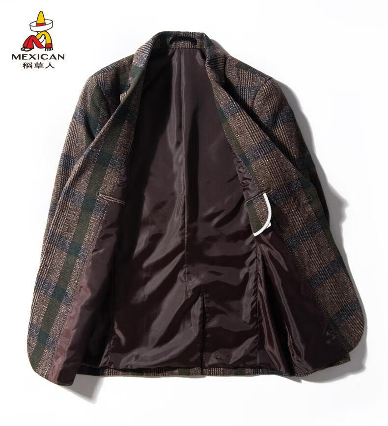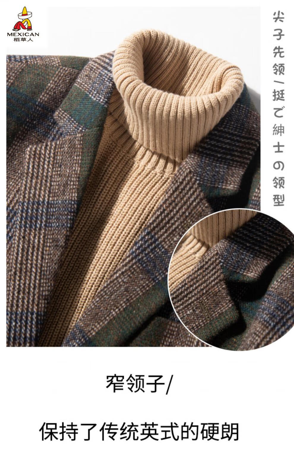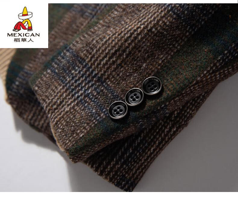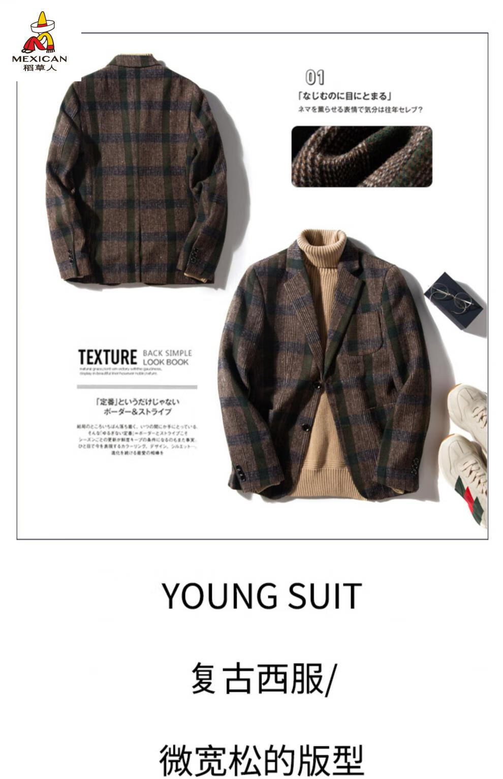 Scarecrow British Retro Formal Tartan Wool Jacket Suit Business Cashmere Warm Wool Single Suit Men's Thick Homemade Unique Green M