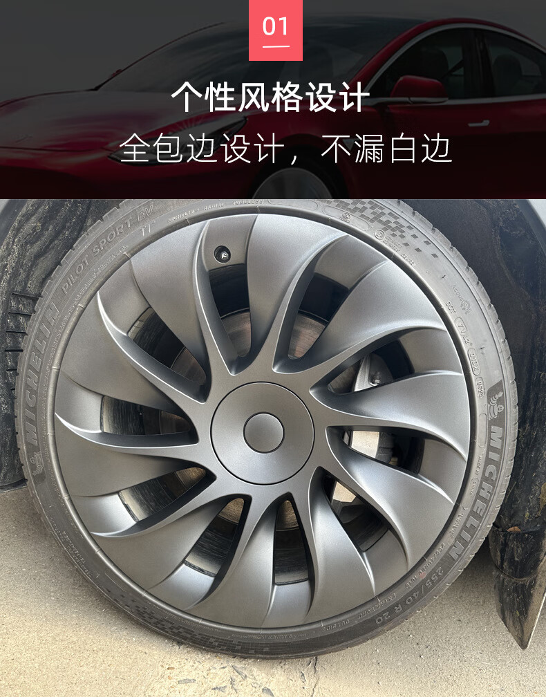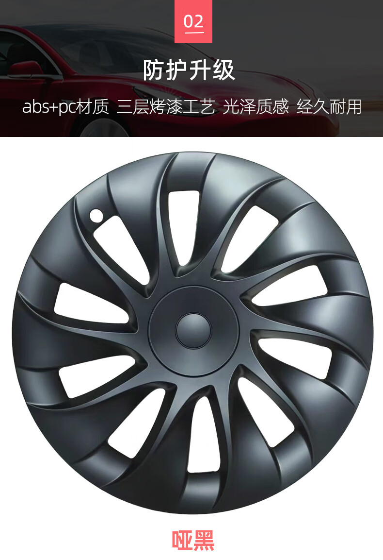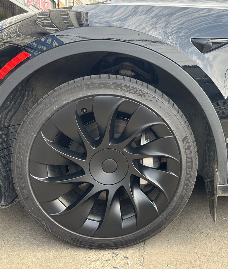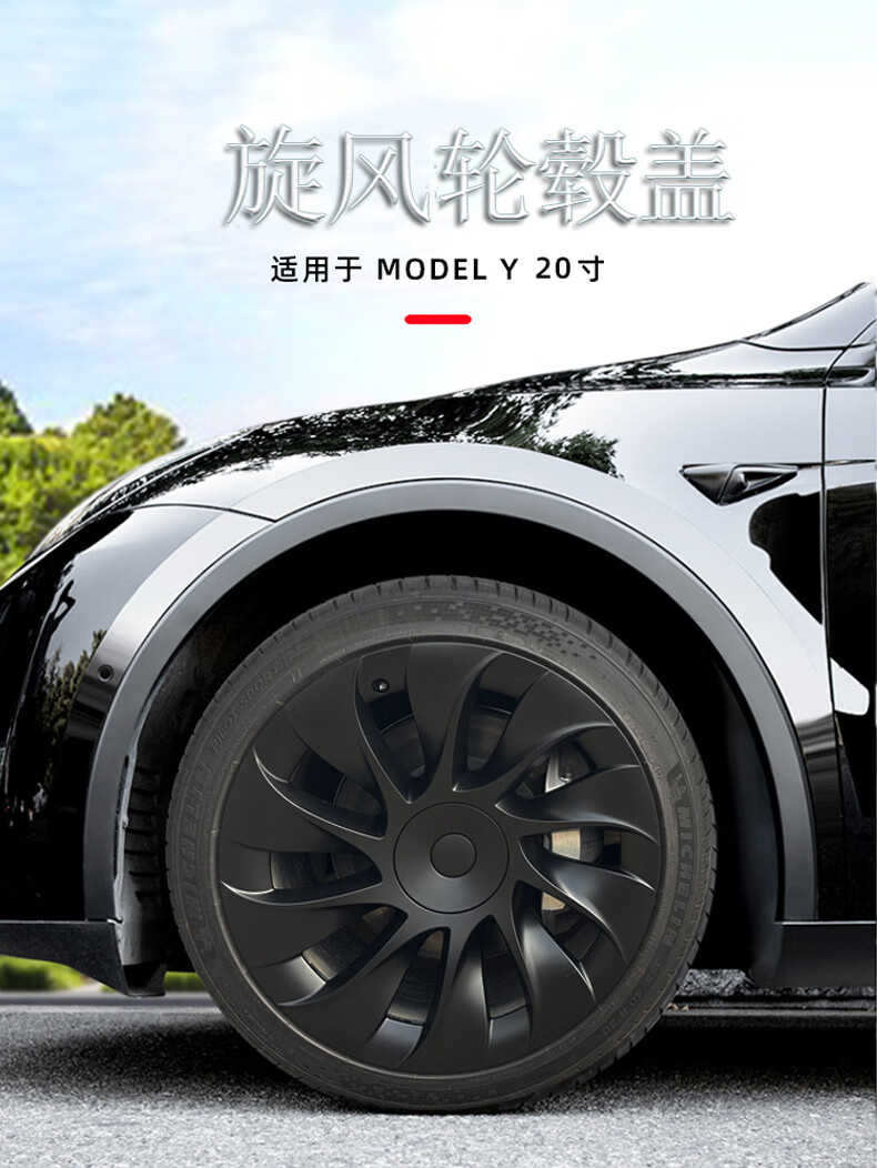 Suitable for Tesla modely 20-inch hub cap 19/20/21-inch protective ring original modified cyclone wheel old model Y 20-inch flat matte black 4 pieces + matte black label