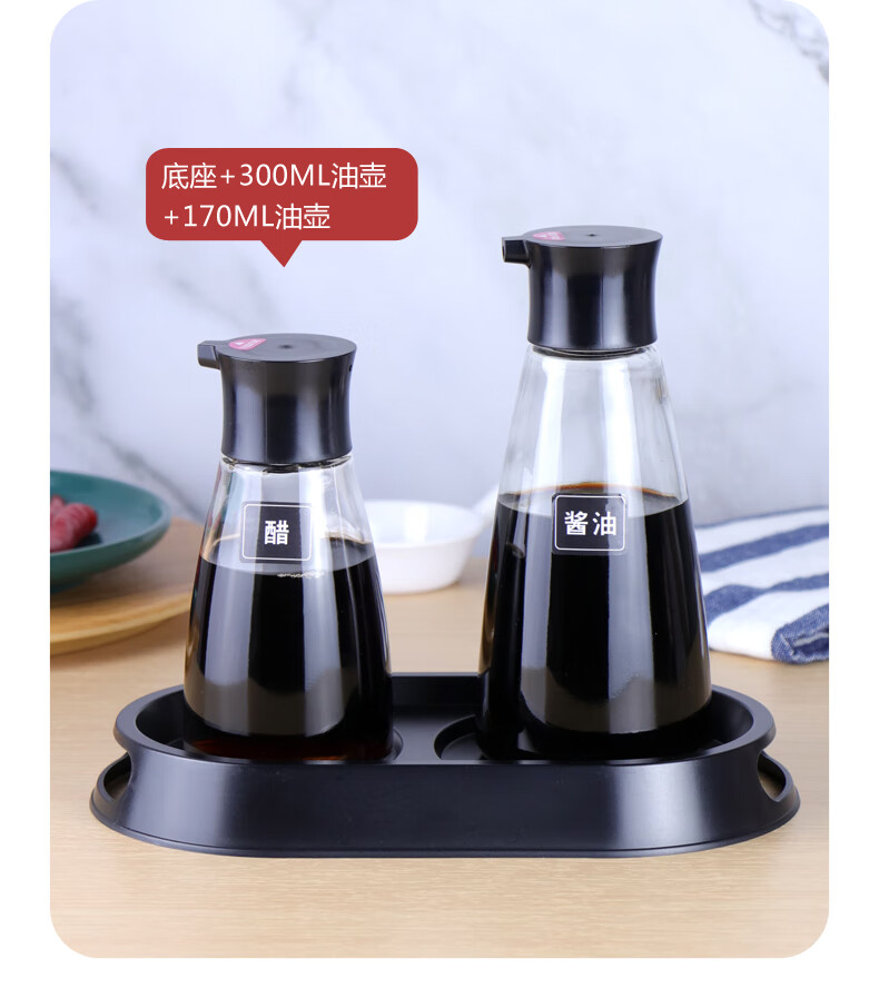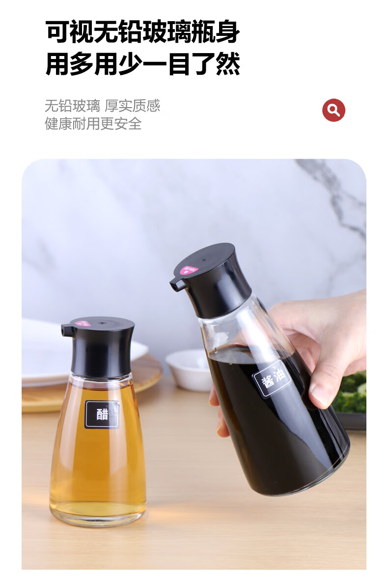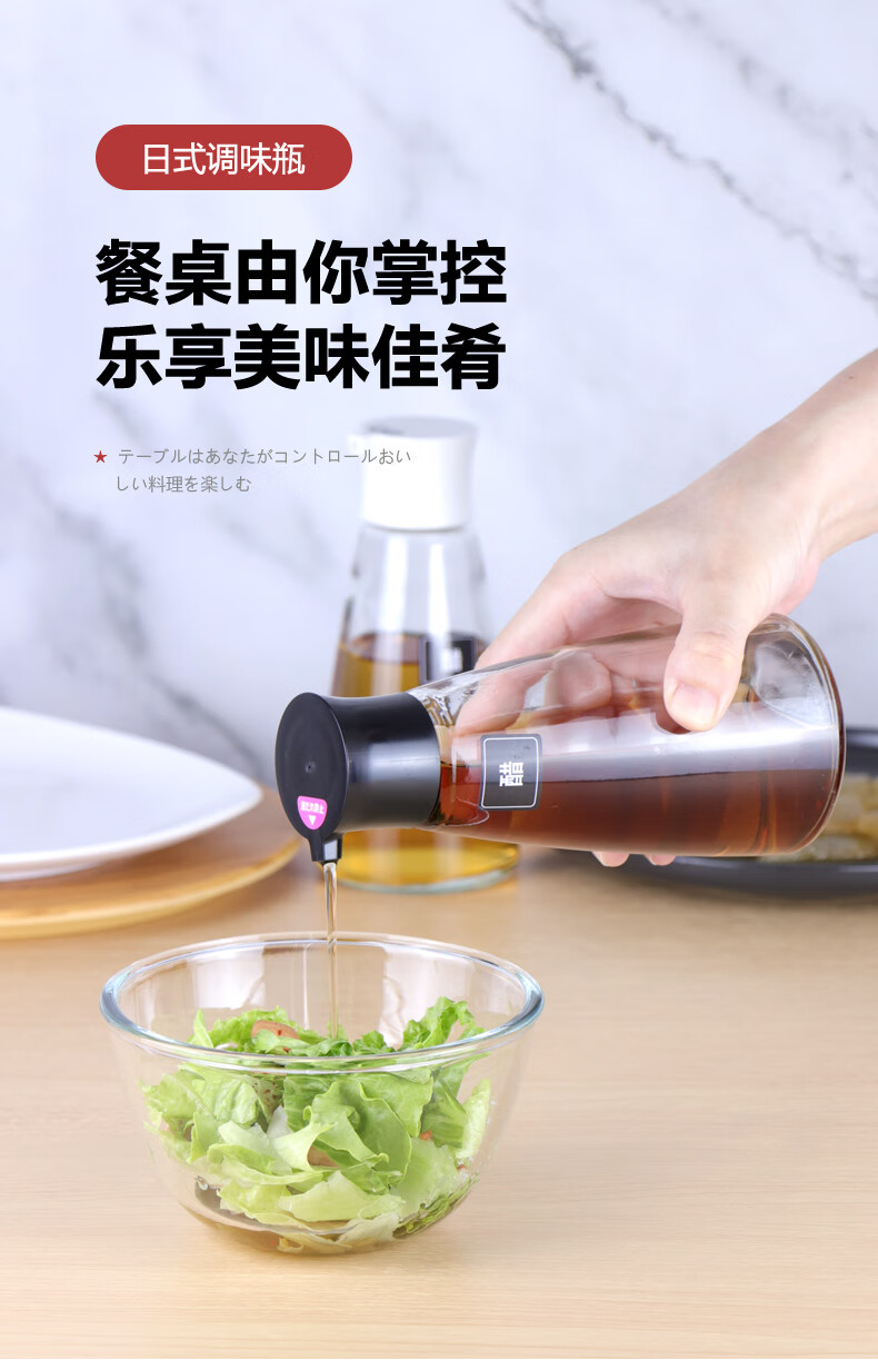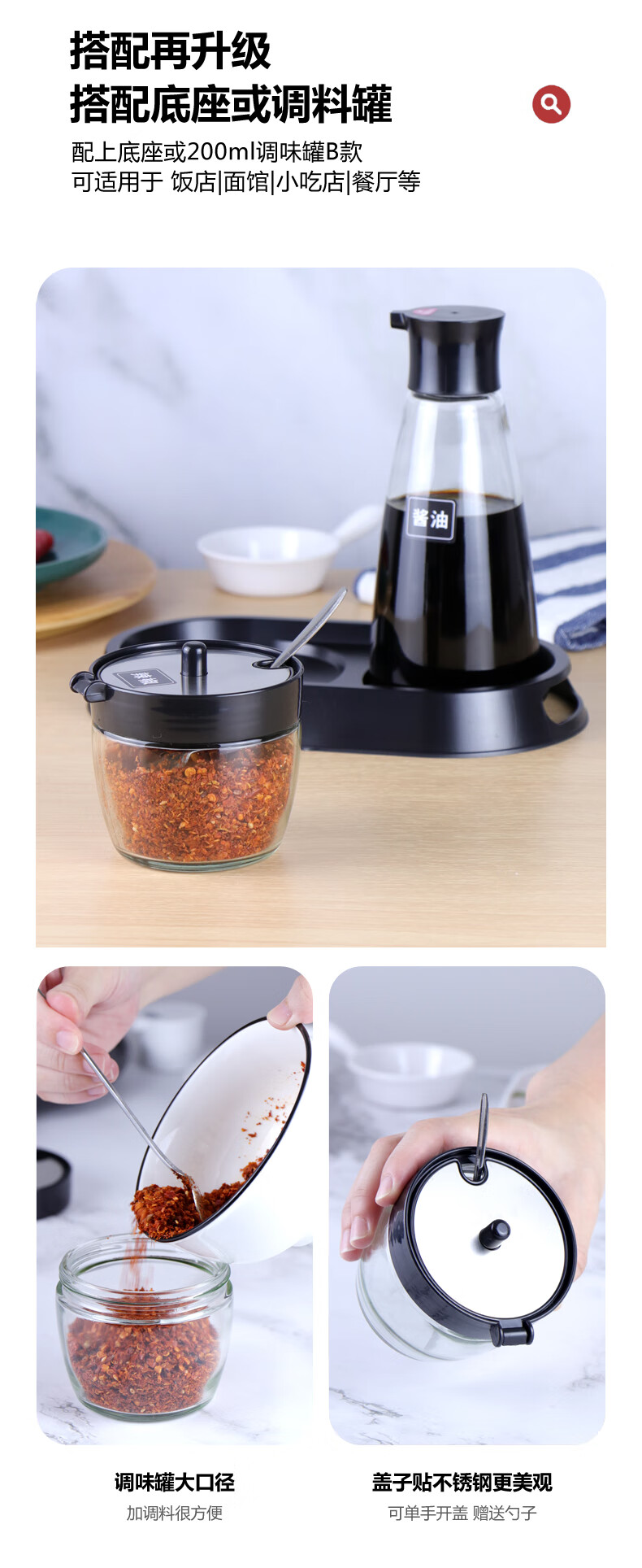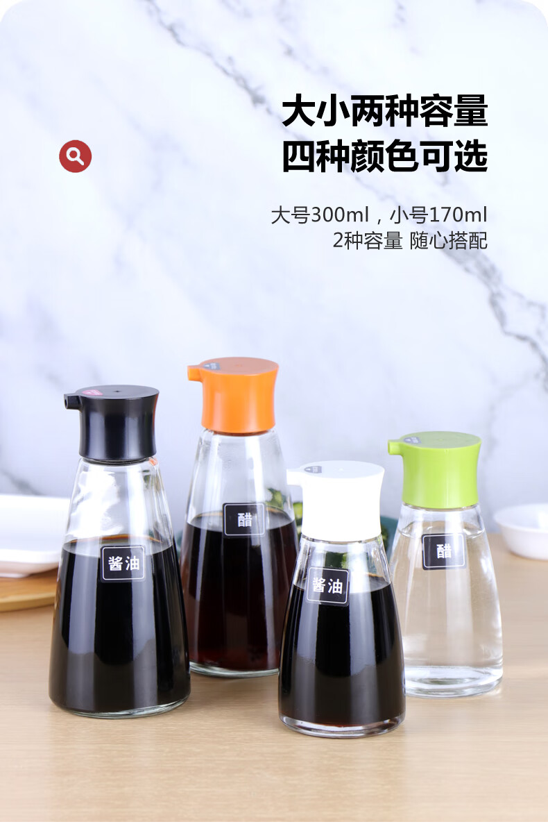 Yukdadi glass vinegar pot household large capacity soy sauce bottle seasoning bottle restaurant vinegar bottle chili jar black large + sticker 300ml