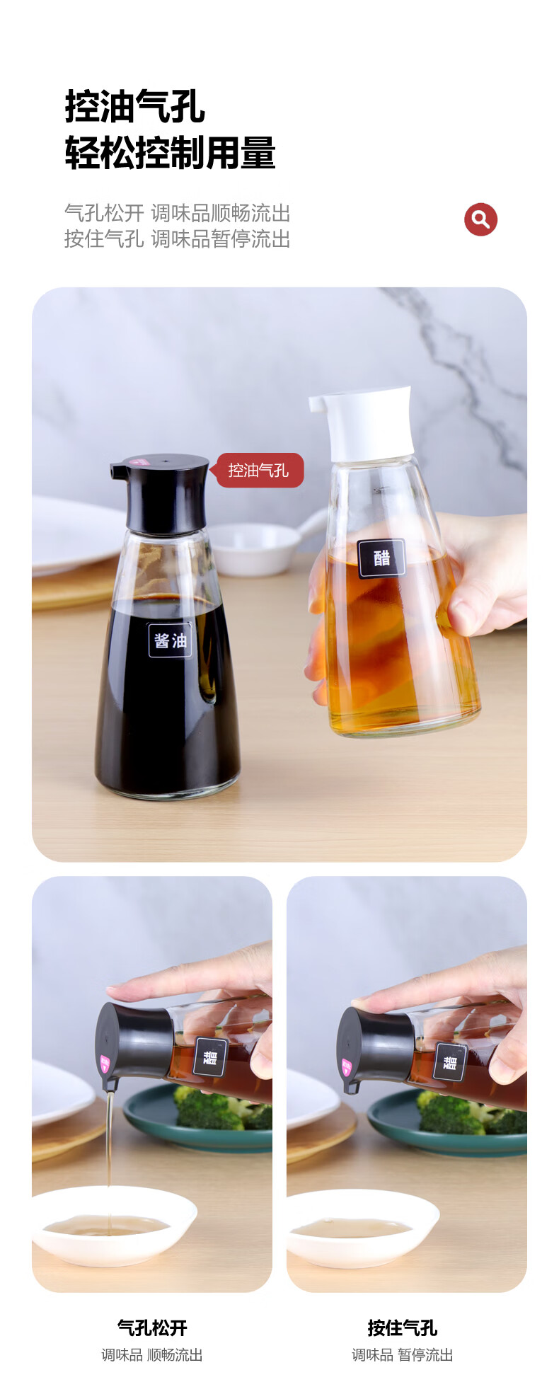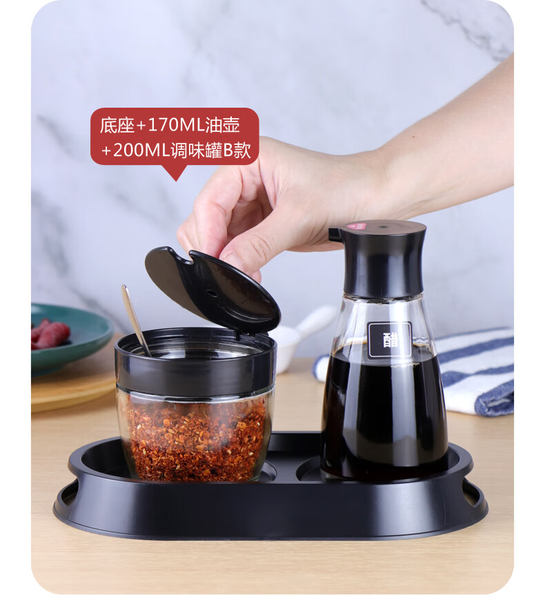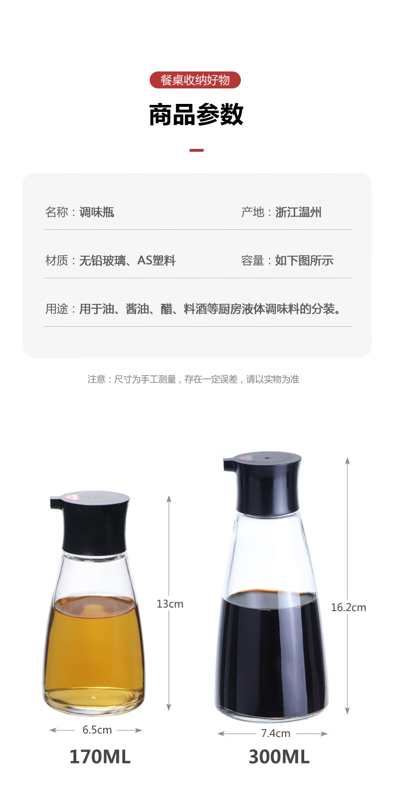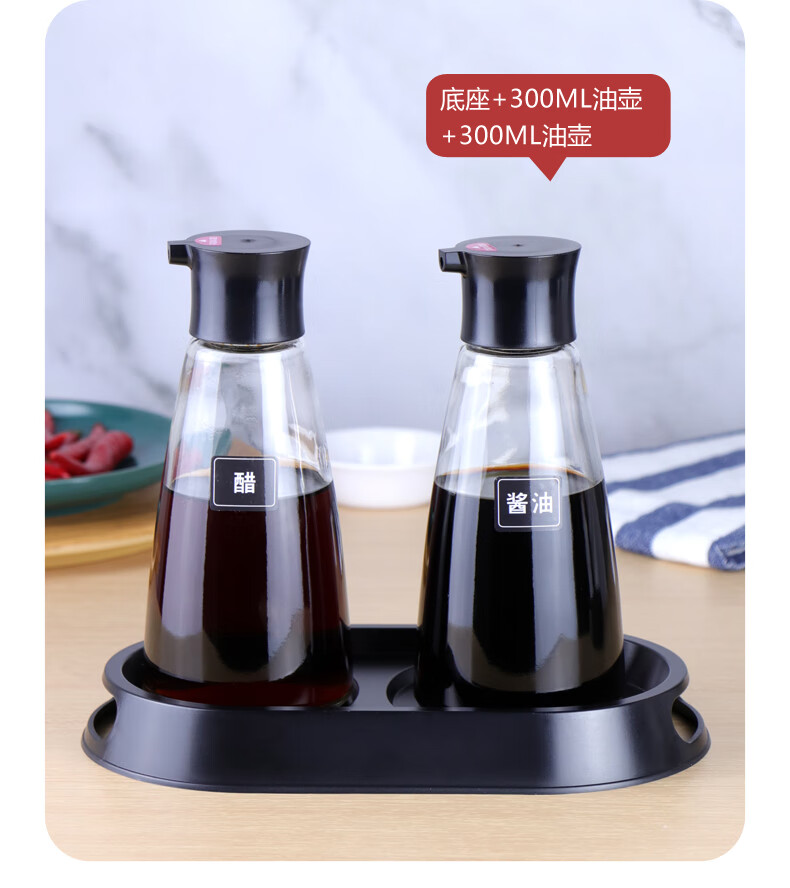 Yukdadi glass vinegar pot household large capacity soy sauce bottle seasoning bottle restaurant vinegar bottle chili jar black large + sticker 300ml