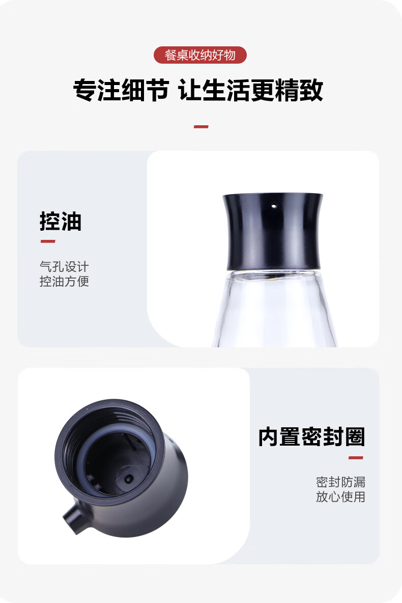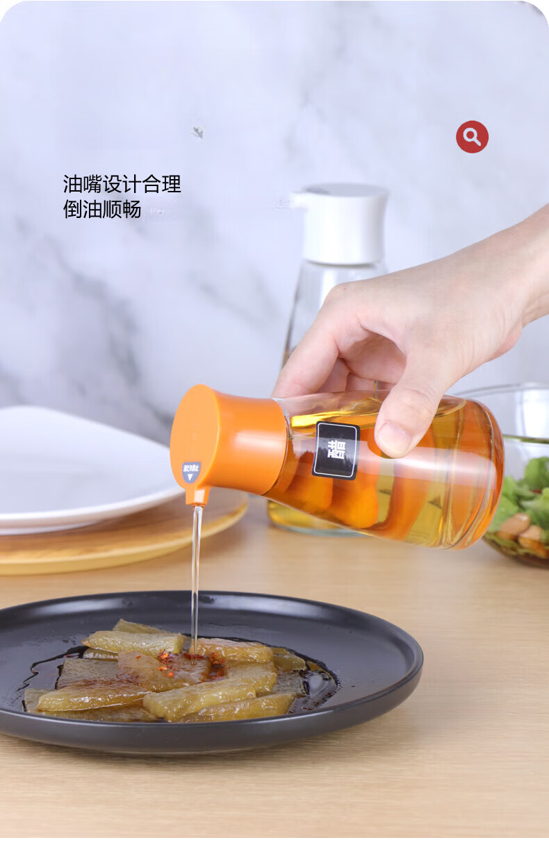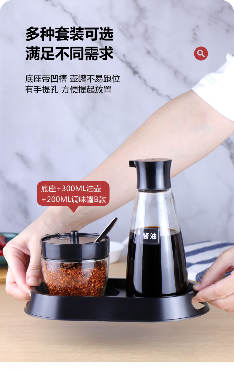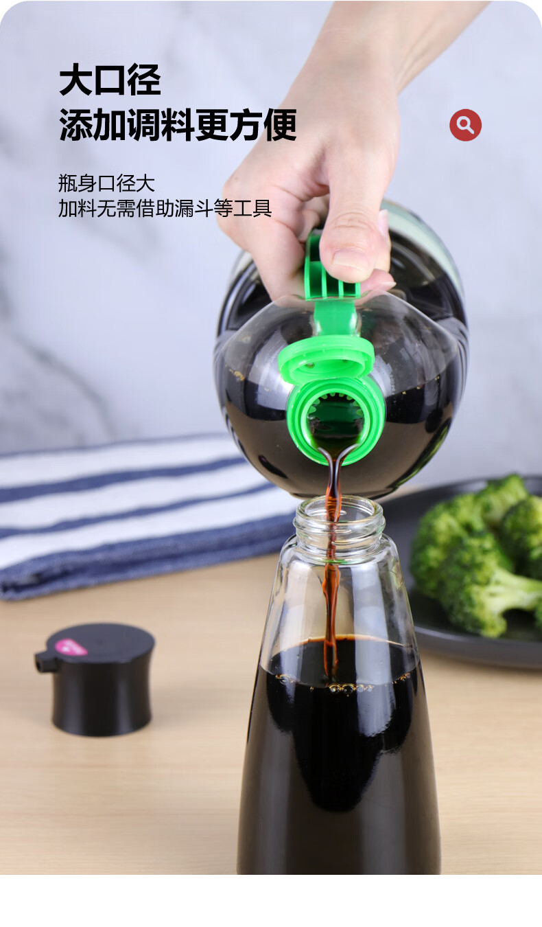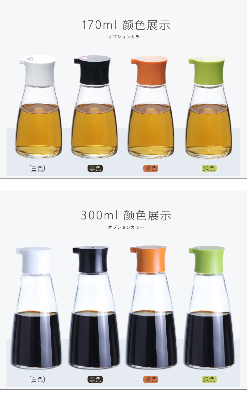 Yukdadi glass vinegar pot household large capacity soy sauce bottle seasoning bottle restaurant vinegar bottle chili jar black large + sticker 300ml