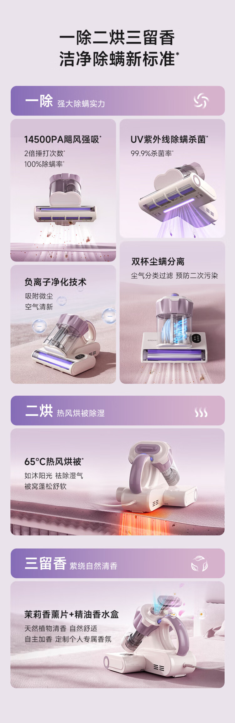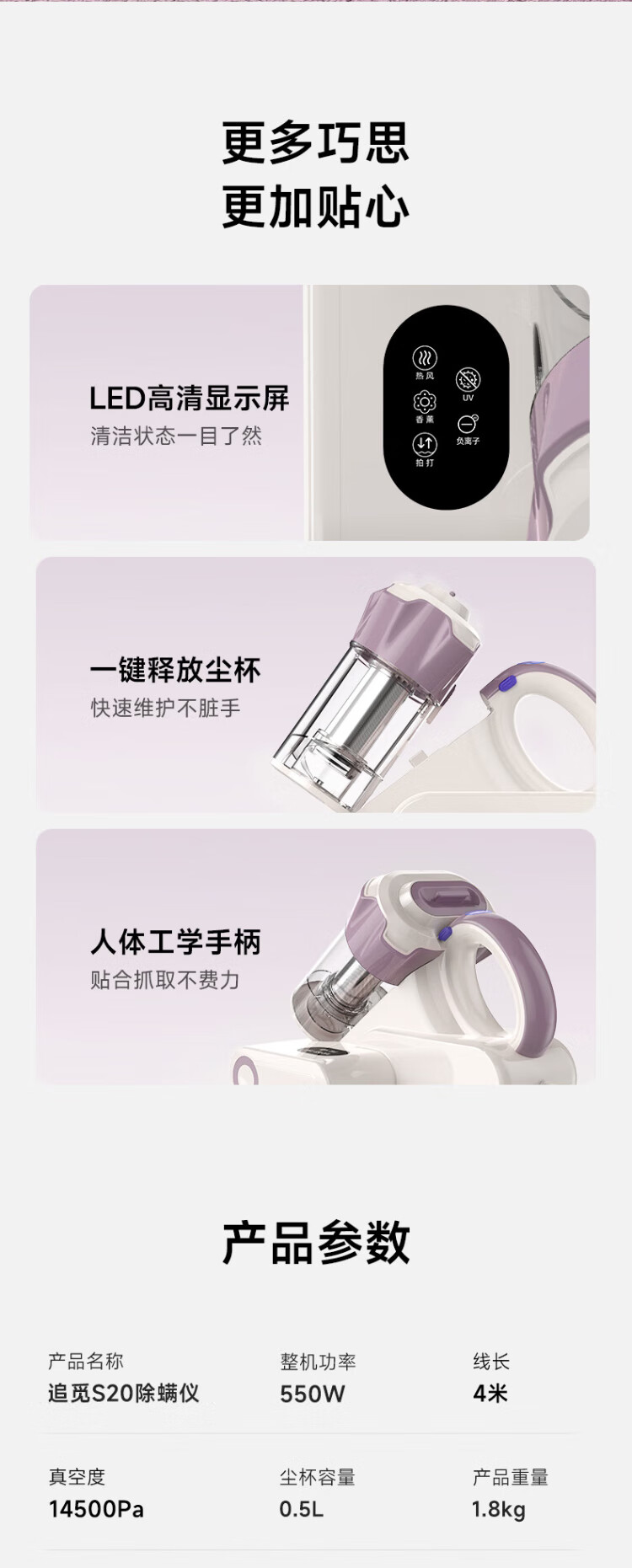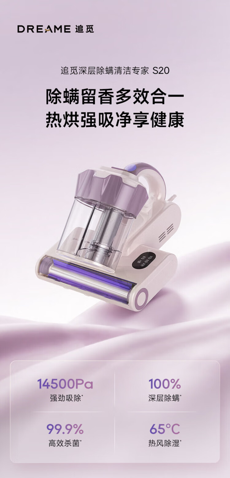 Chai Mi Spring Festival Gala S20 Series Newly Upgraded LED Ultraviolet Household Bed Vacuum Cleaner BedBao Large Suction Sterilization and Dehumidification Mite Remover S20 (65 Thermal Drying Dehumidification)