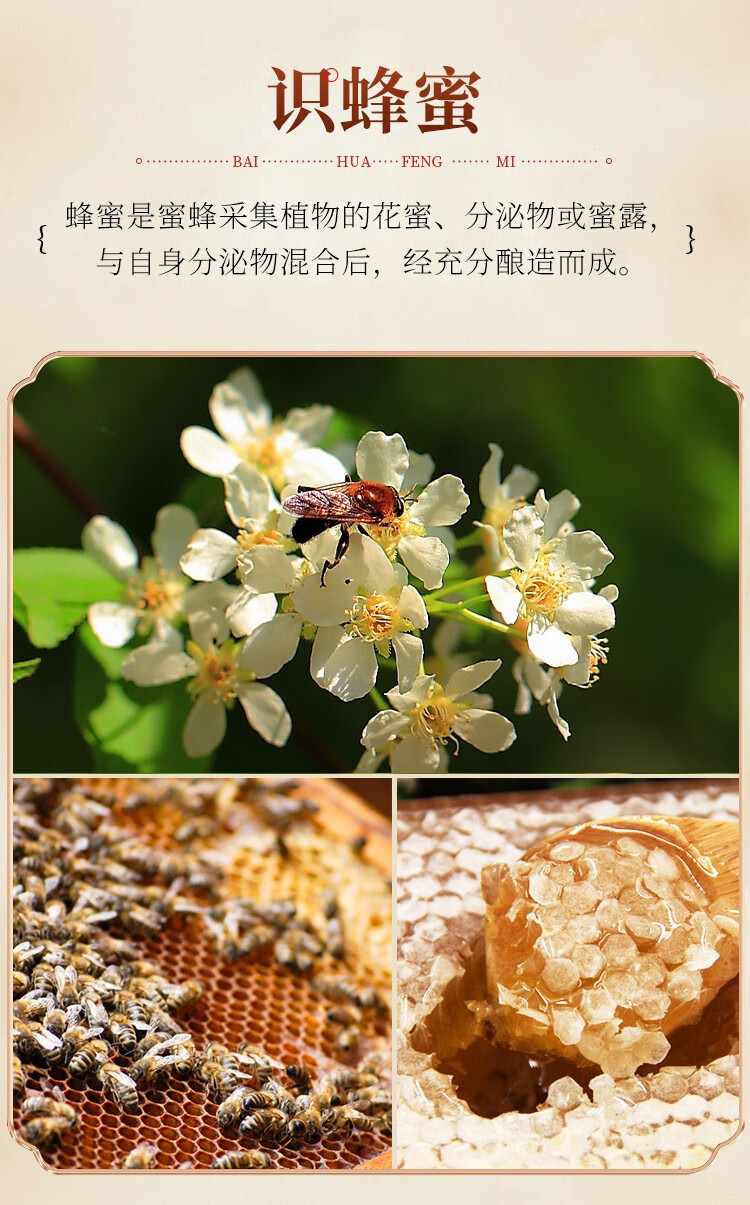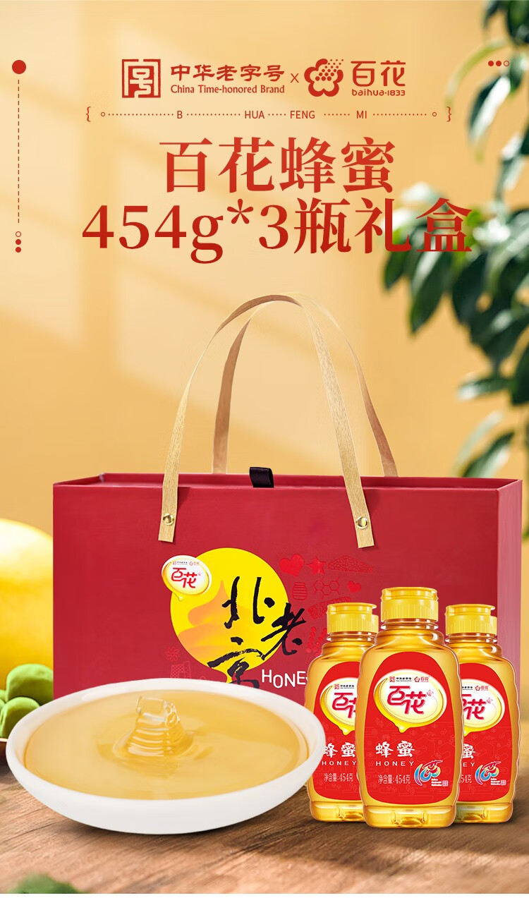Baihua Honey Chinese Time-honored Brand Breakfast Milk Oatmeal Companion Jinghua Honey 450g*3 bottles gift box