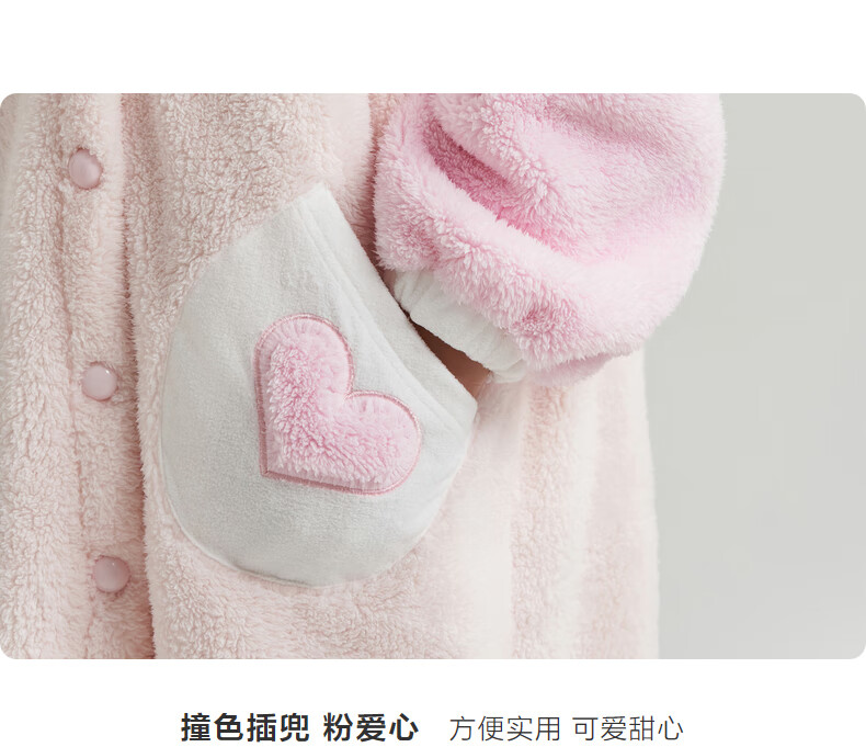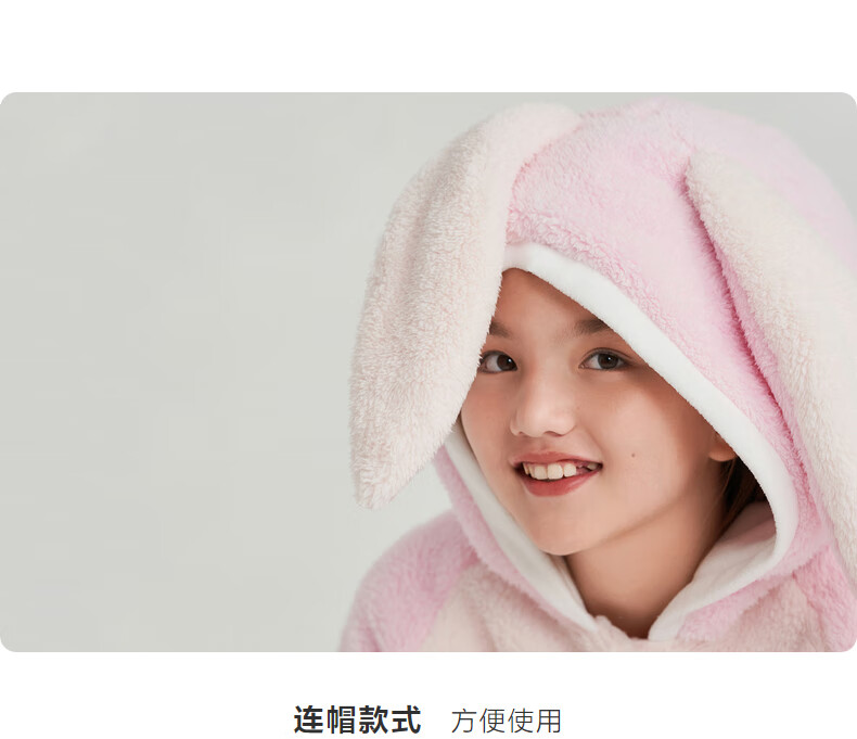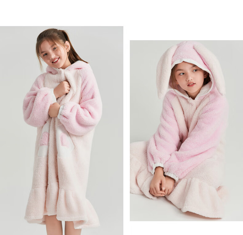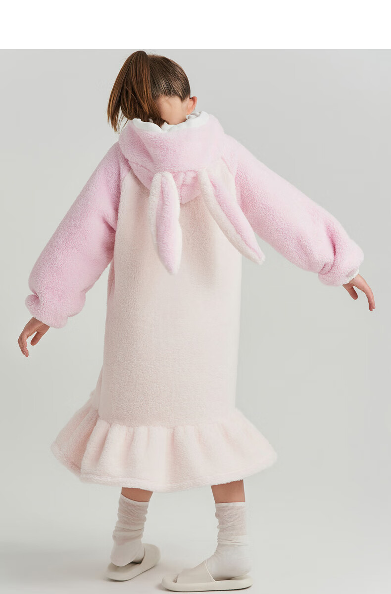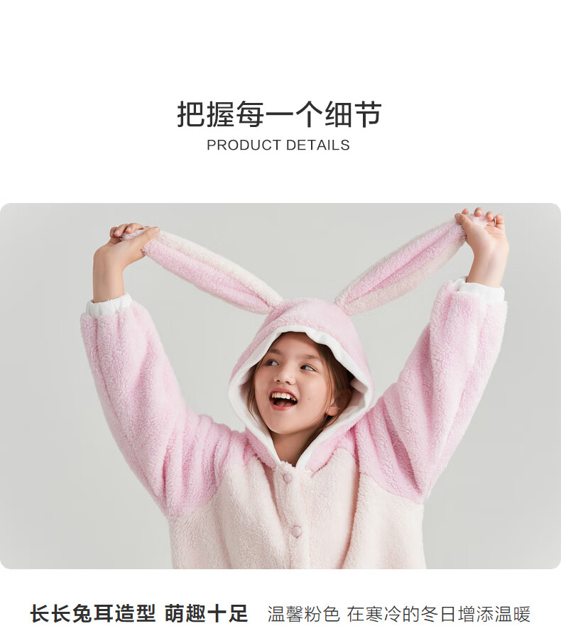 Adoring boy sweet and cute autumn and winter thickened home clothes pajamas girl fluffy bunny hooded pajamas fun bunny ears pink pink 170