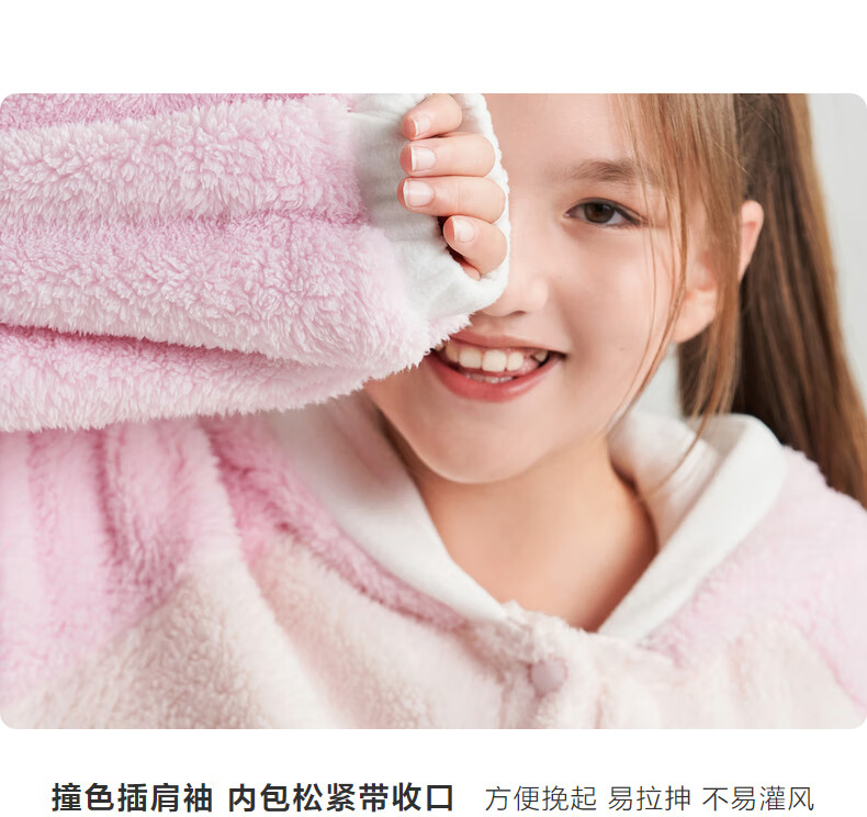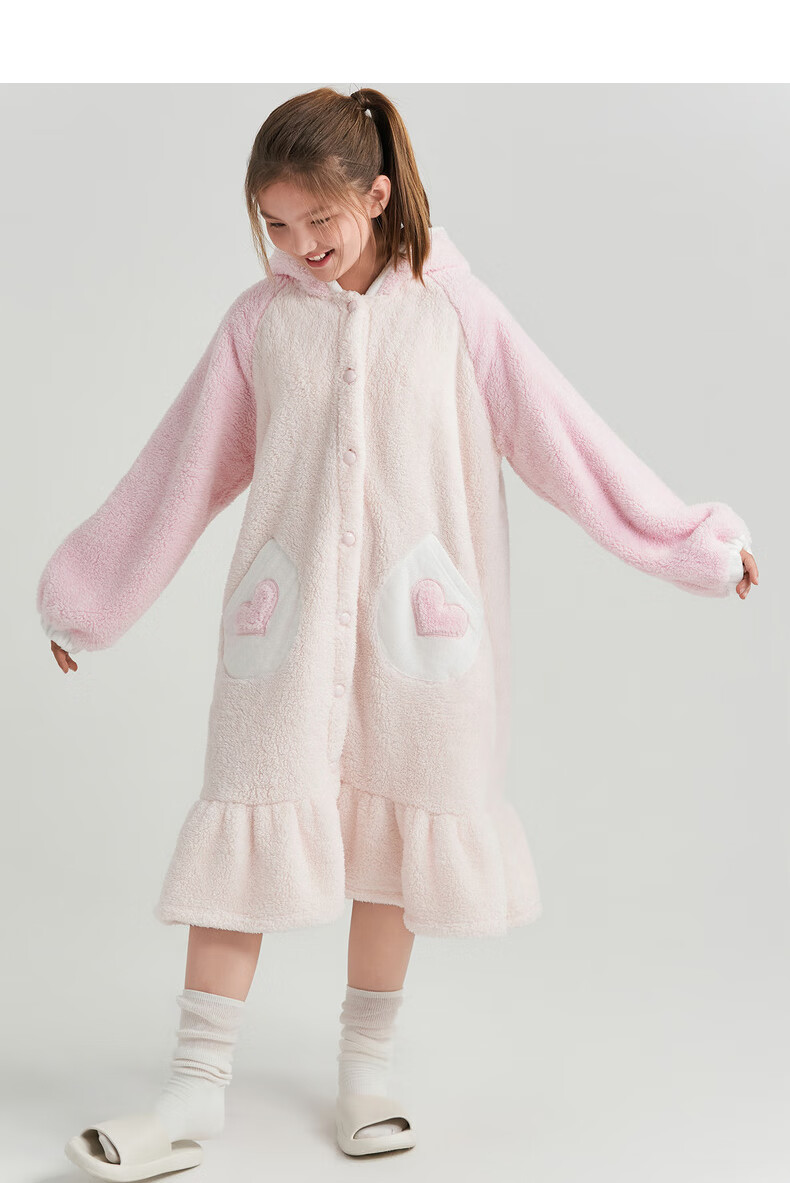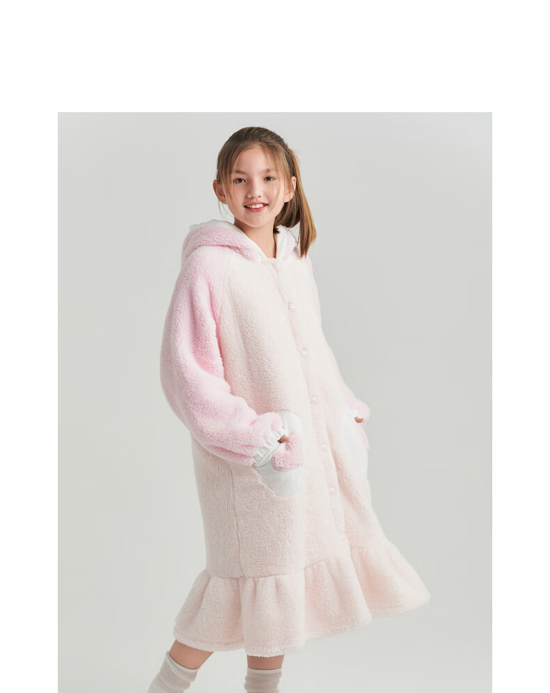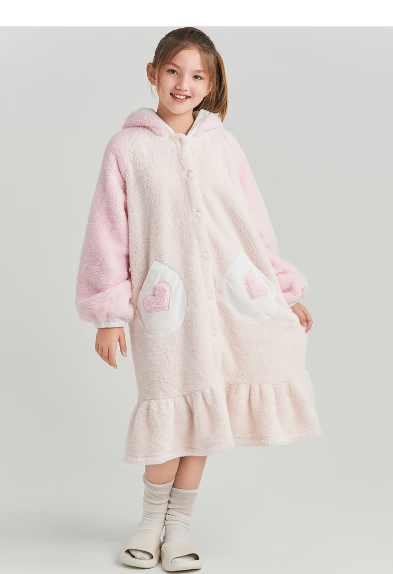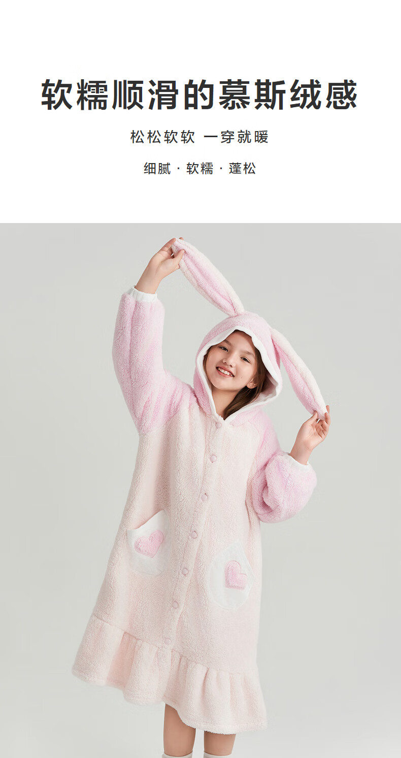 Adoring boy sweet and cute autumn and winter thickened home clothes pajamas girl fluffy bunny hooded pajamas fun bunny ears pink pink 170