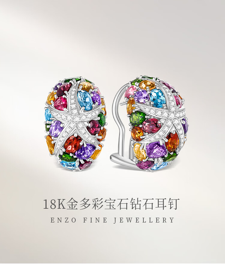 ENZO Ocean Series 18K Gold Colorful Gemstone Diamond Earrings for Women EZV4892 Birthday Gift 18K Gold Colorful Gemstone Earrings