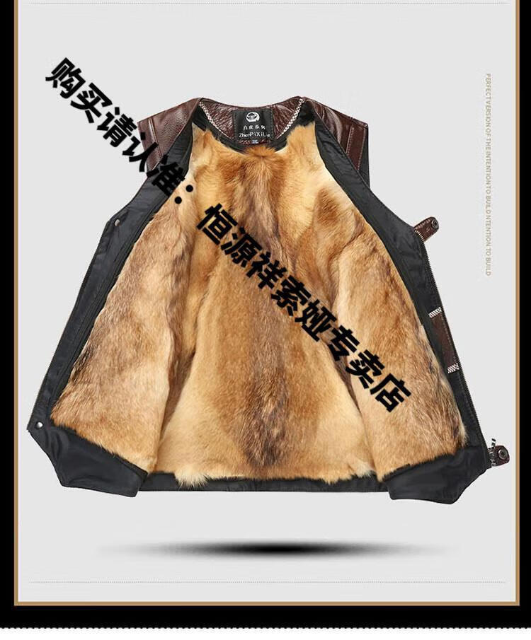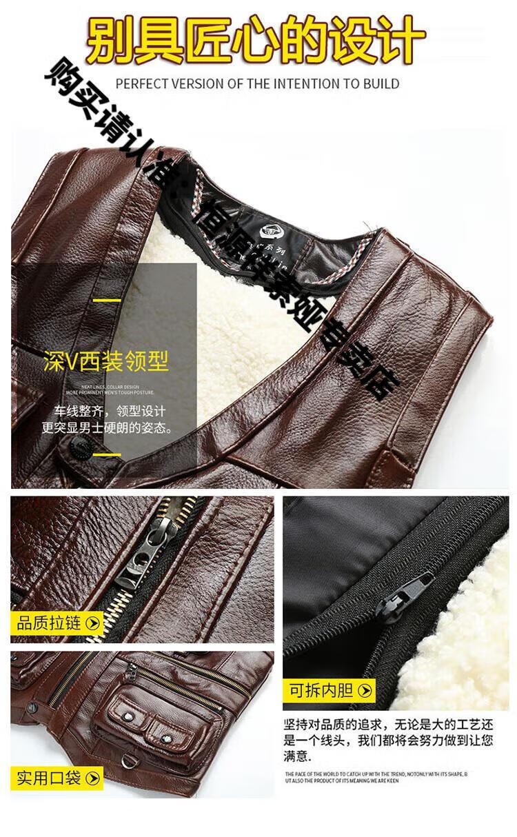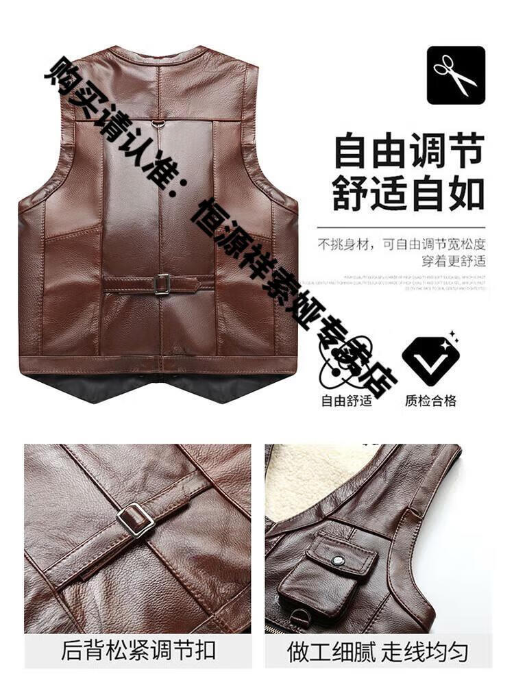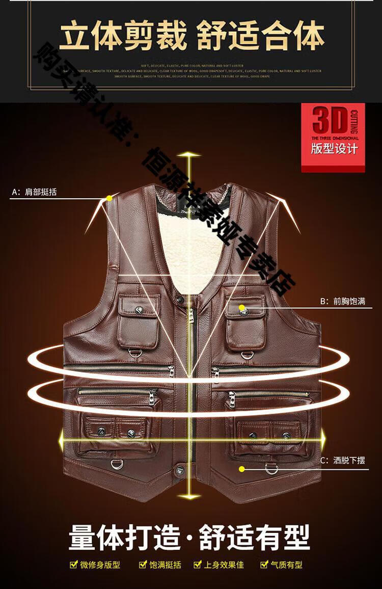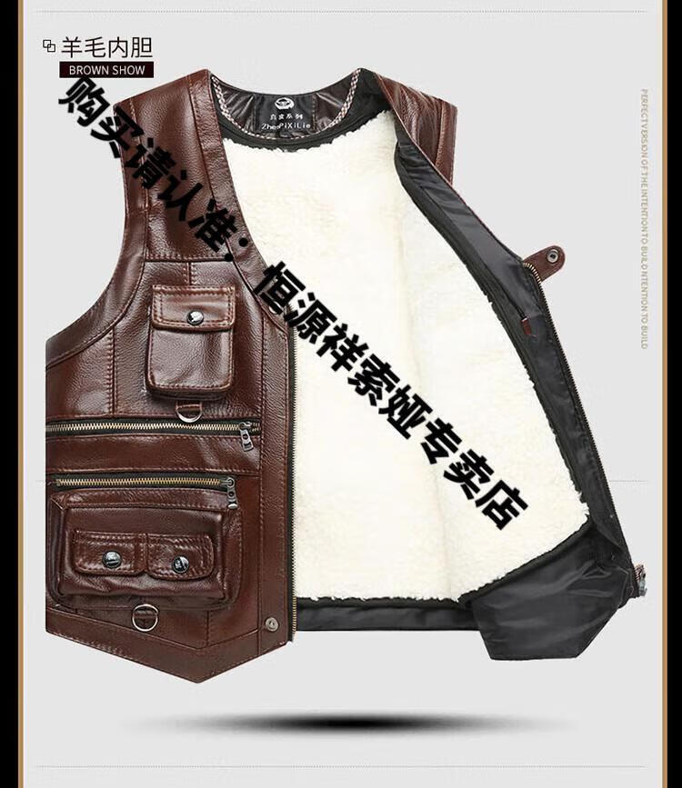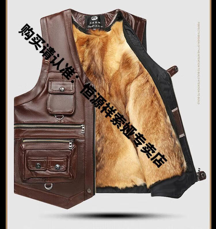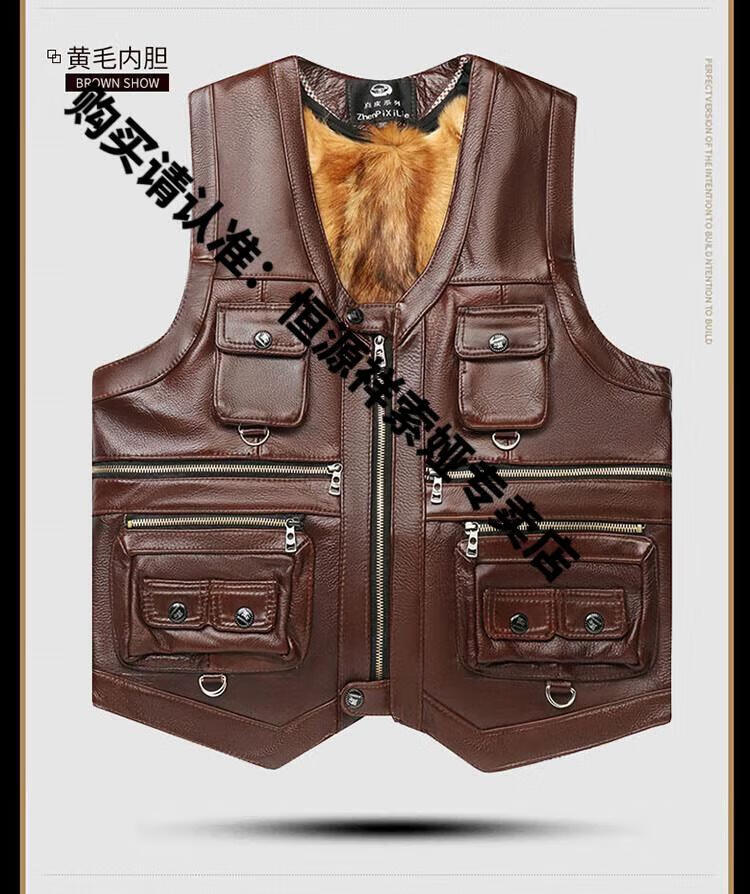 Hengyuanxiang genuine leather vest for middle-aged and elderly men, first-layer cowhide vest, winter fur all-in-one wool vest, cotton waistcoat reporter suit, dark brown, first-layer cowhide + yellow hair liner, liner 3XL size 130-150Jin Jin equals 0.5kg