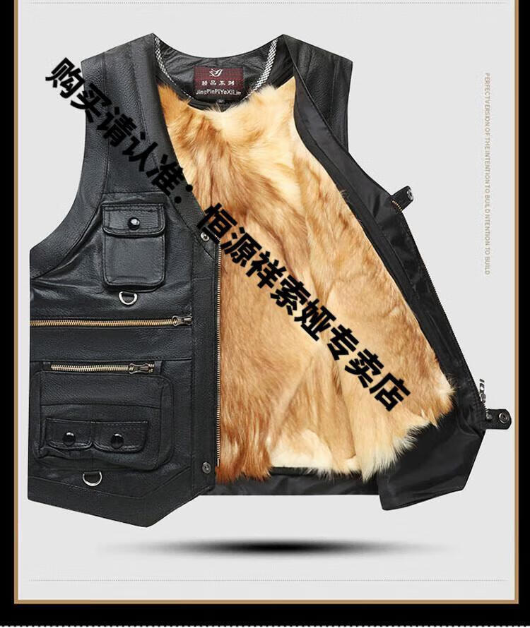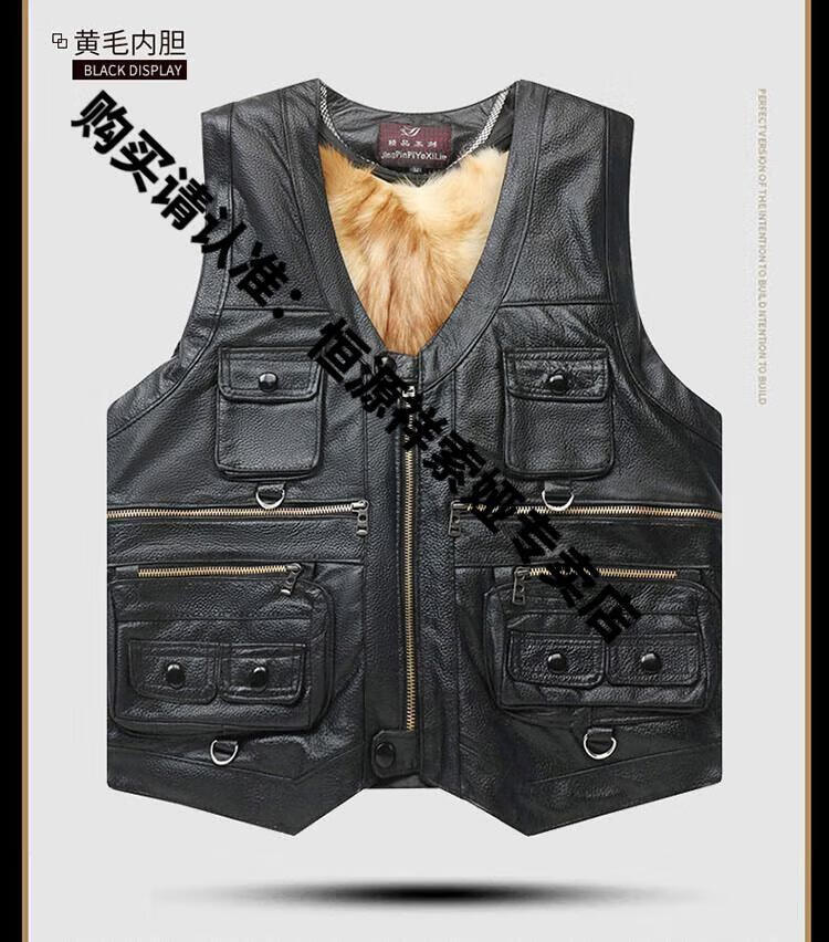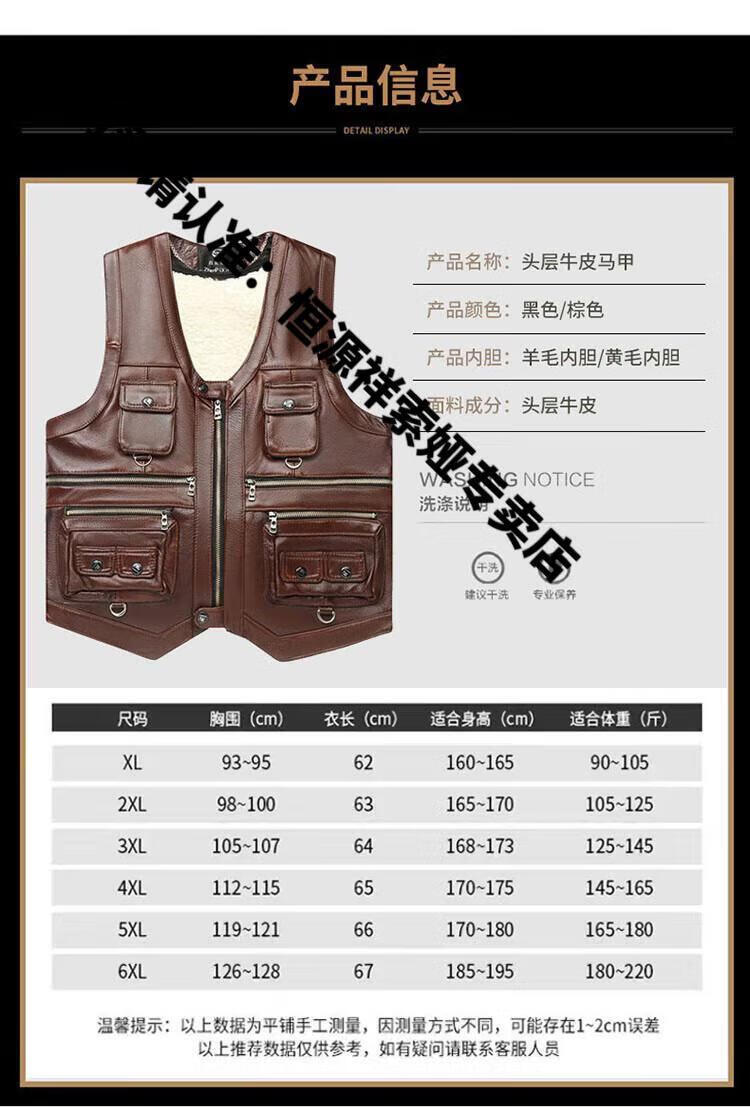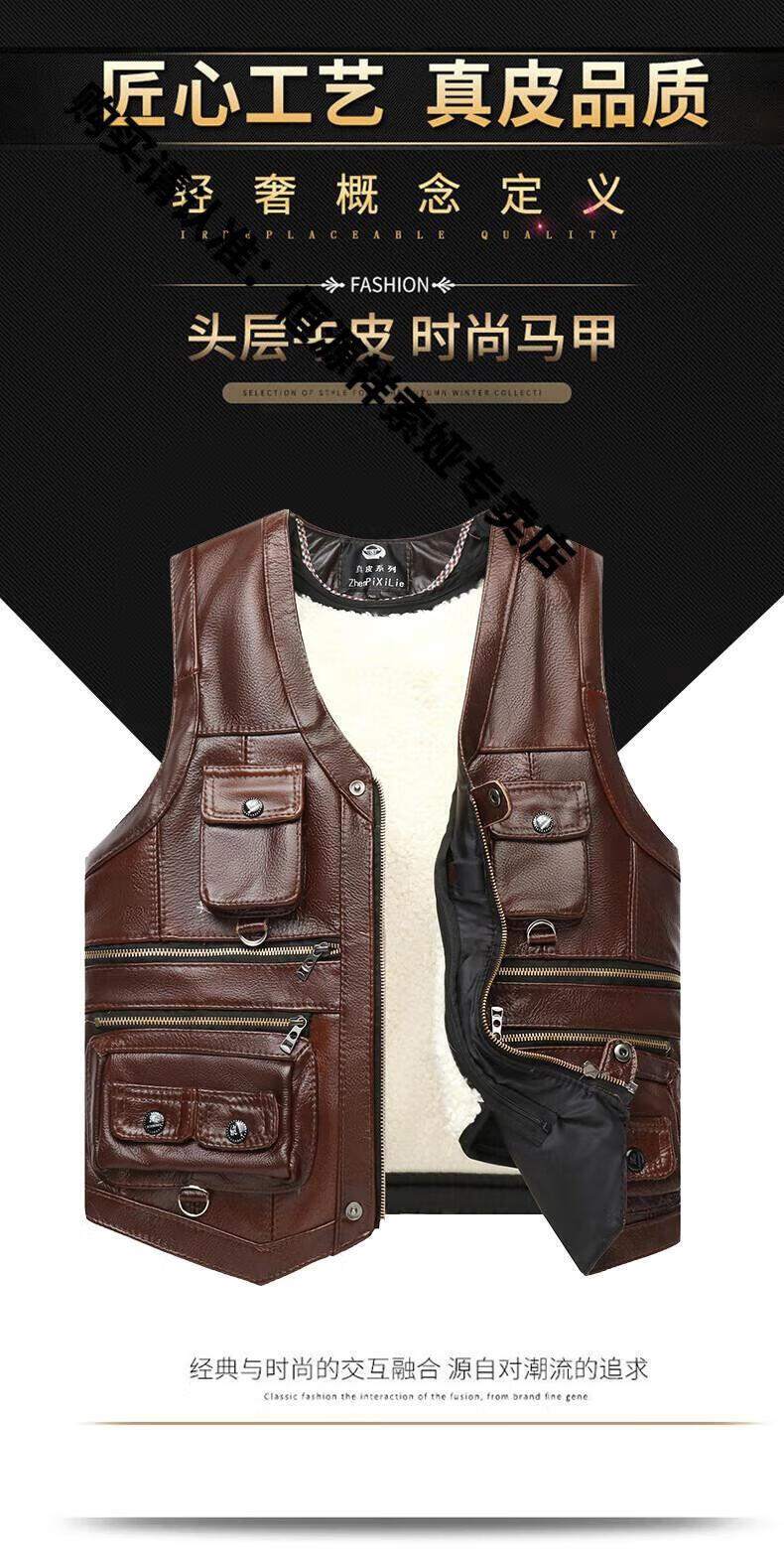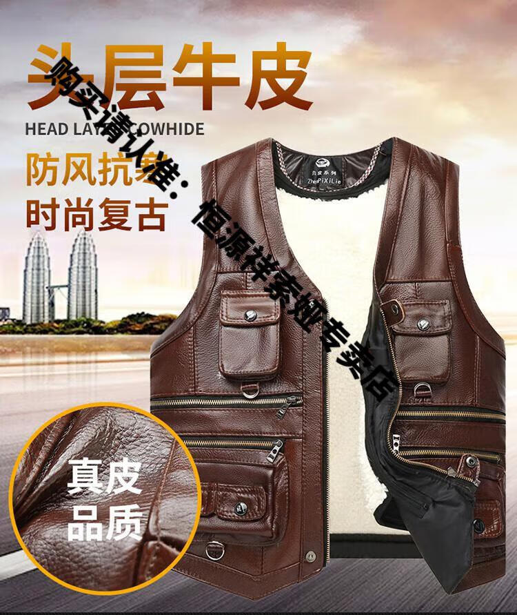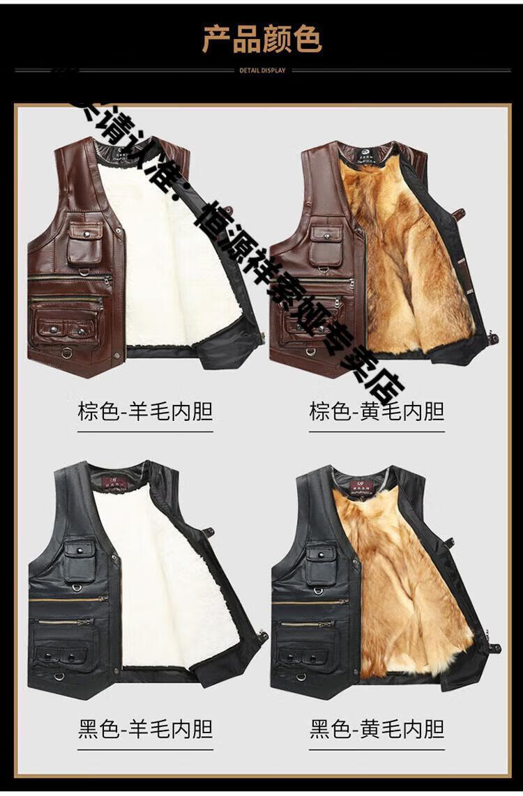 Hengyuanxiang genuine leather vest for middle-aged and elderly men, first-layer cowhide vest, winter fur all-in-one wool vest, cotton waistcoat reporter suit, dark brown, first-layer cowhide + yellow hair liner, liner 3XL size 130-150Jin Jin equals 0.5kg