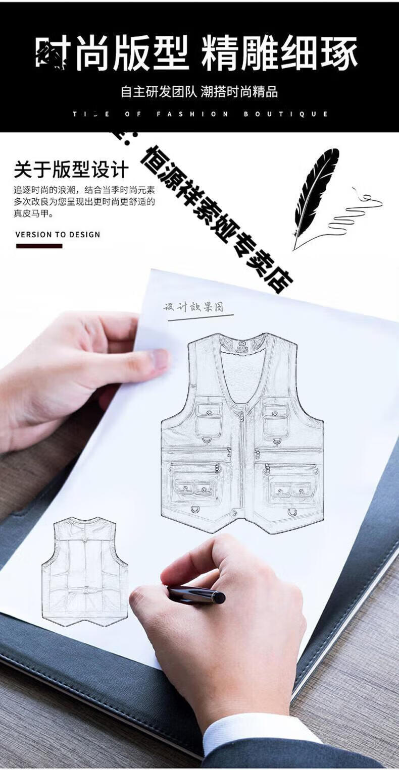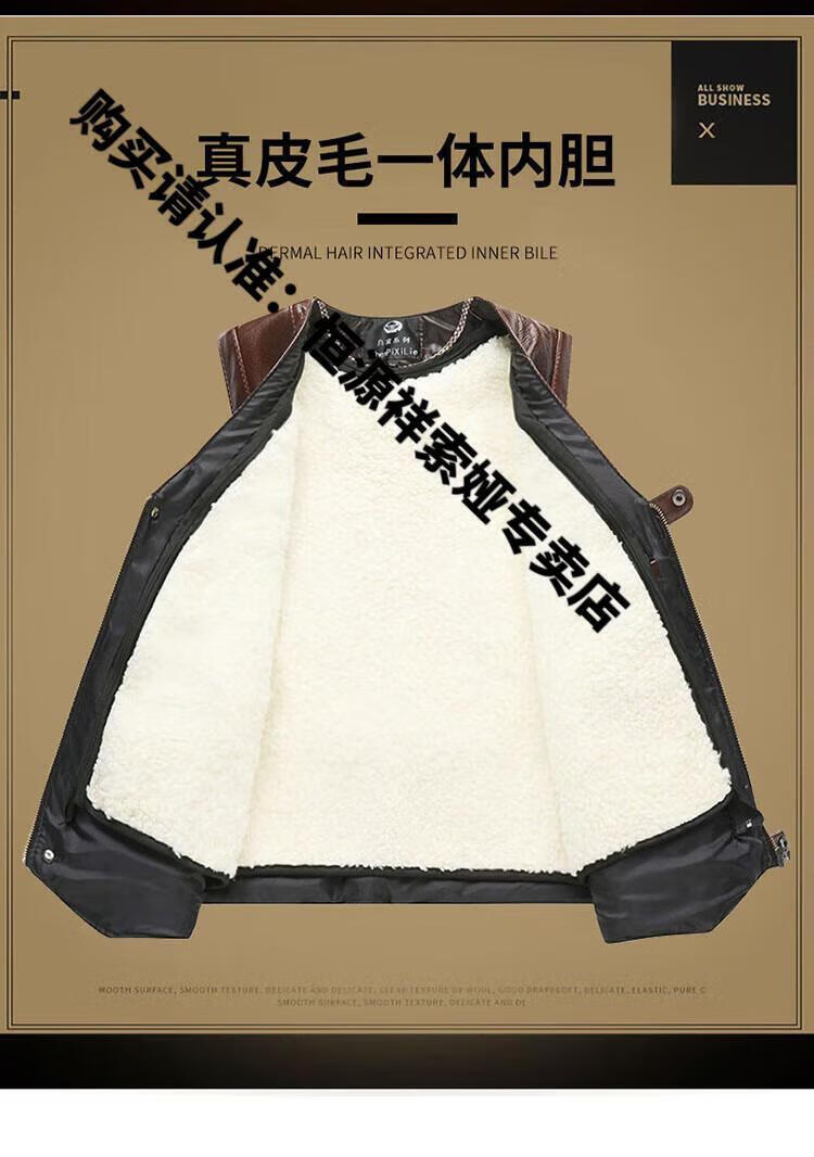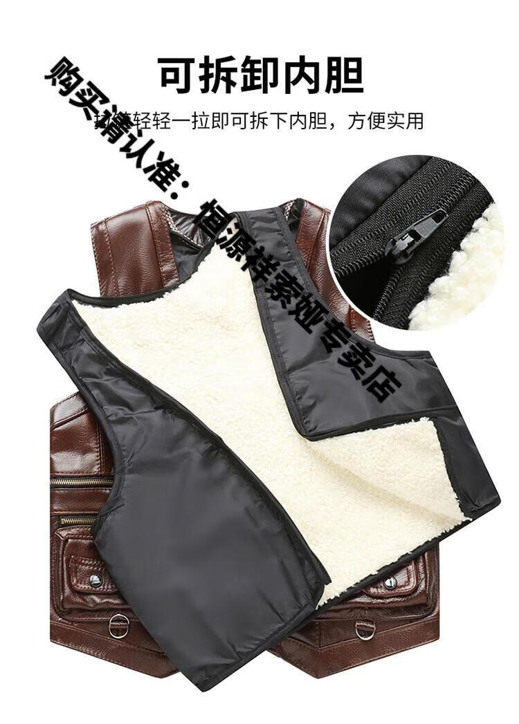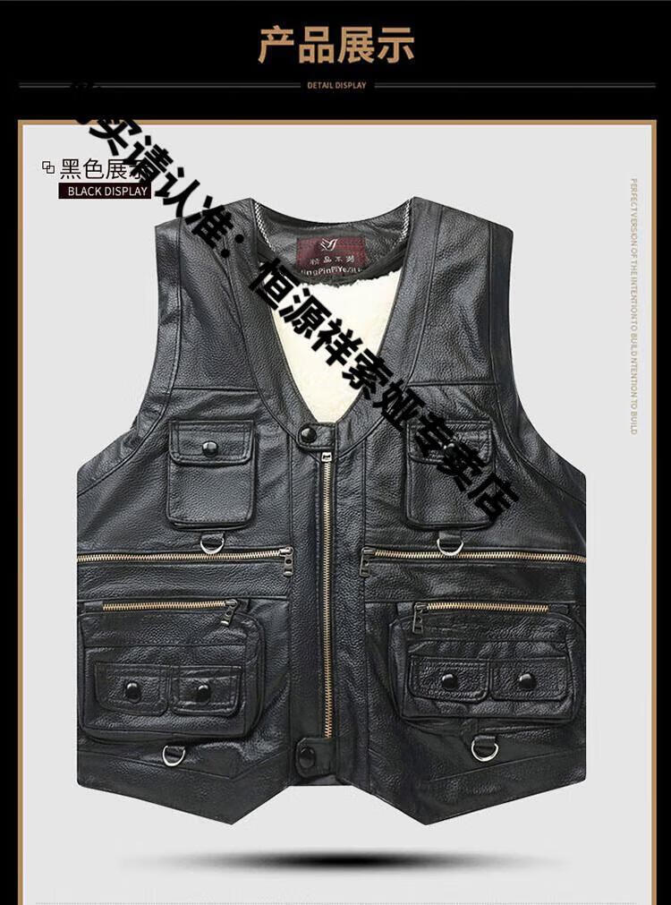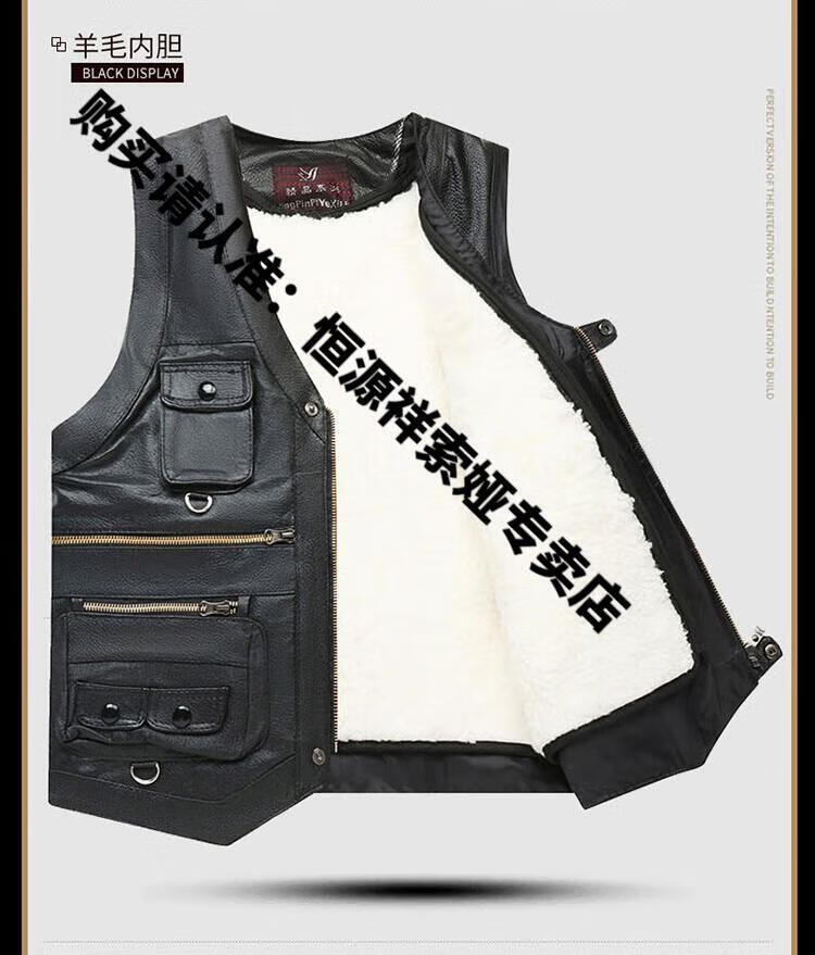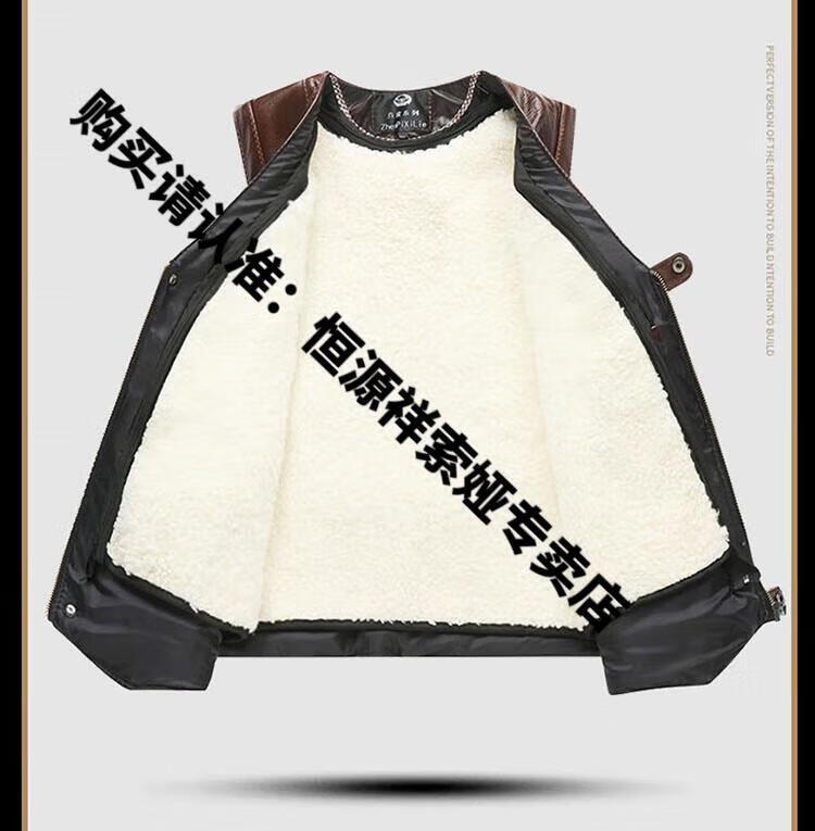 Hengyuanxiang genuine leather vest for middle-aged and elderly men, first-layer cowhide vest, winter fur all-in-one wool vest, cotton waistcoat reporter suit, dark brown, first-layer cowhide + yellow hair liner, liner 3XL size 130-150Jin Jin equals 0.5kg