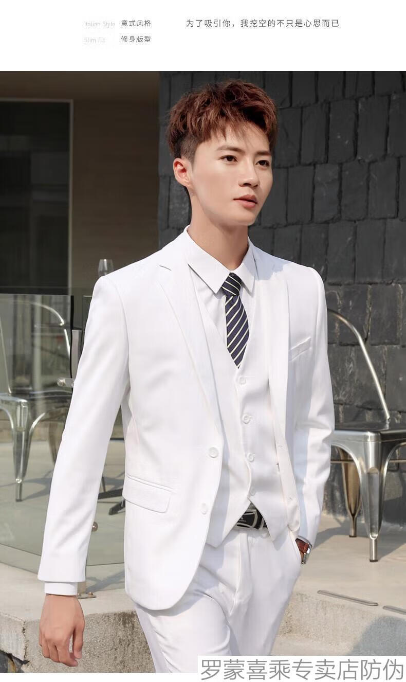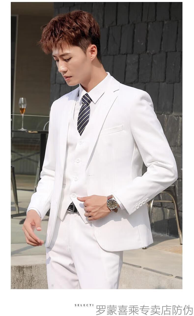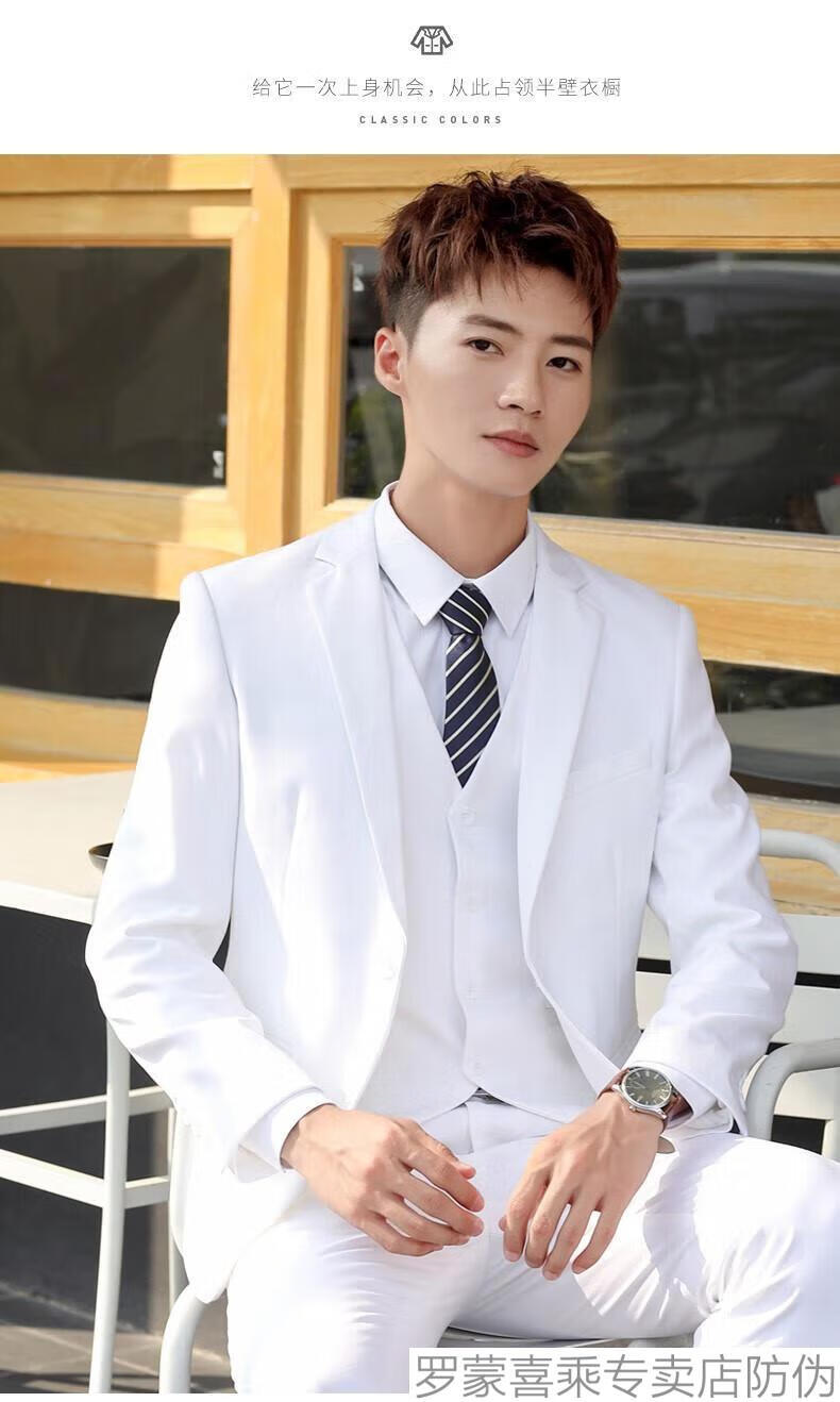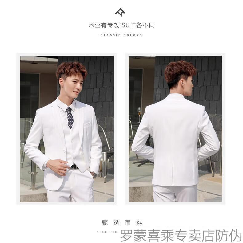 ROMON men's suit, casual white small suit, Korean style men's jacket, handsome, slim and trendy new product, two-button white suit + trousers 160/XS