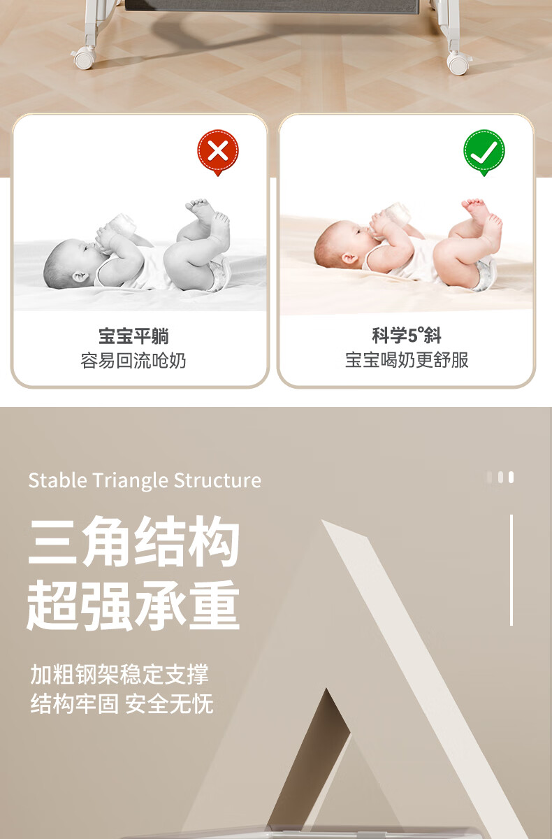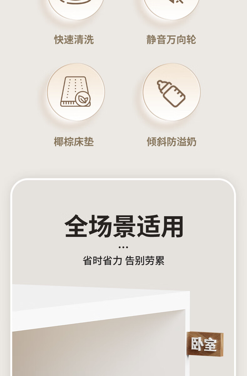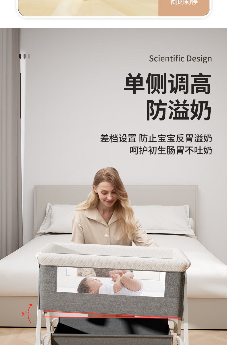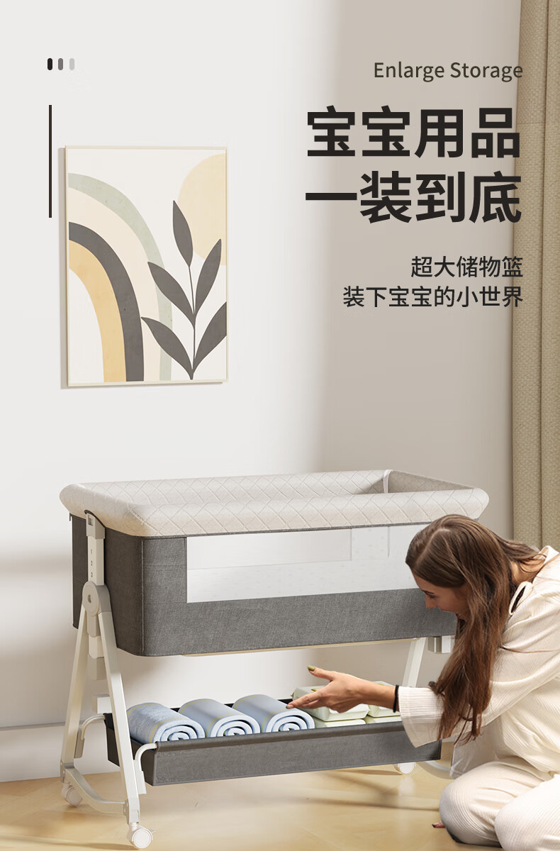 Fuxingle FORSUNNY crib, removable splicing large bed, multi-functional folding crib, baby rocking bed, newborn cradle, six-level lift + coconut palm mattress + mosquito net + headrest mat, baby products for sleeping, a must-have for mothers and babies