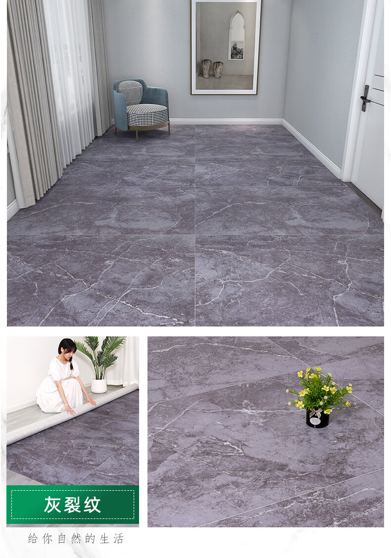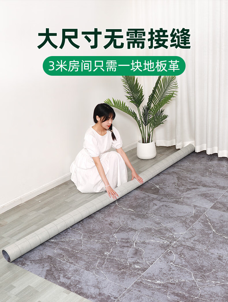 Xingwan 3 meters wide household floor leather cement floor directly paved living room bedroom shop office thickened wear-resistant and moisture-proof floor mat 2 meters wide - upgraded and strengthened - gray cracks