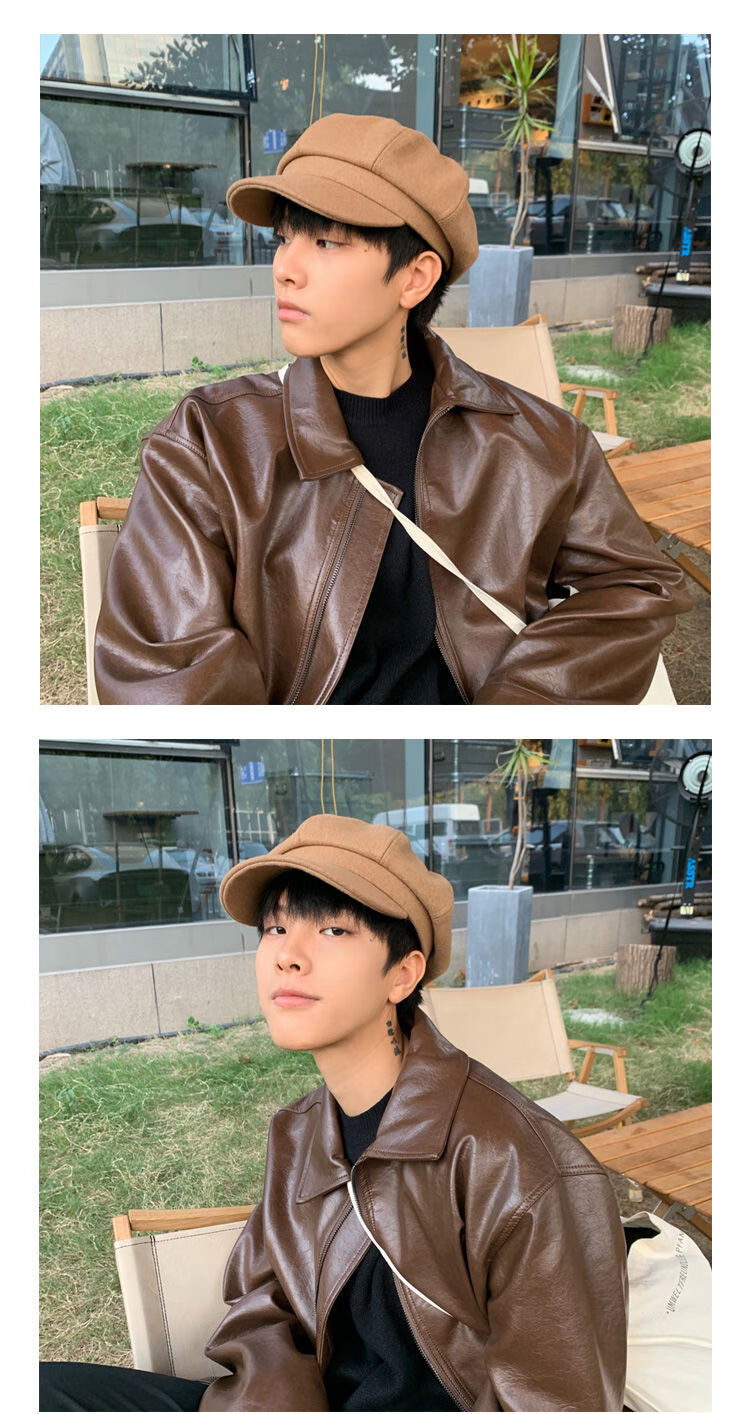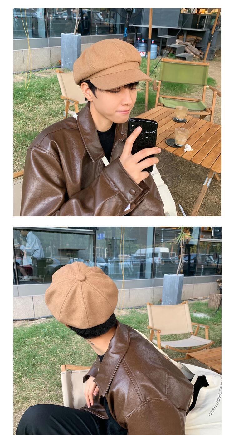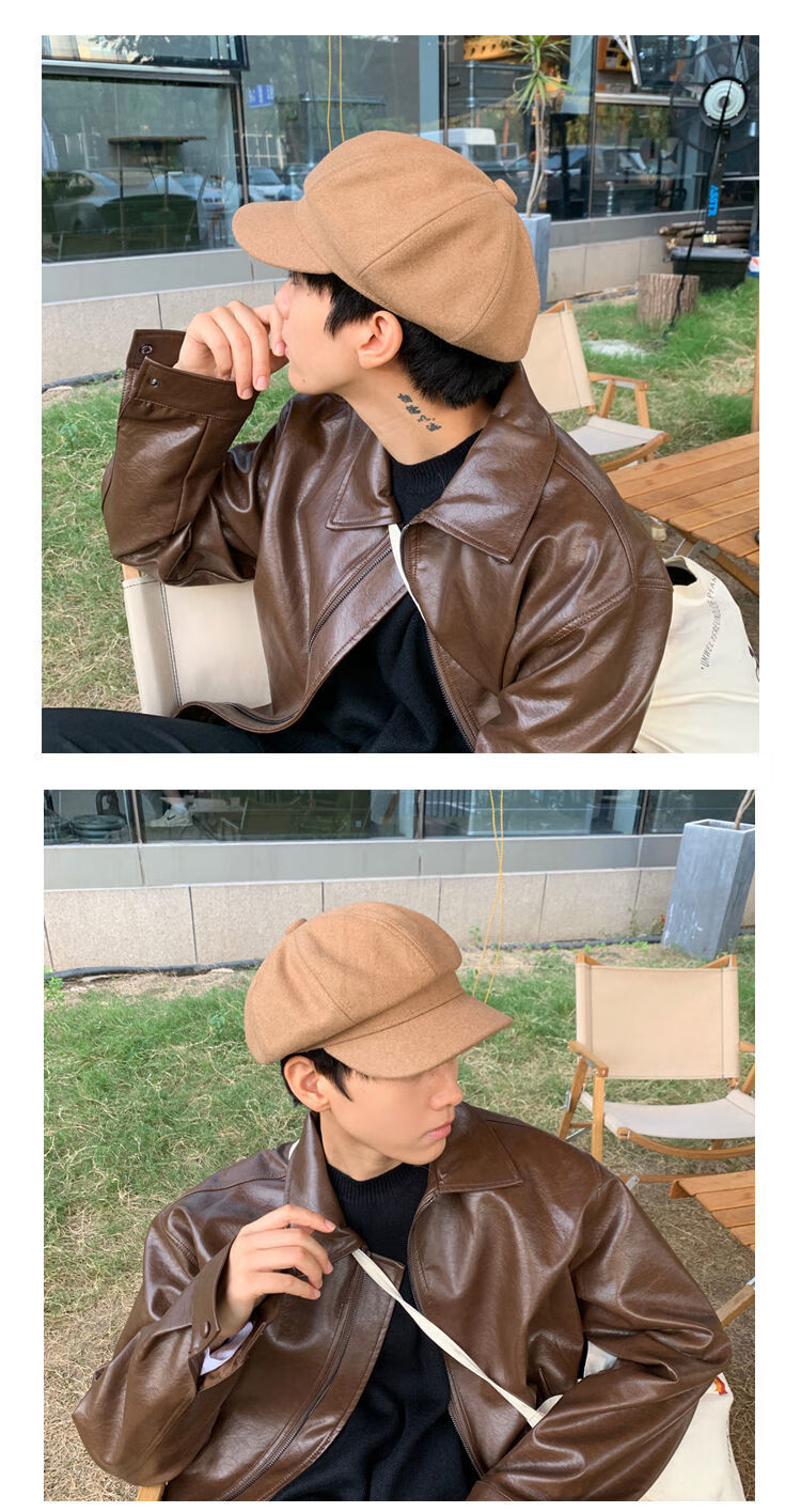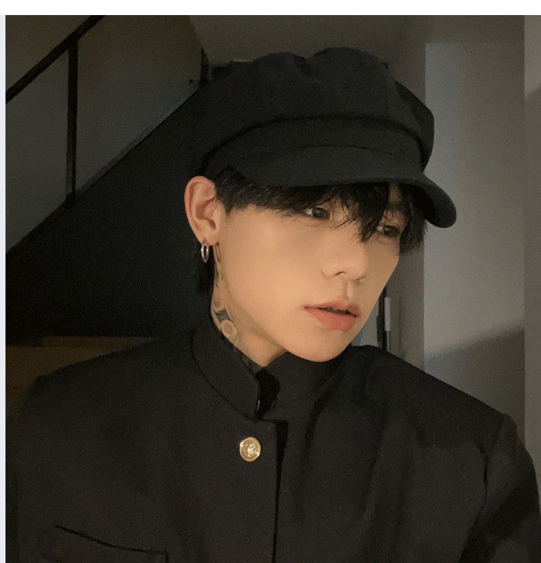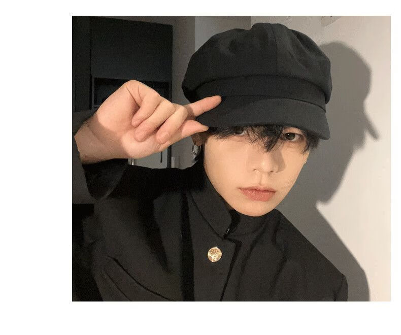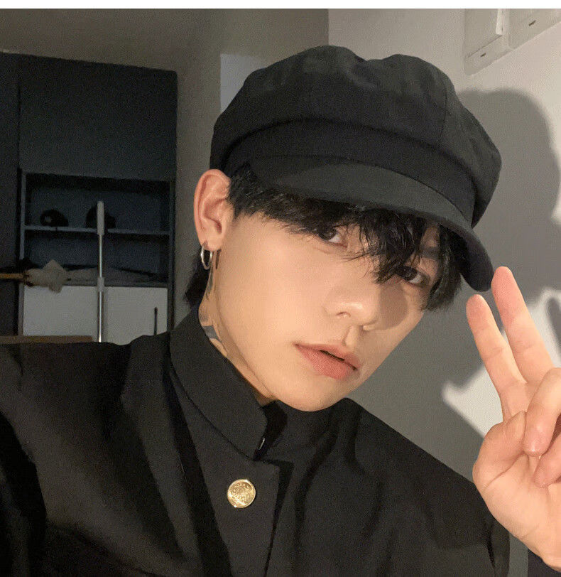 Obey black British beret men's big head circumference autumn and winter retro hat octagonal hat men's style ins black