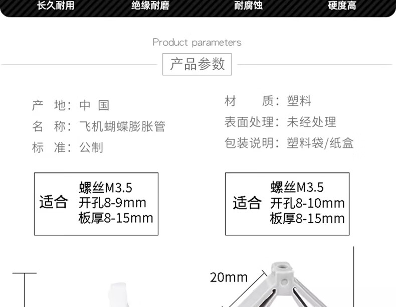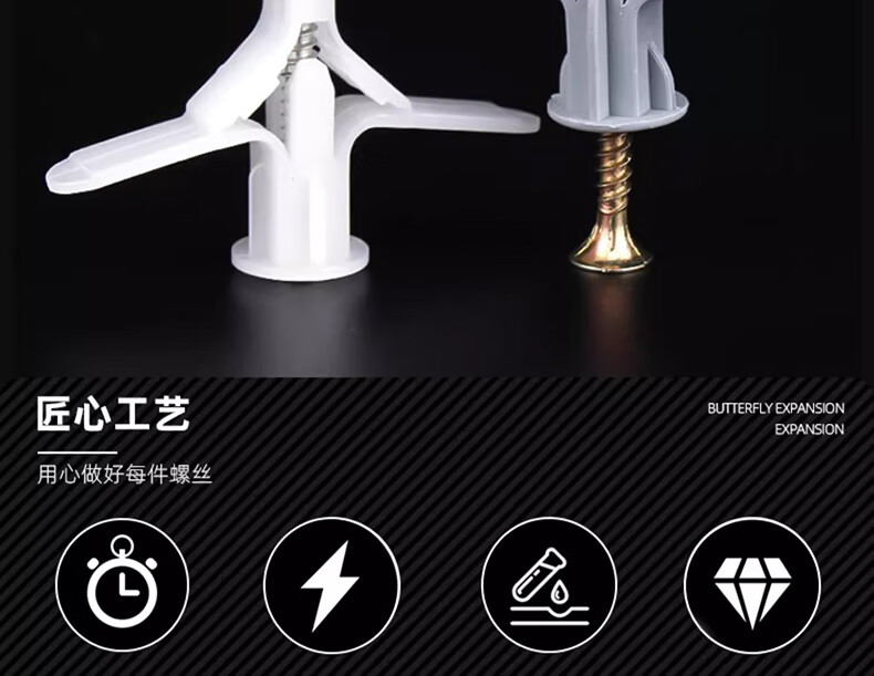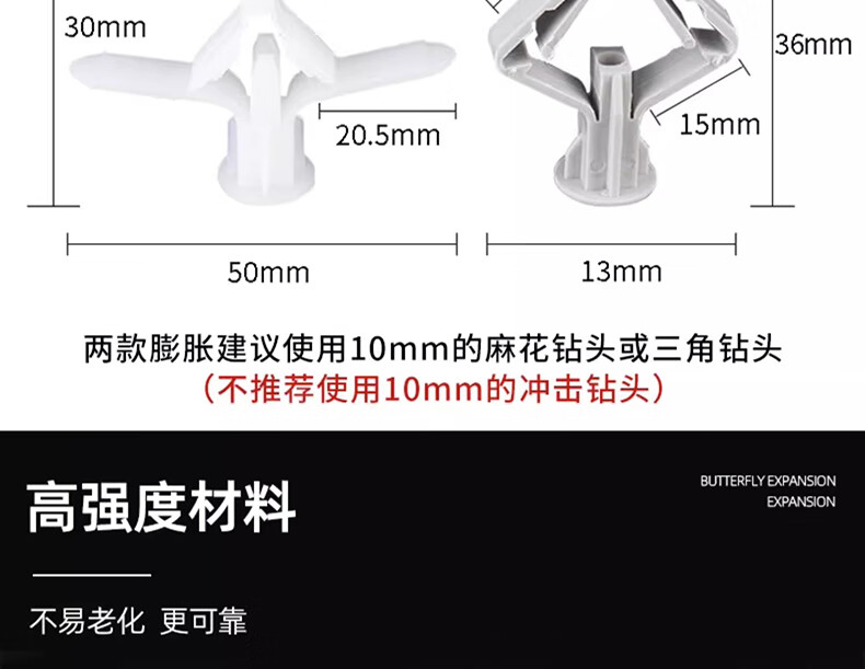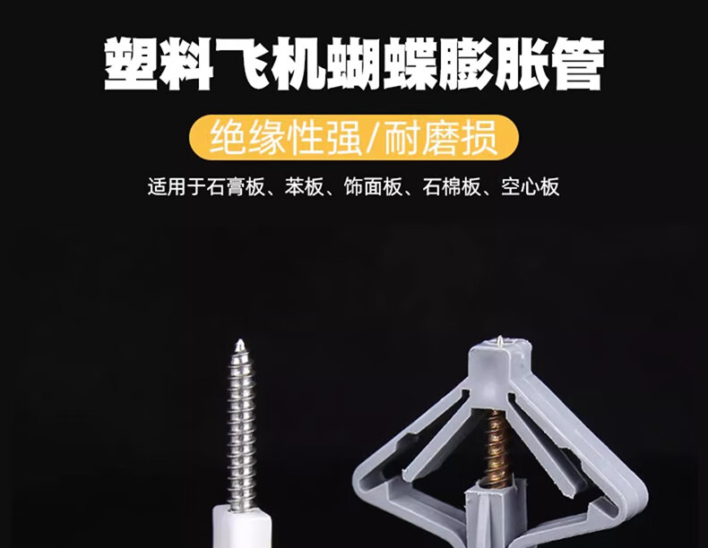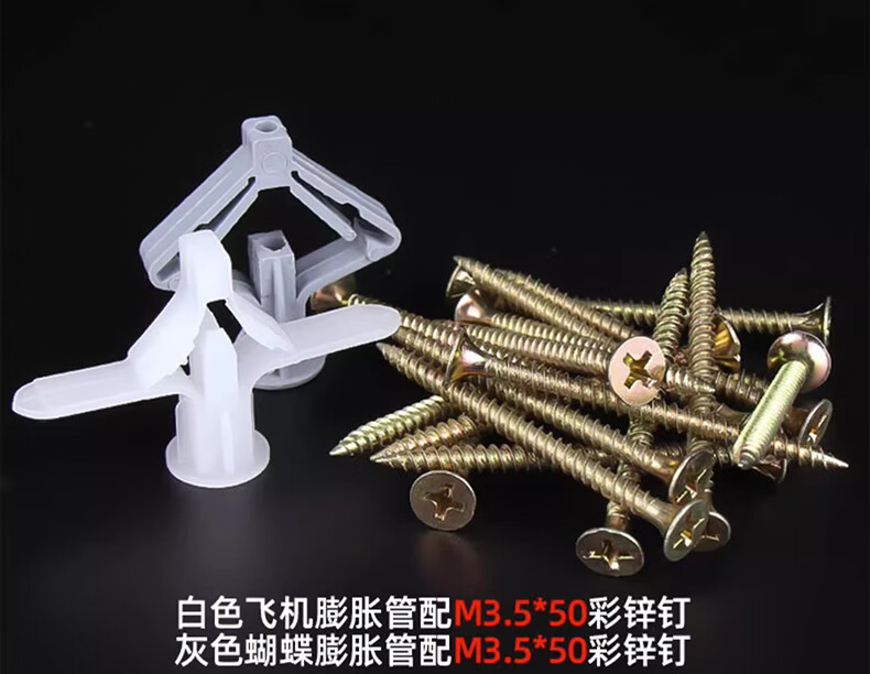 Jinchao aircraft expansion tube gypsum board expansion tube plastic butterfly type hollow brick expansion screw self-tapping expansion plug rubber plug butterfly type expansion tube + color zinc self-tapping nails (10 sets)