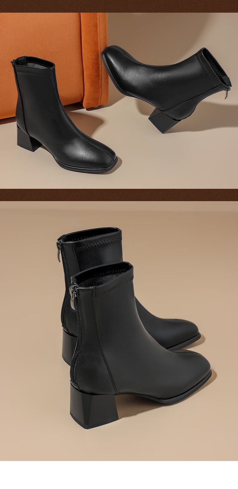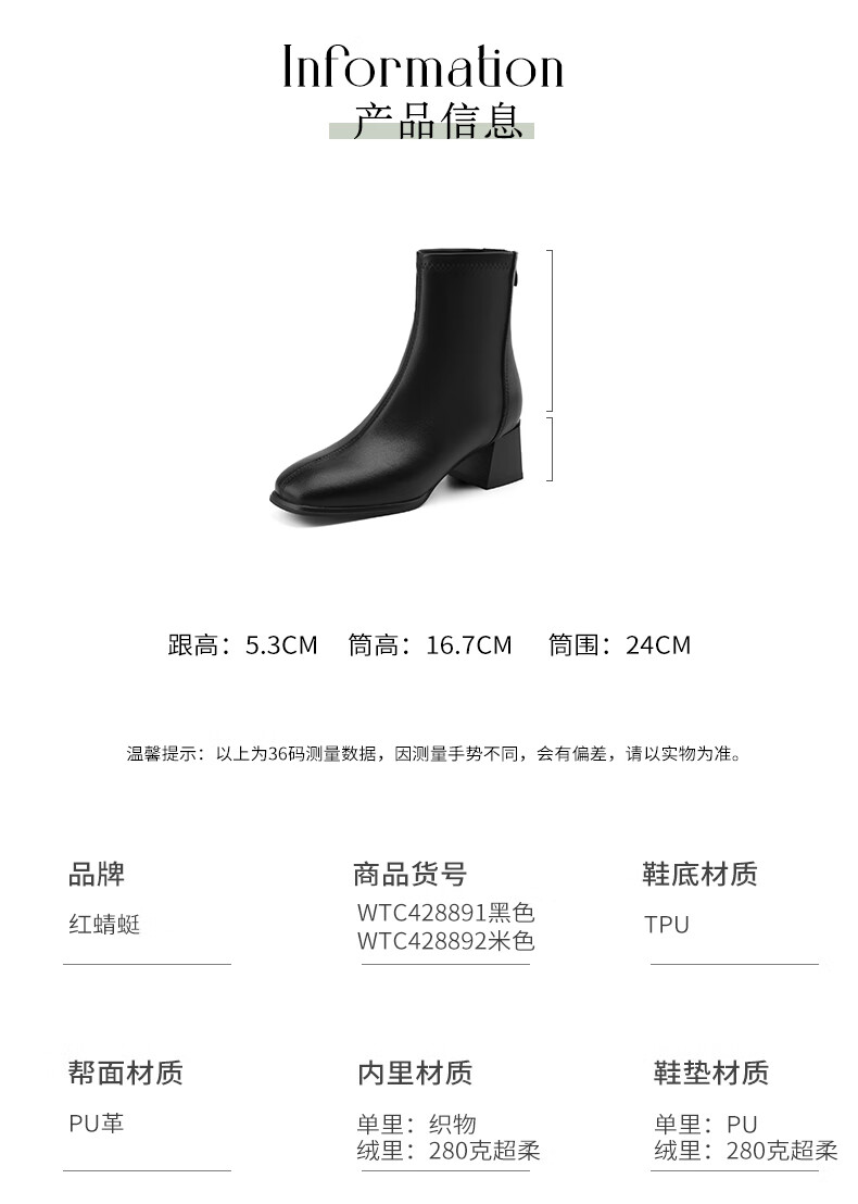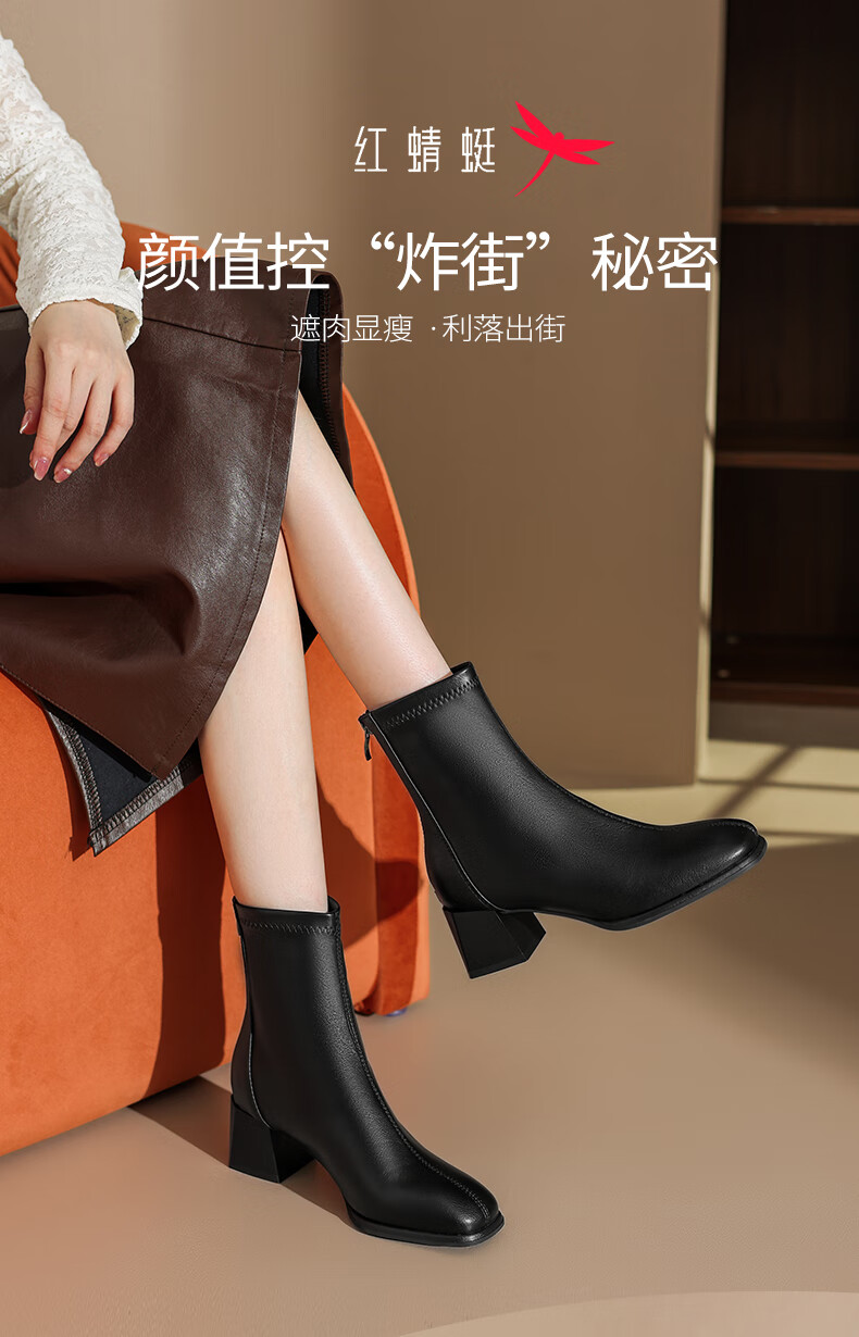 Red dragonfly short boots for women thick heel medium heel plus velvet to keep warm winter winter boots brand ankle boots women's boots 2024 winter off-white heel height 5.3cm 40