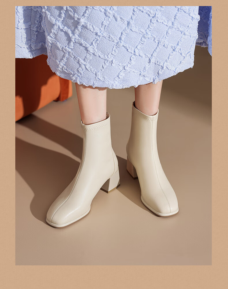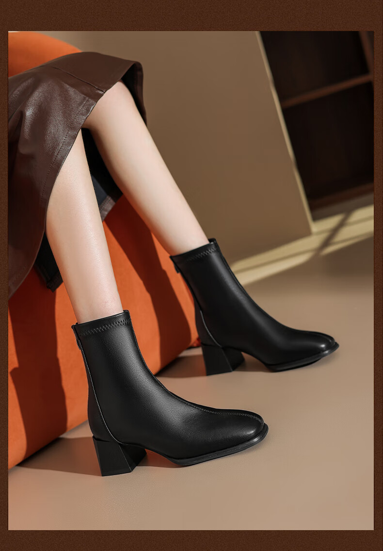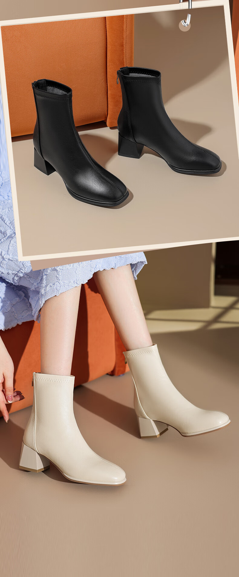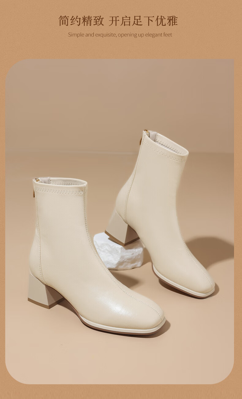 Red dragonfly short boots for women thick heel medium heel plus velvet to keep warm winter winter boots brand ankle boots women's boots 2024 winter off-white heel height 5.3cm 40