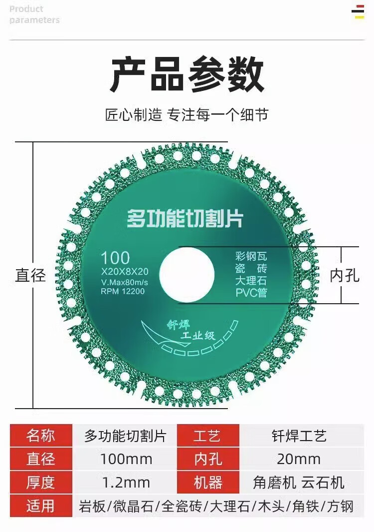 Yanran Composite Multi-Function Cutting Sheet Ceramic Slate Marble Color Steel Tile Iron Sheet Metal Angle Grinder Brazing Dry Slicing Composite Multi-Function Cutting Sheet (1 piece)