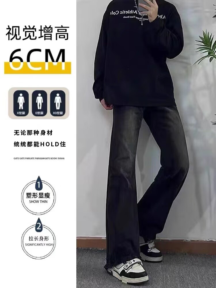 7 excellent products men's jeans autumn American retro high street casual straight slim fit versatile slightly flared long pants for men HCFS-2002 black regular XL