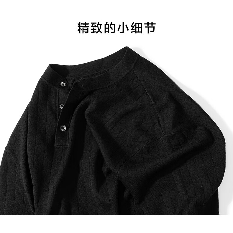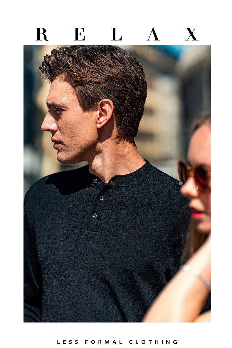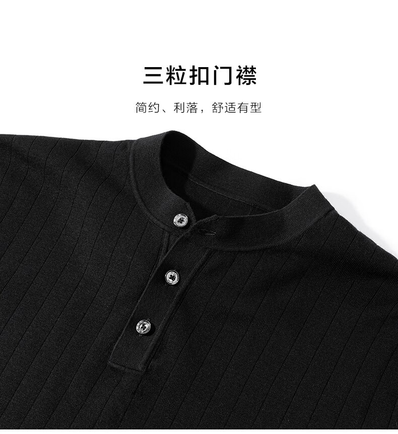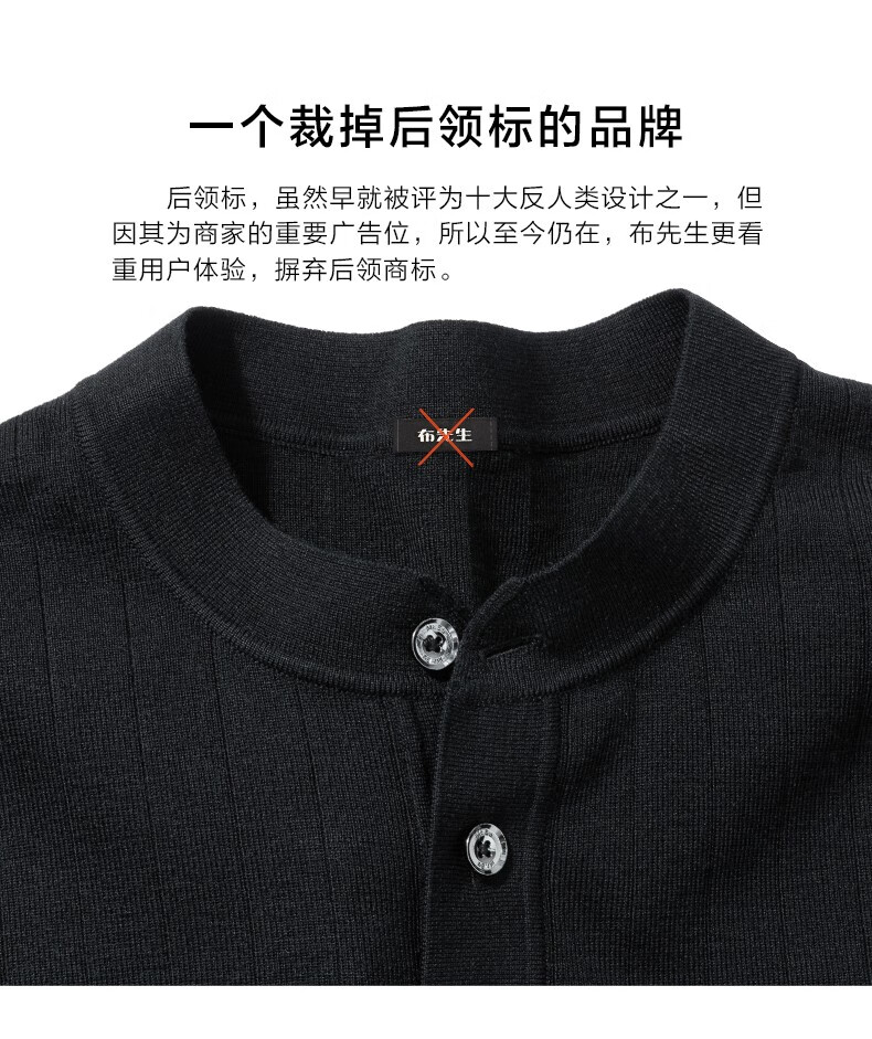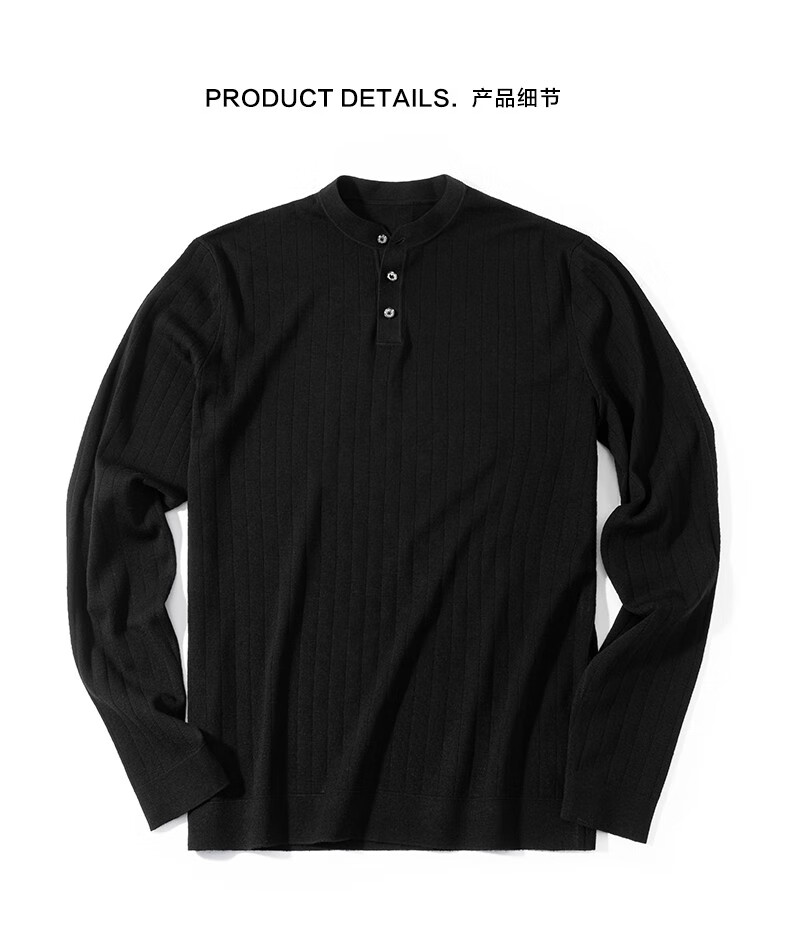 Mr. Bu's 23rd Spring and Autumn New Henley Collar Sweater Long Sleeve Wool T-Backing Clothes Men's Sweater BT12199 Black 2XL (185)