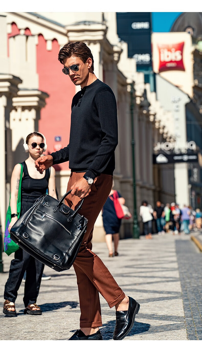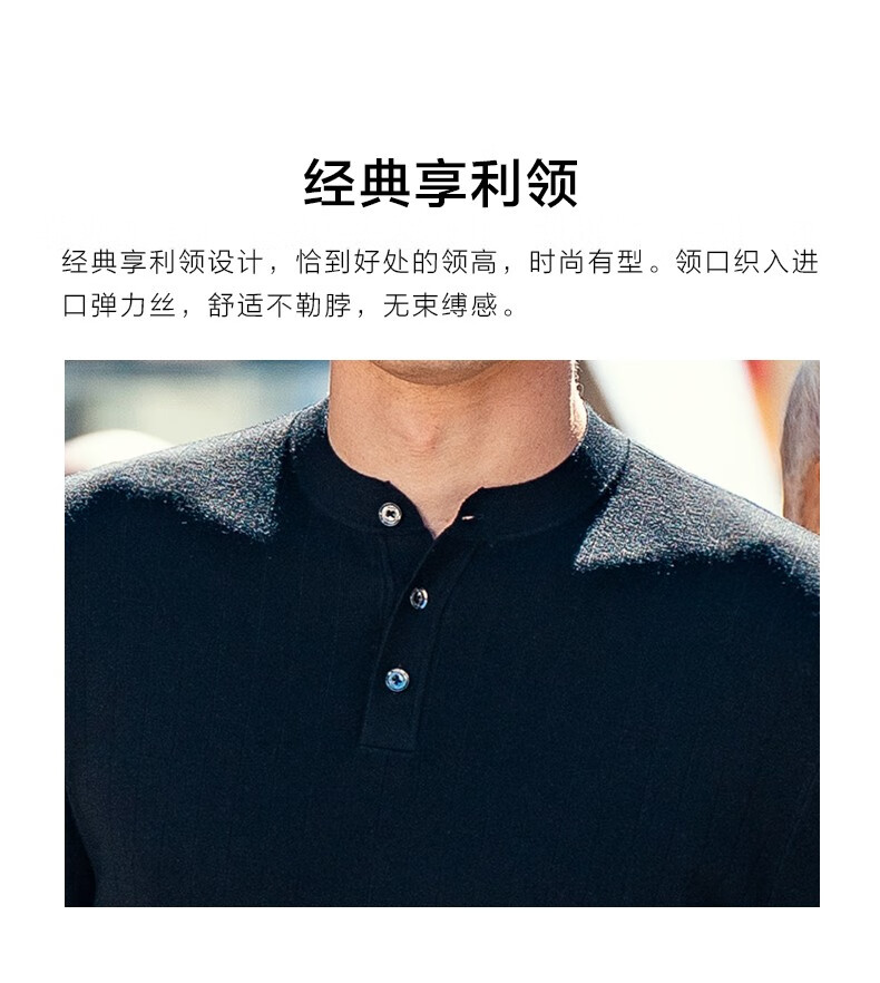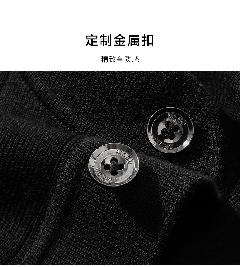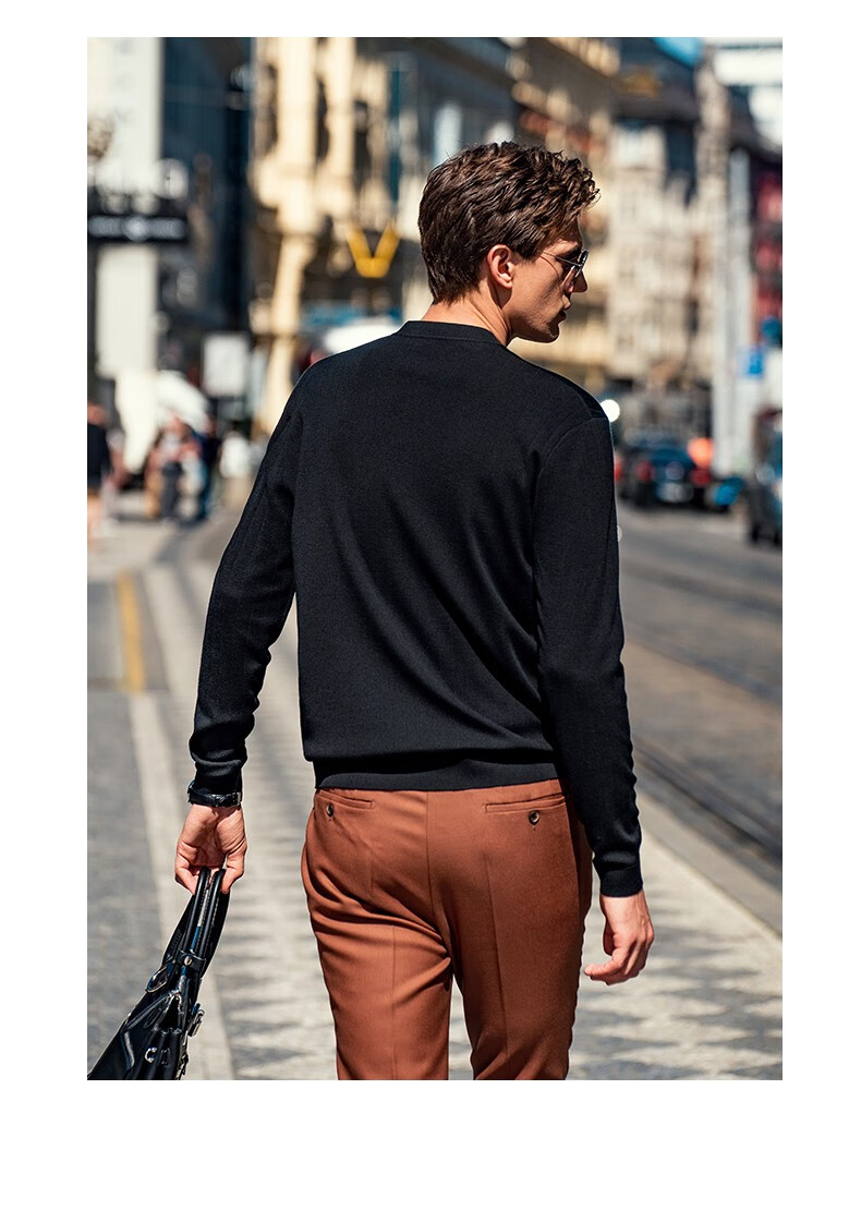 Mr. Bu's 23rd Spring and Autumn New Henley Collar Sweater Long Sleeve Wool T-Backing Clothes Men's Sweater BT12199 Black 2XL (185)