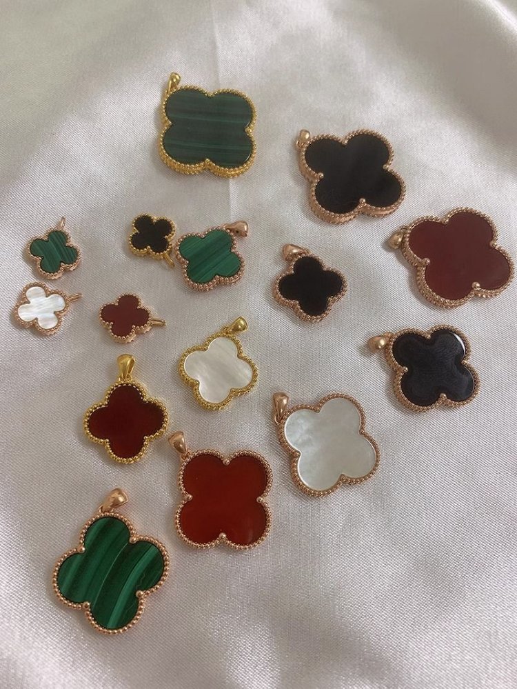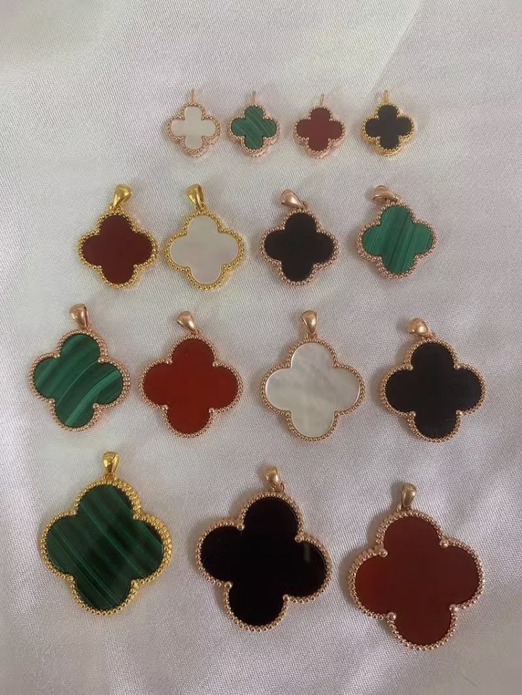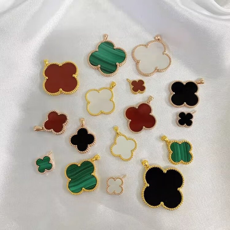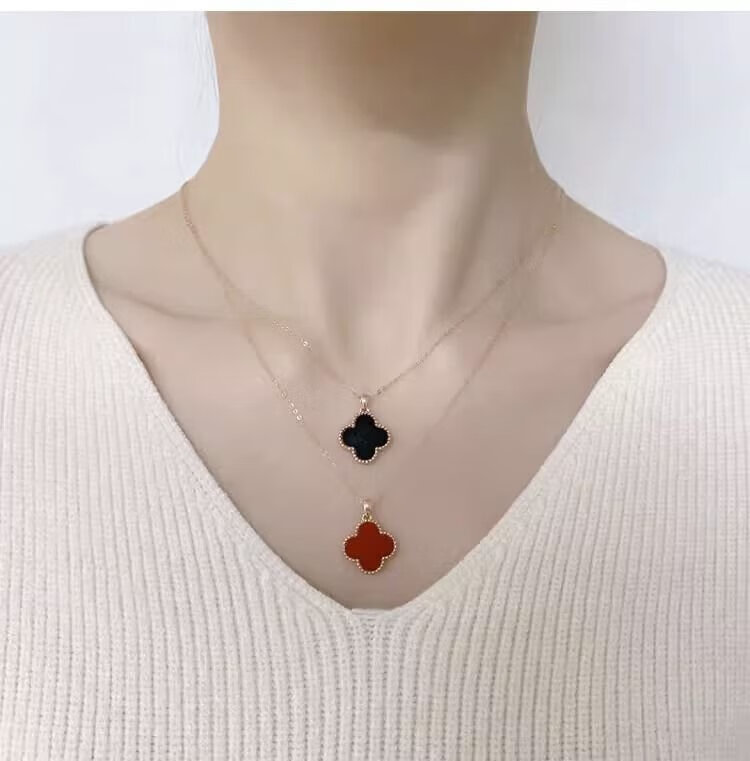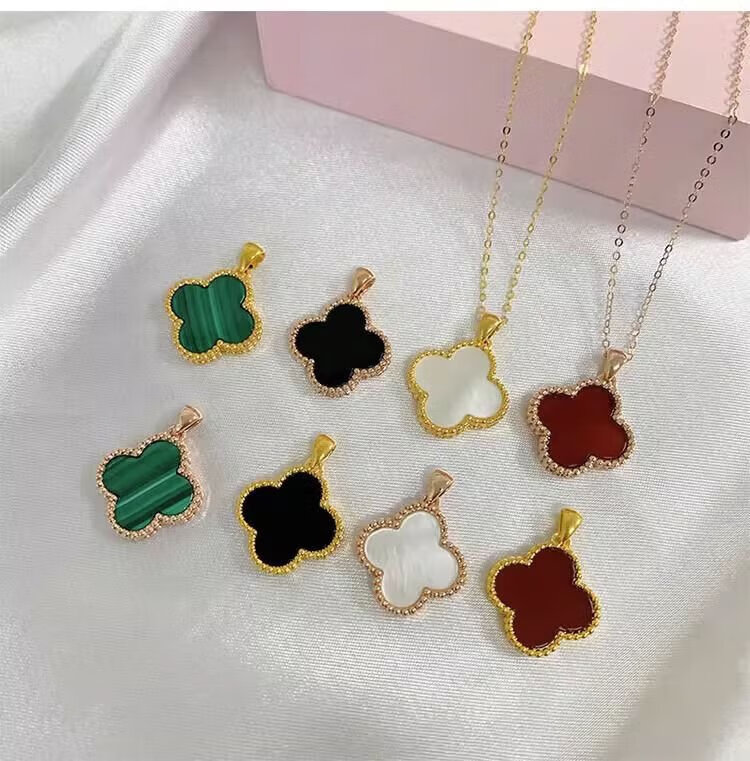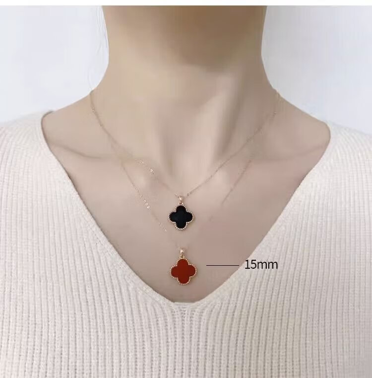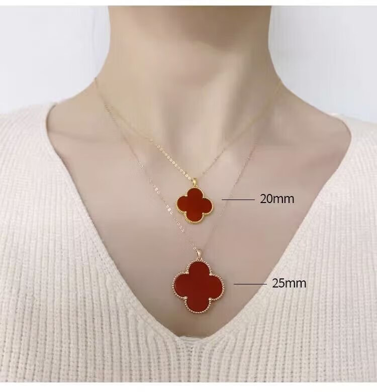 18K gold four-leaf clover pendant color gold rose gold female gold necklace pendant au750 birthday gift for girlfriend 18K rose gold (single pendant) 15mm red agate stone