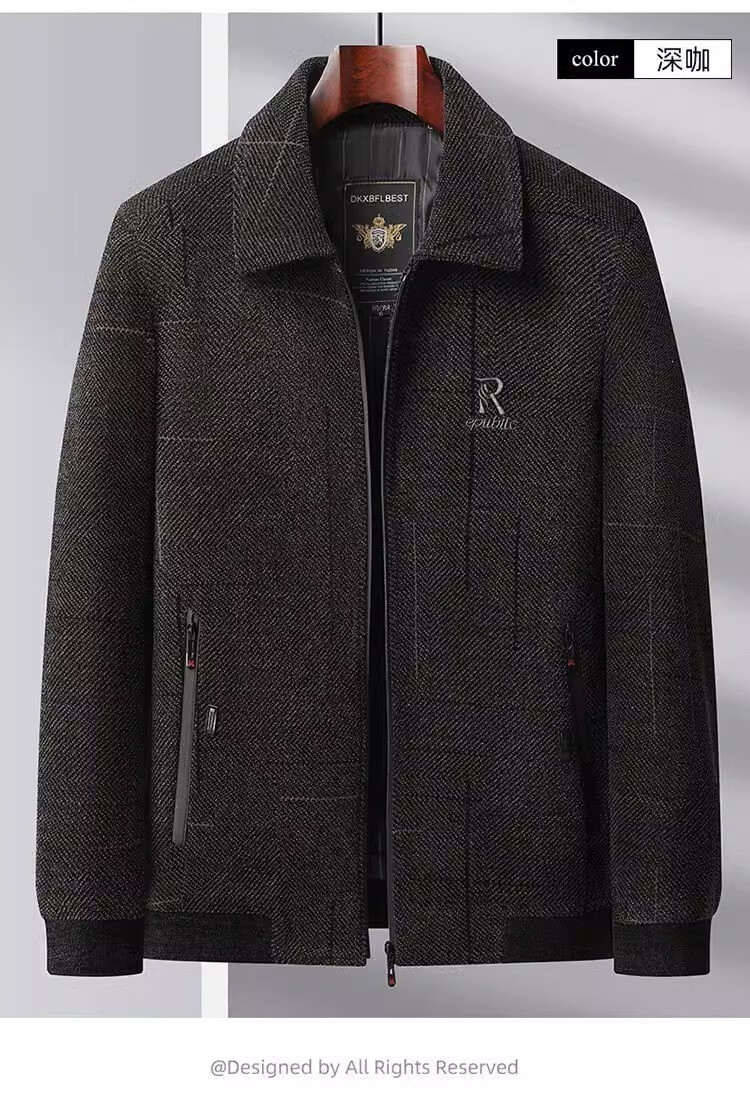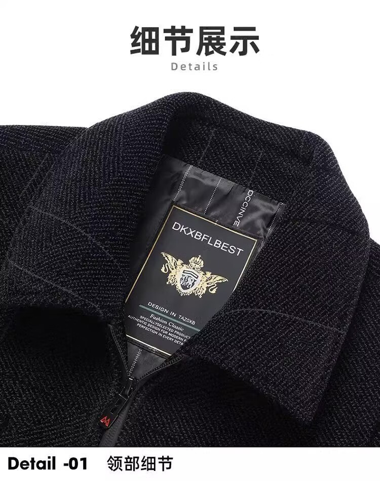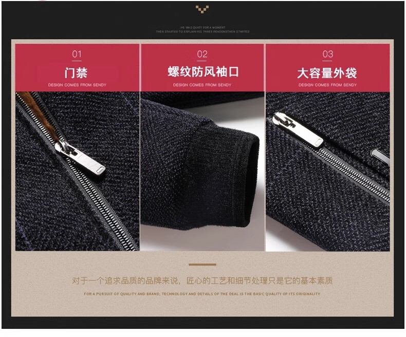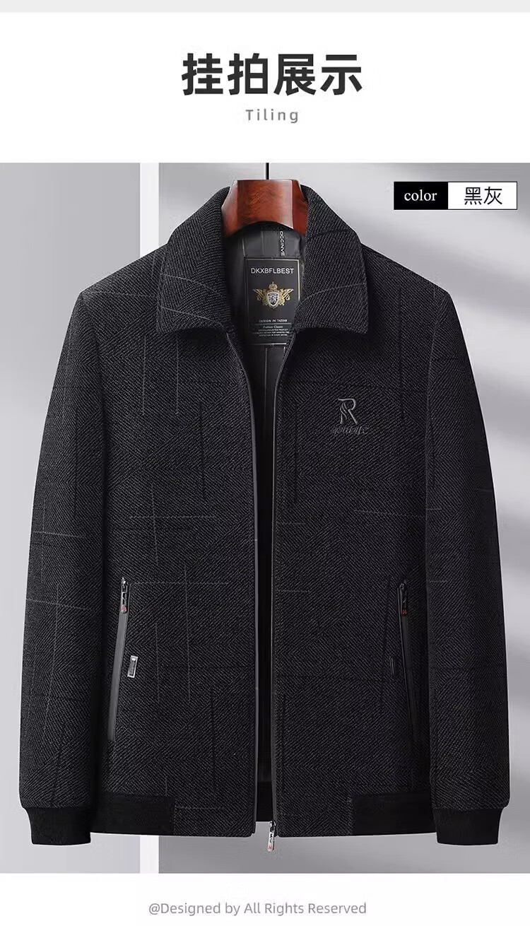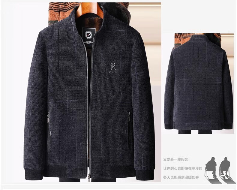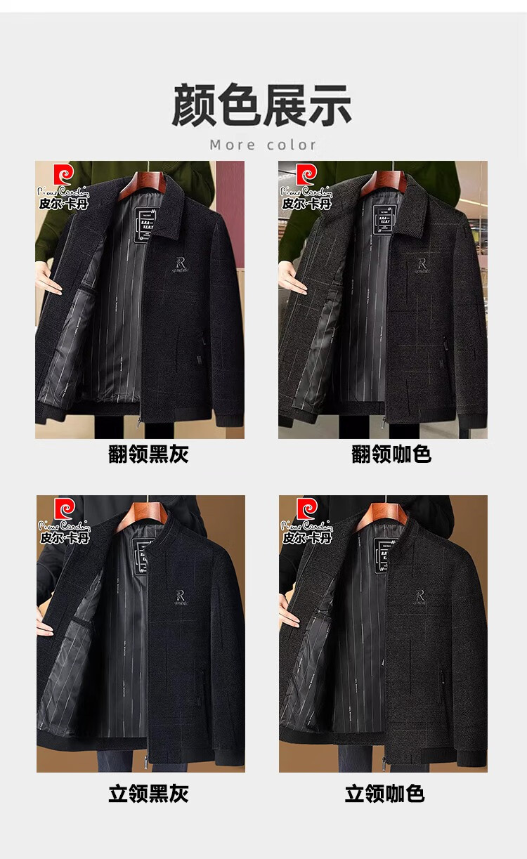 Pierre Cardin jacket men's spring and autumn chenille plus velvet thickened warm jacket middle-aged and elderly casual tops men's dad wear black and gray stand-up collar thick style without velvet XL (180) Recommended weight 110-130Jin Jin is equal to 0.5 kg
