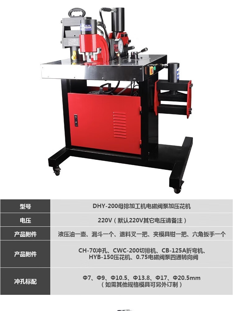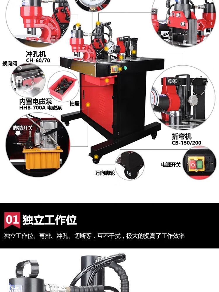 Berrytian hydraulic busbar processing all-in-one machine three-in-one copper and aluminum bar cutting and punching curved bar multifunctional busbar processing CHY-150 cutting and punching dome bar + solenoid valve pump
