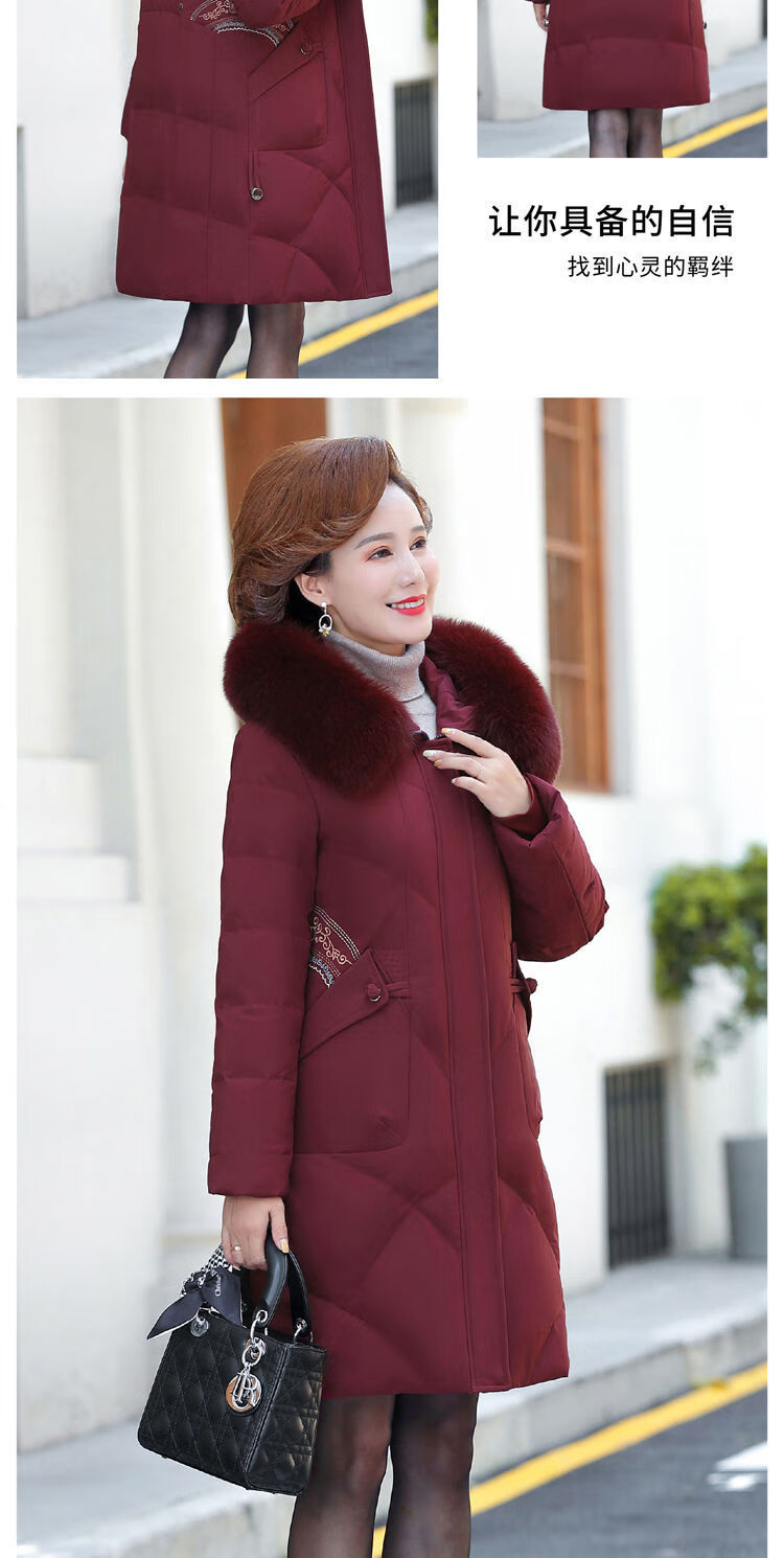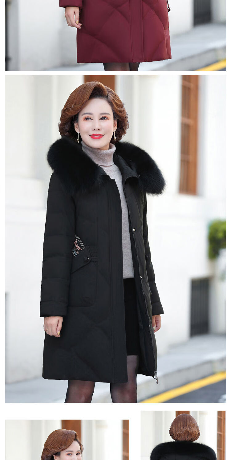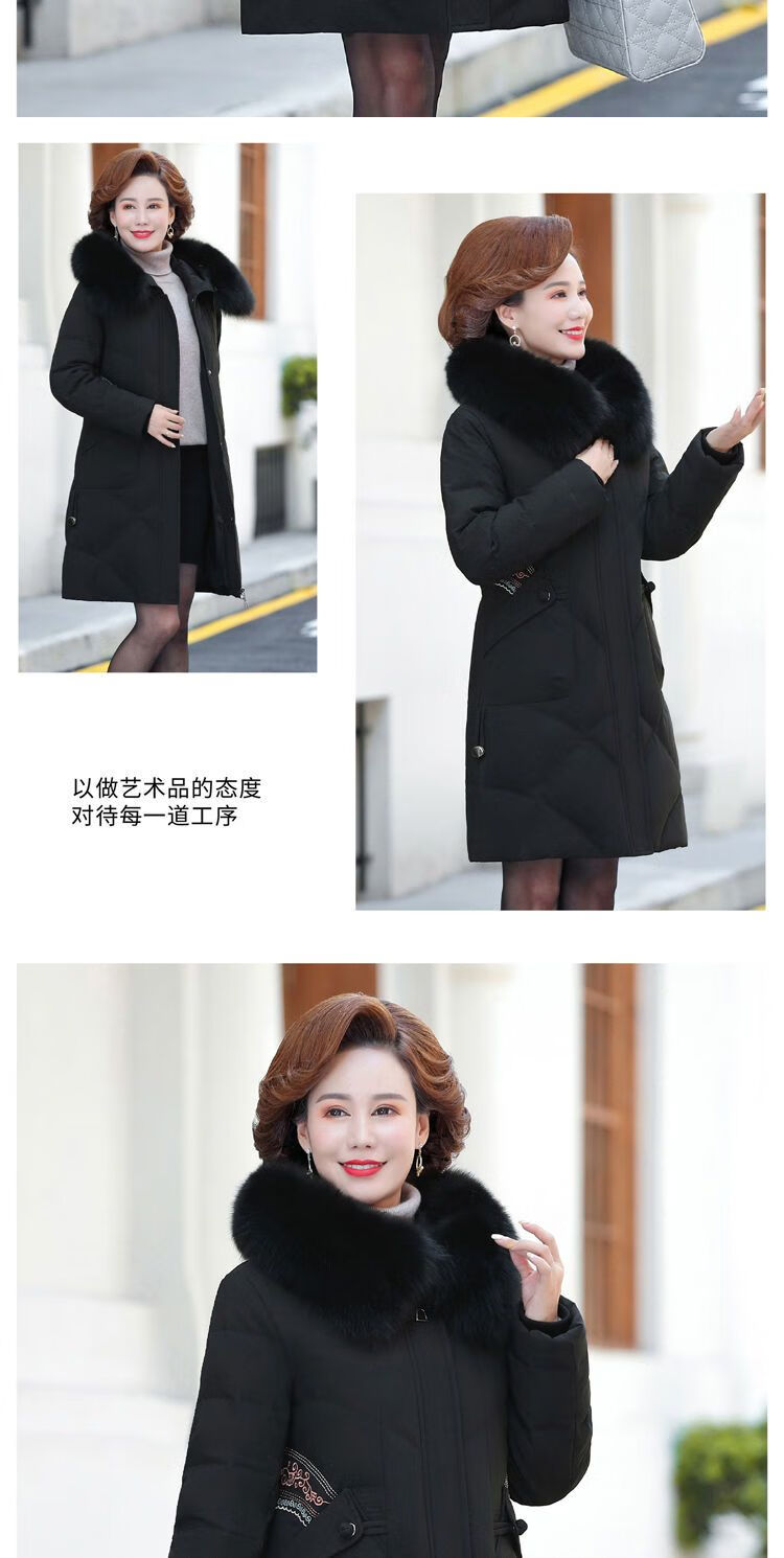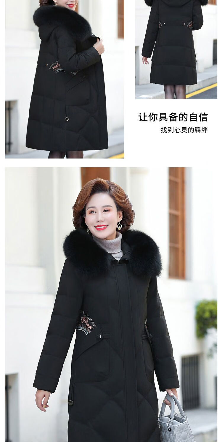 Pierre Cardin middle-aged and elderly down jacket women's mid-length 2023 winter new style middle-aged mother's winter wear thickened embroidered warm jacket black XL recommended 90-115Jin Jin equals 0.5 kg