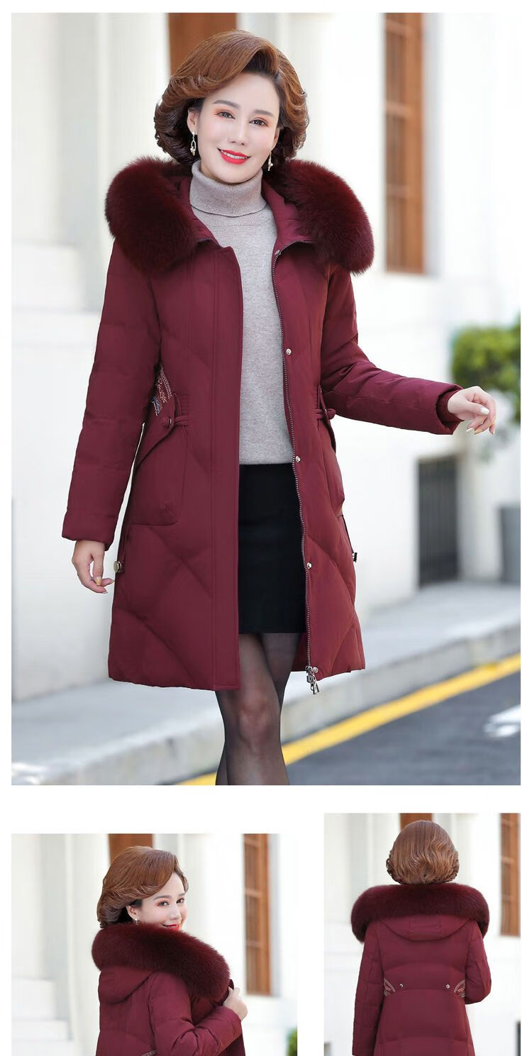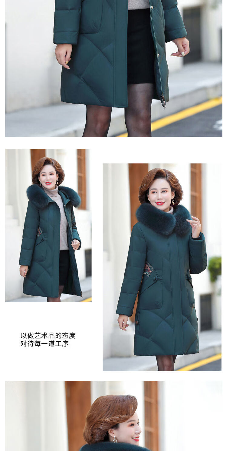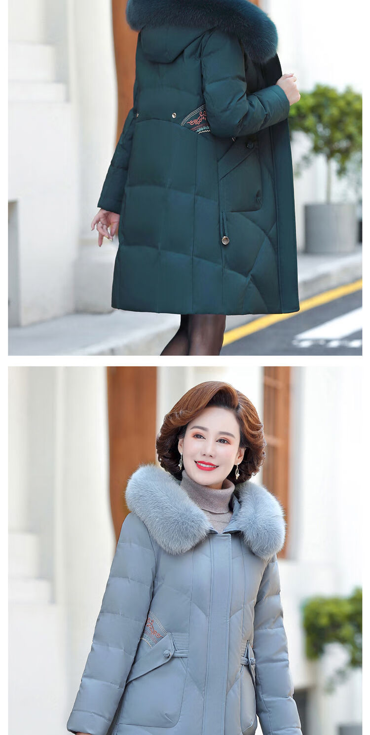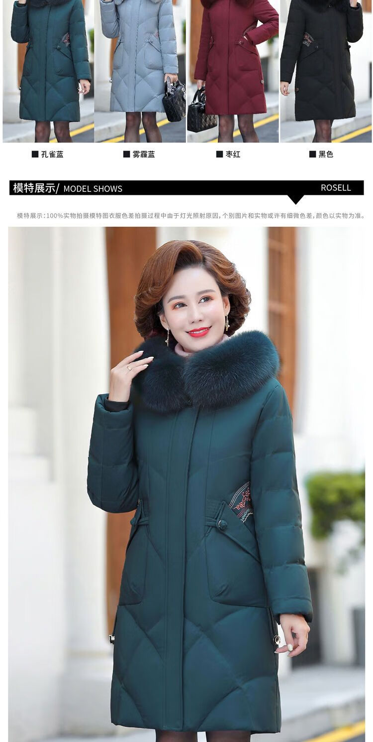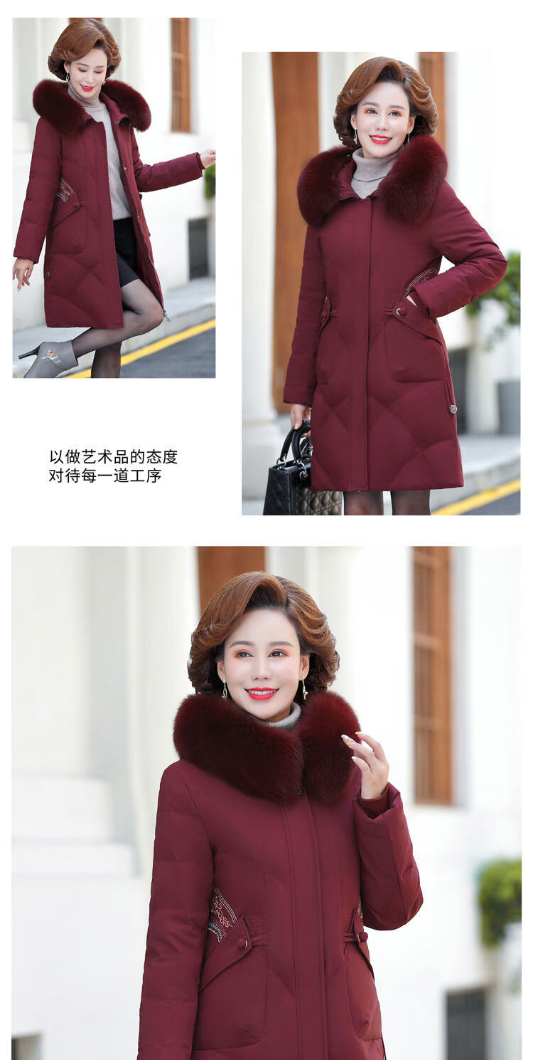 Pierre Cardin middle-aged and elderly down jacket women's mid-length 2023 winter new style middle-aged mother's winter wear thickened embroidered warm jacket black XL recommended 90-115Jin Jin equals 0.5 kg