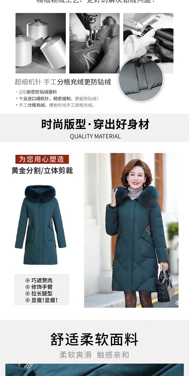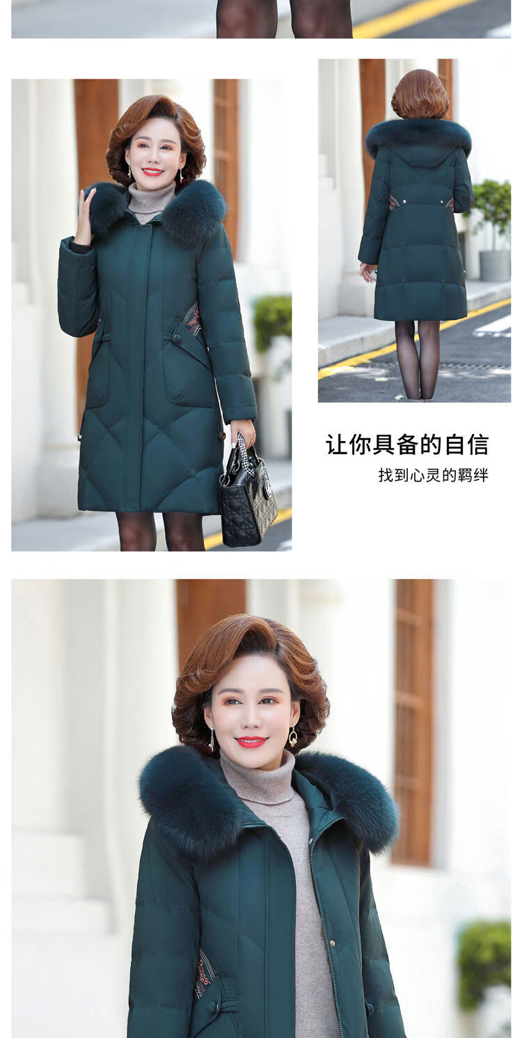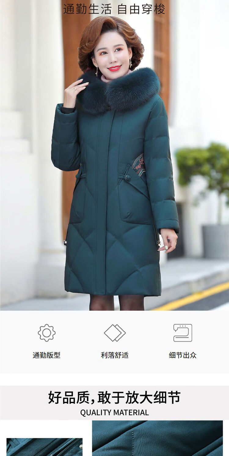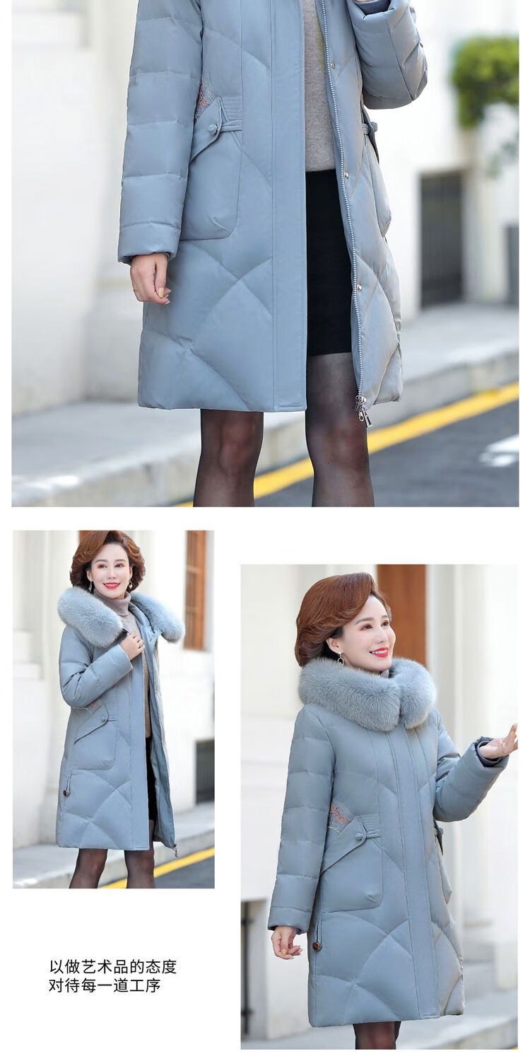 Pierre Cardin middle-aged and elderly down jacket women's mid-length 2023 winter new style middle-aged mother's winter wear thickened embroidered warm jacket black XL recommended 90-115Jin Jin equals 0.5 kg