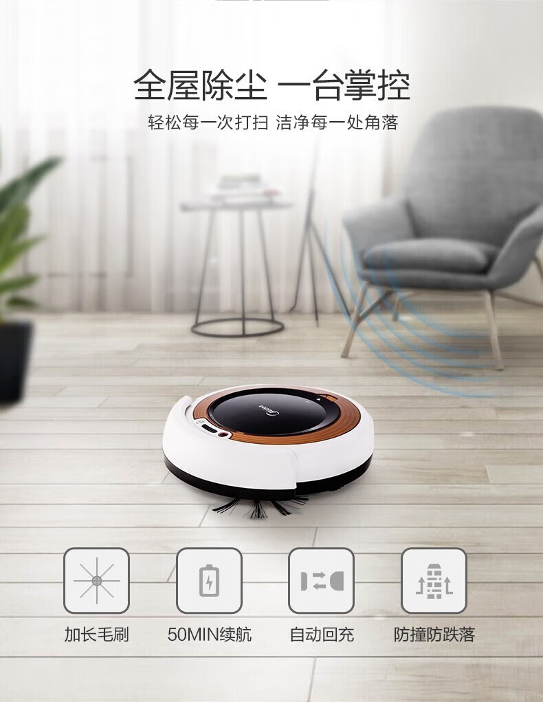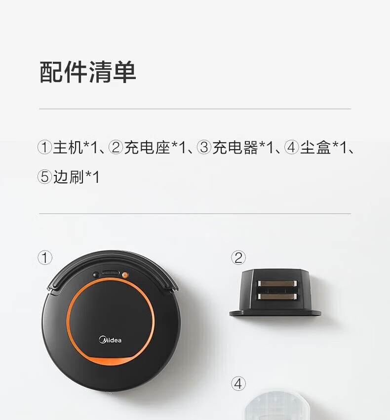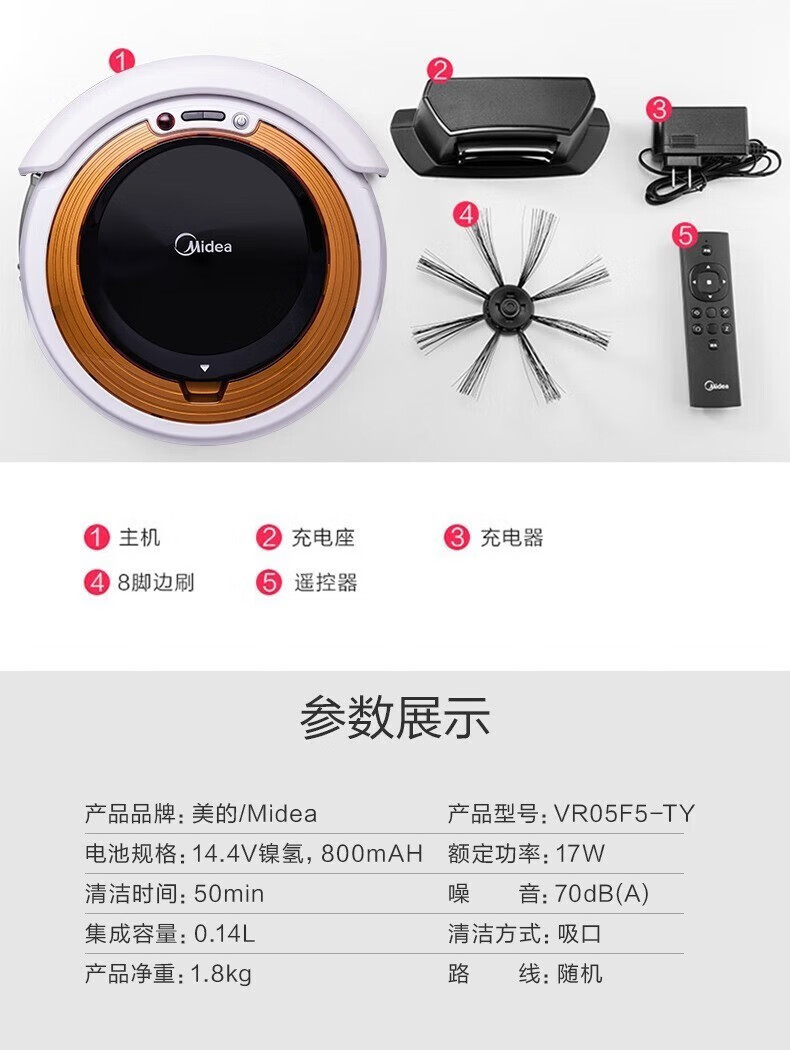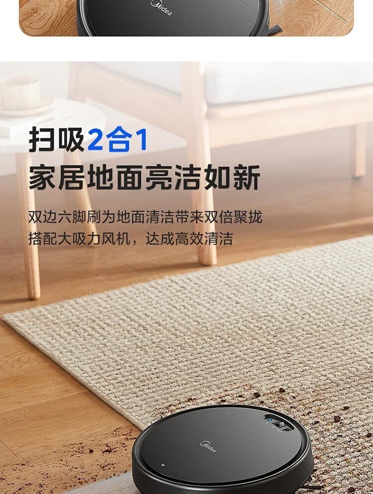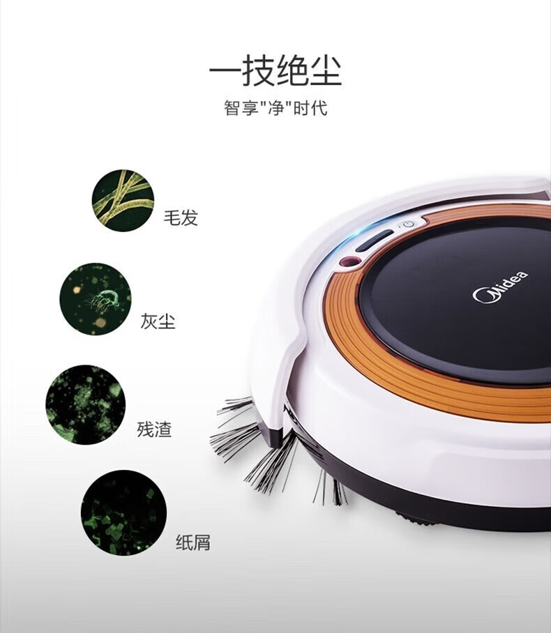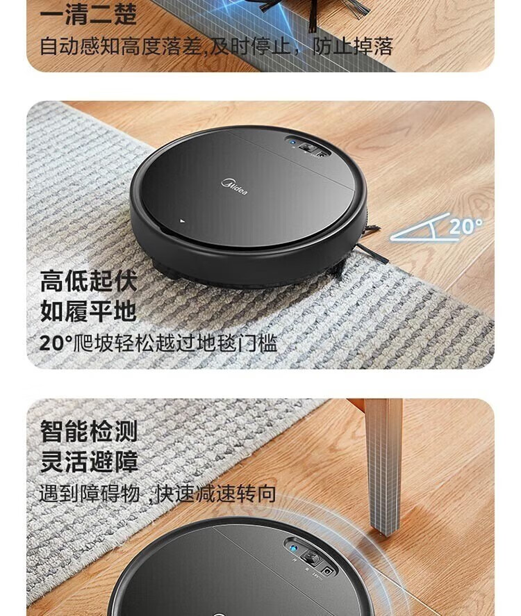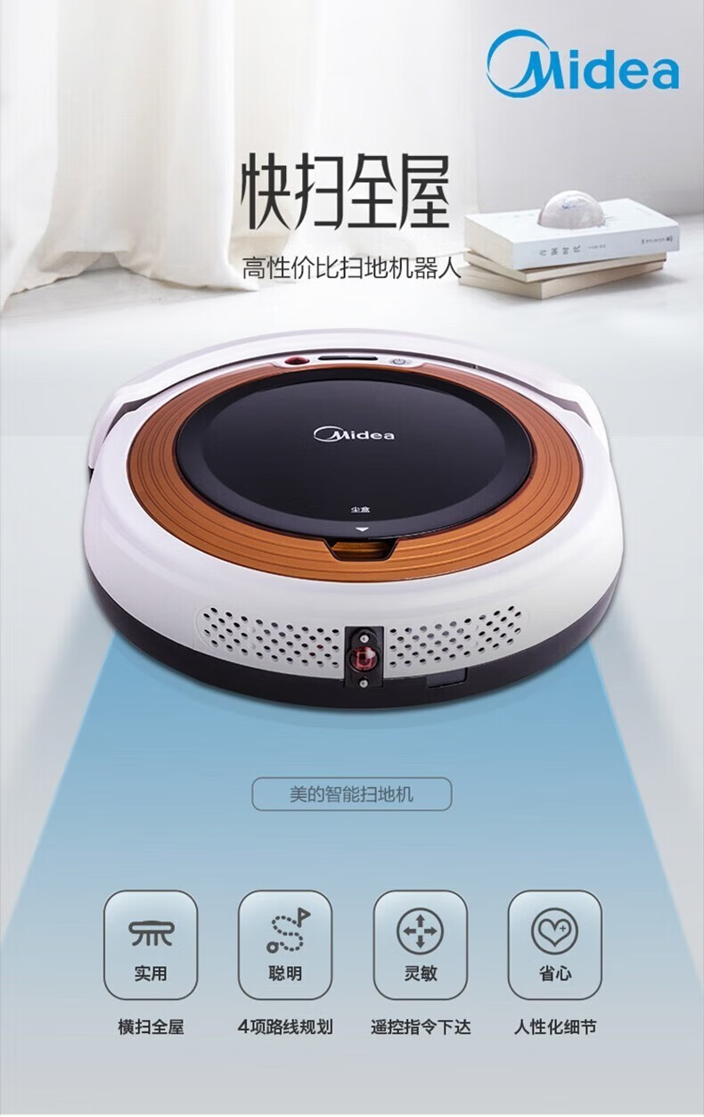 Midea integrated sweeping and suction fully automatic sweeping robot with slim body, environmental sensing, low noise, VR05F5-TY, automatic recharging and anti-falling