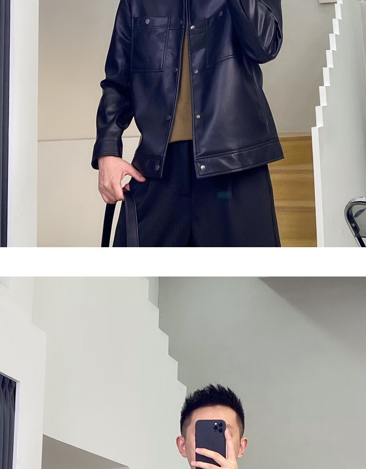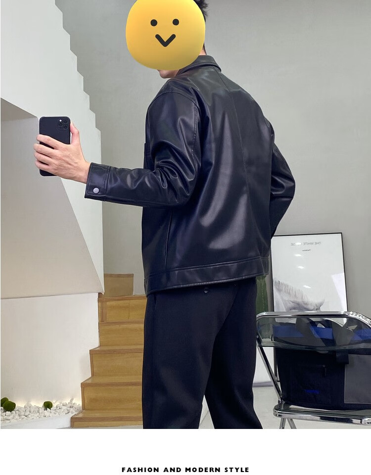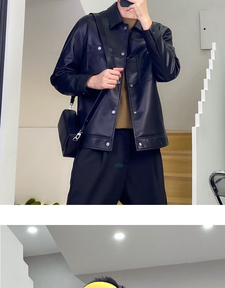 JAGR潮牌 皮衣男夹克外套2024防皮机车工装上衣百搭男士皮夹克 21811-2黑色 2XL-155斤