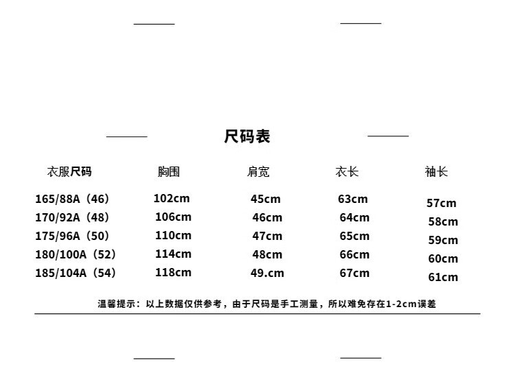 China (cm) 165 / 88-90 170 / 96-98 175 / 108-110 180 / 118-122 185 / 126-130