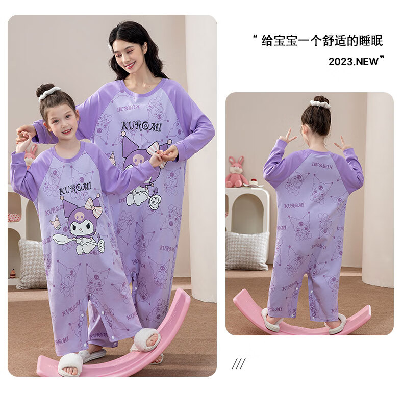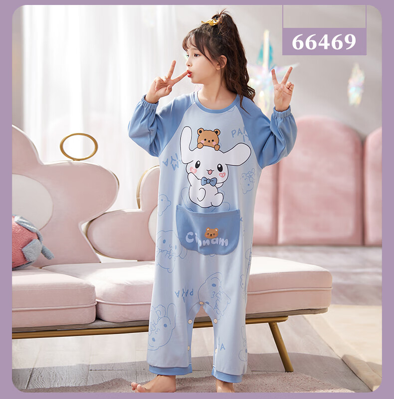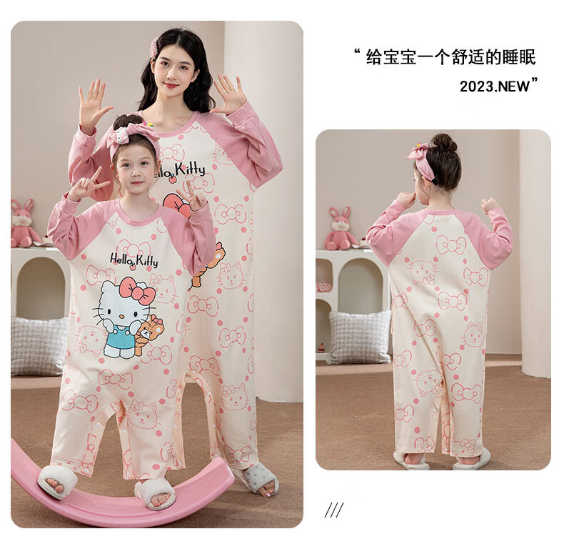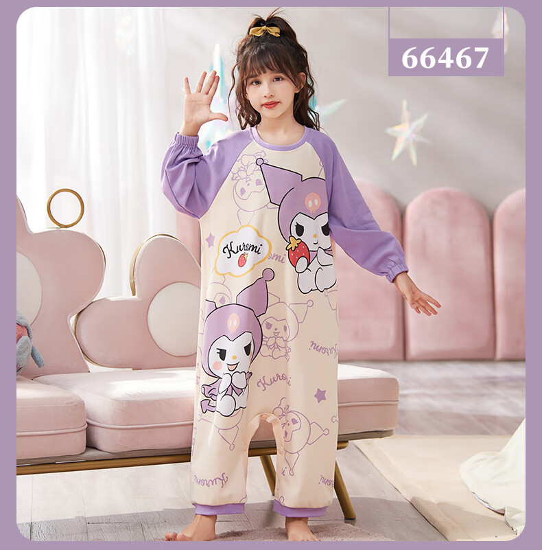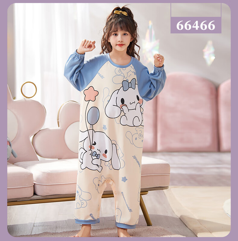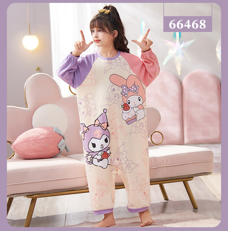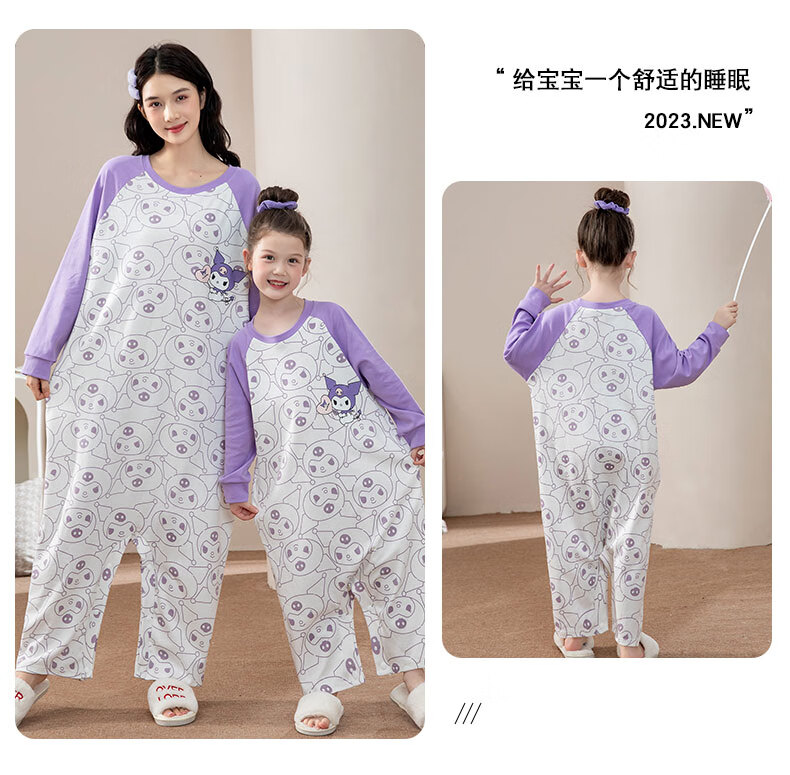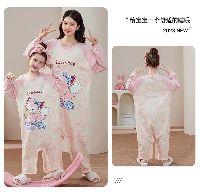 G.DUCKKIDS children's one-piece pajamas, girls' spring and autumn pure cotton medium and large children's parent-child pajamas, new cartoon baby anti-kick sleeping bag Q-33467#culomi 16 size (recommended height 130-140cm)