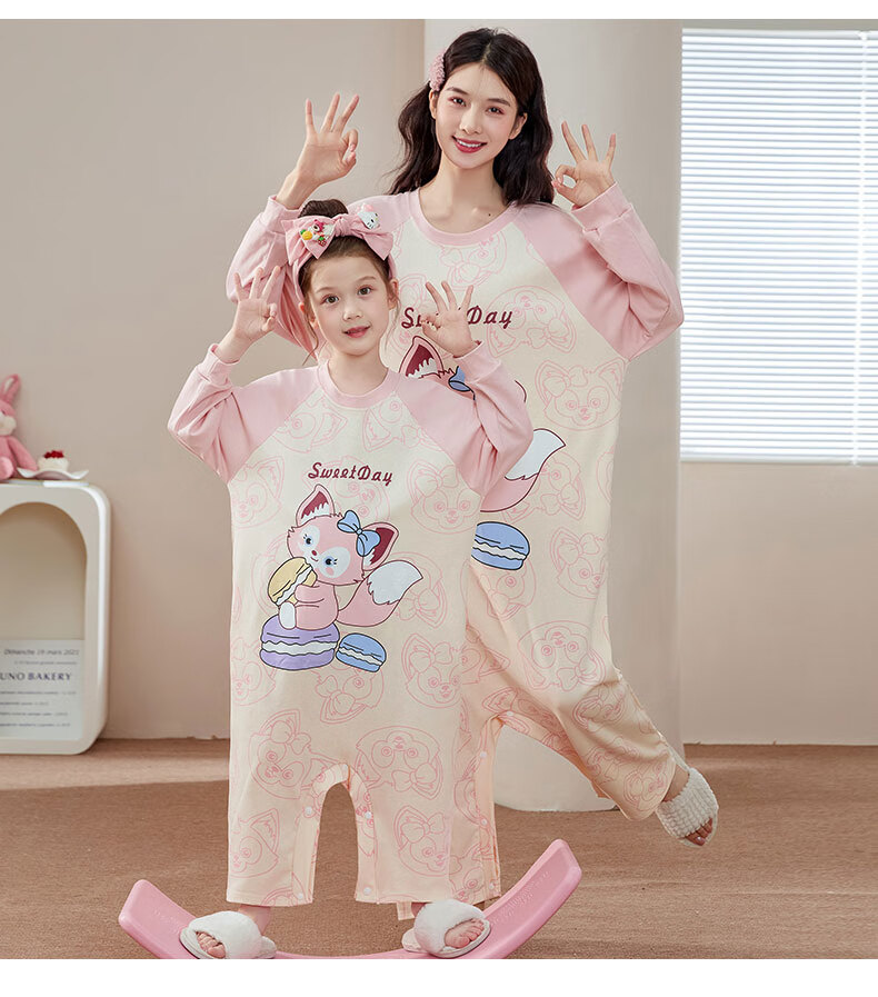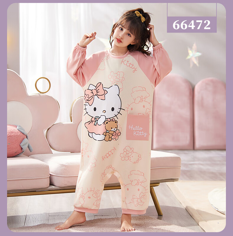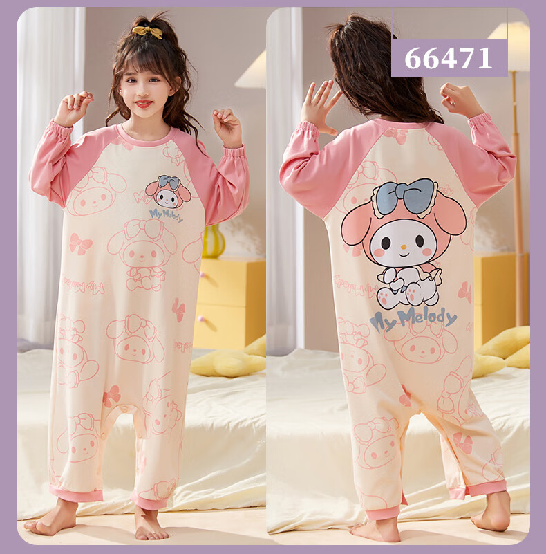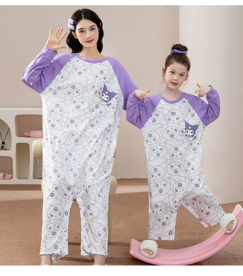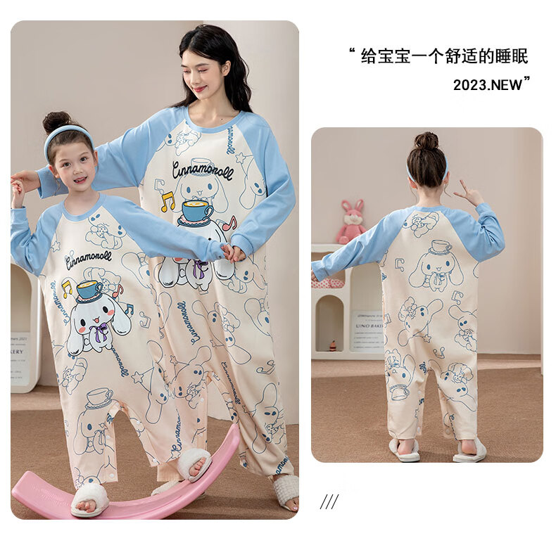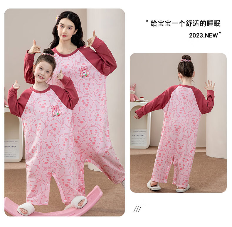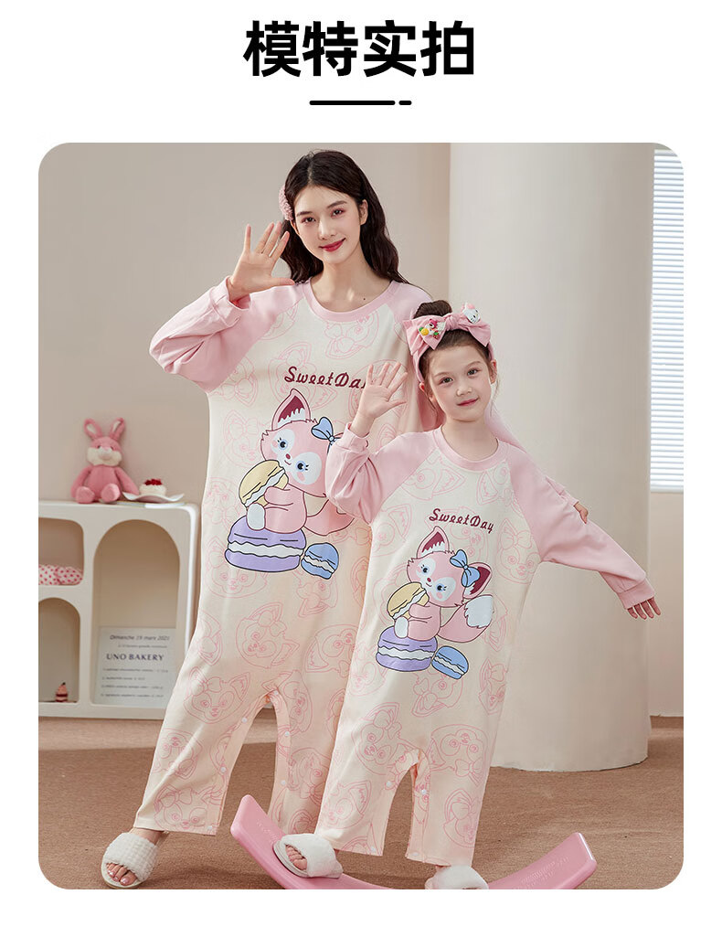 G.DUCKKIDS children's one-piece pajamas, girls' spring and autumn pure cotton medium and large children's parent-child pajamas, new cartoon baby anti-kick sleeping bag Q-33467#culomi 16 size (recommended height 130-140cm)