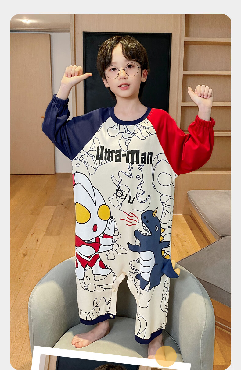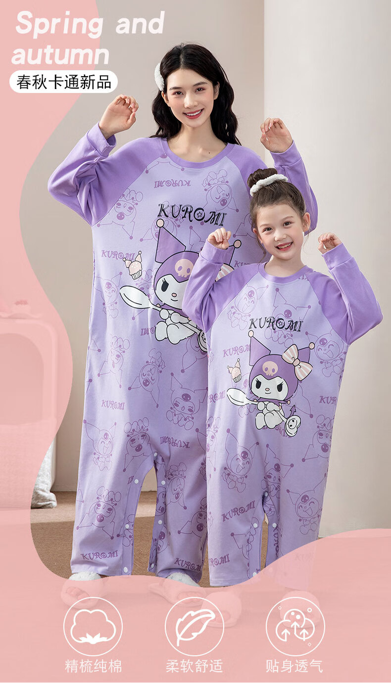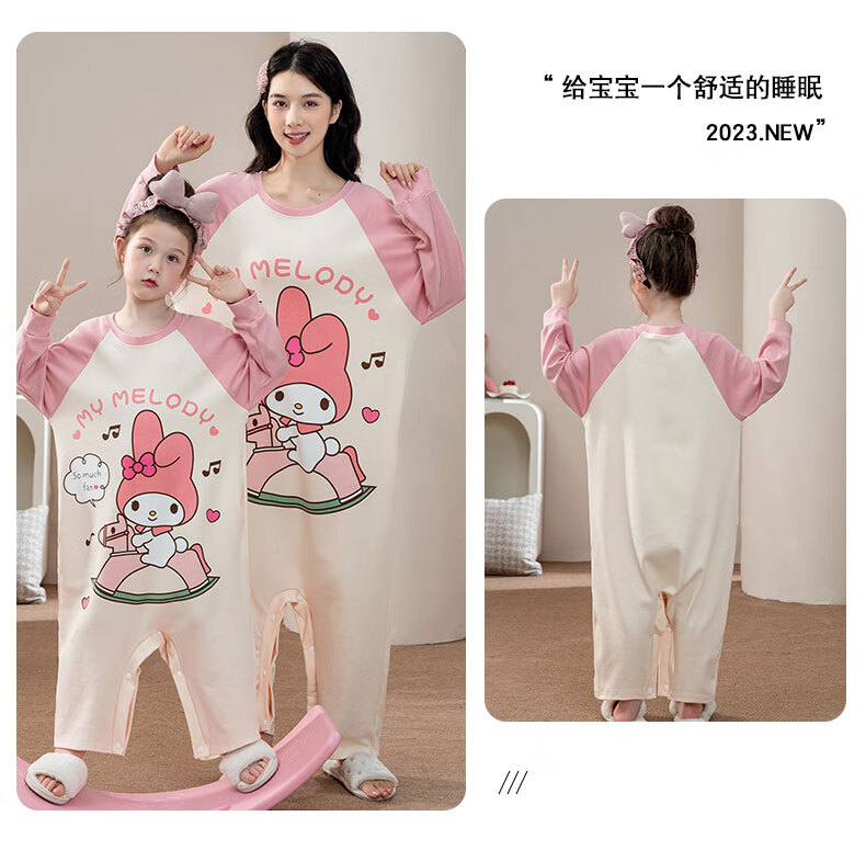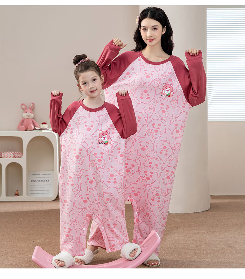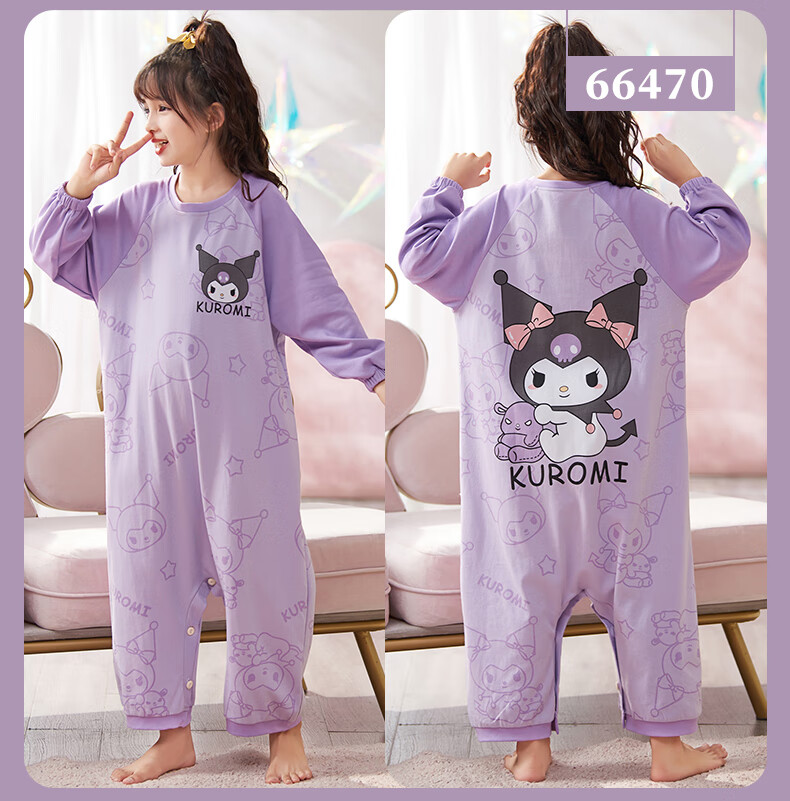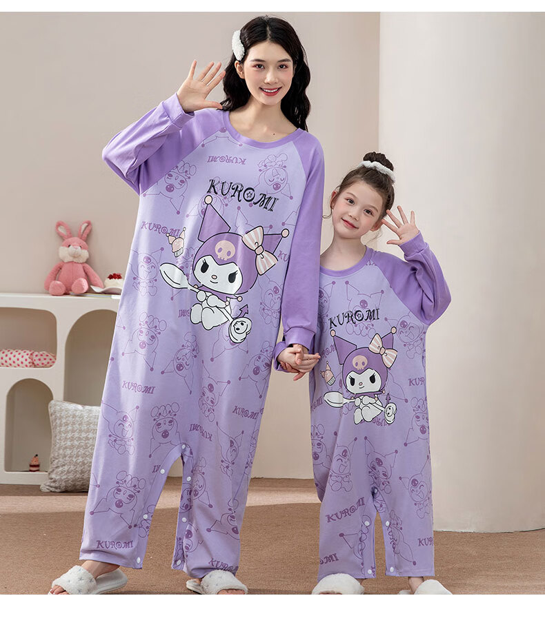 G.DUCKKIDS children's one-piece pajamas, girls' spring and autumn pure cotton medium and large children's parent-child pajamas, new cartoon baby anti-kick sleeping bag Q-33467#culomi 16 size (recommended height 130-140cm)
