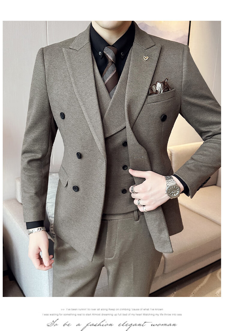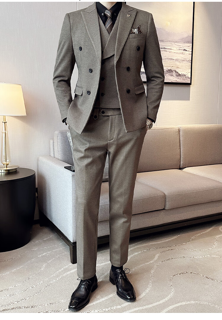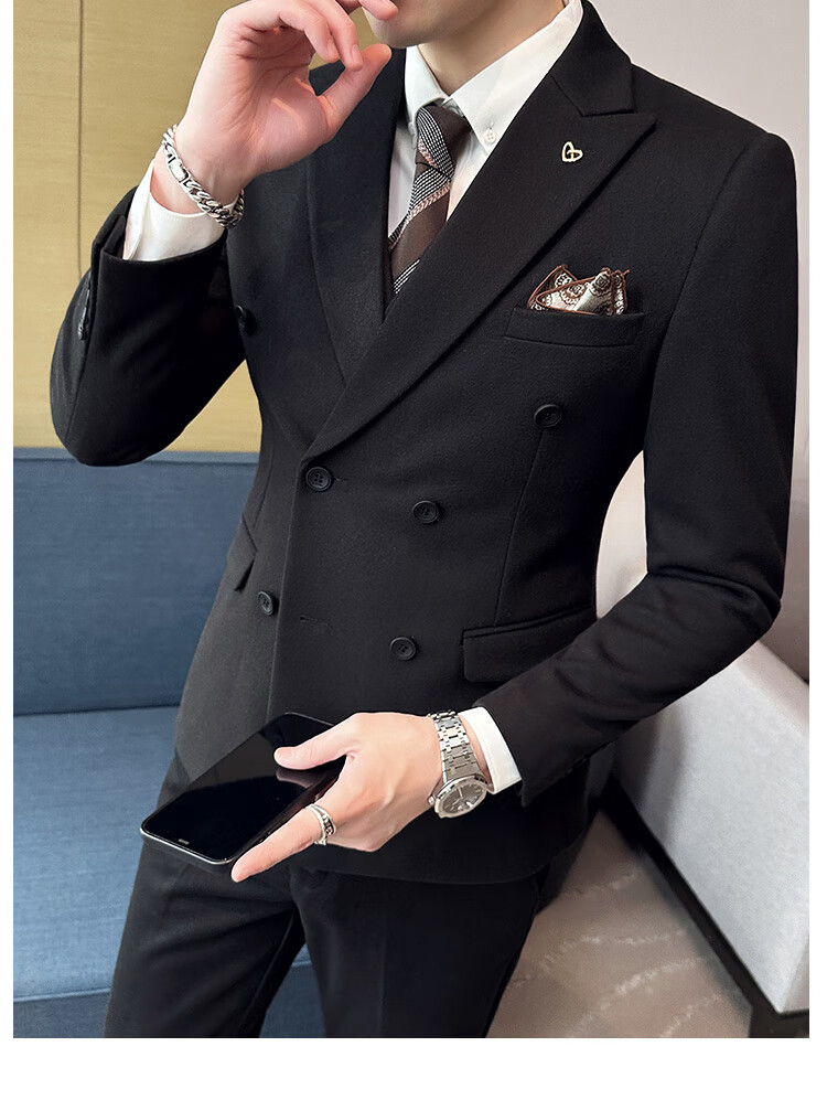 Jason's high-end woolen suit jacket men's autumn and winter business formal double-breasted casual suit suit Korean version slim black (suit + vest + pants) 3XL (150-165Jin Jin equals 0.5kg)