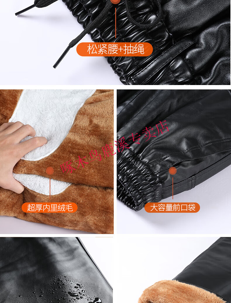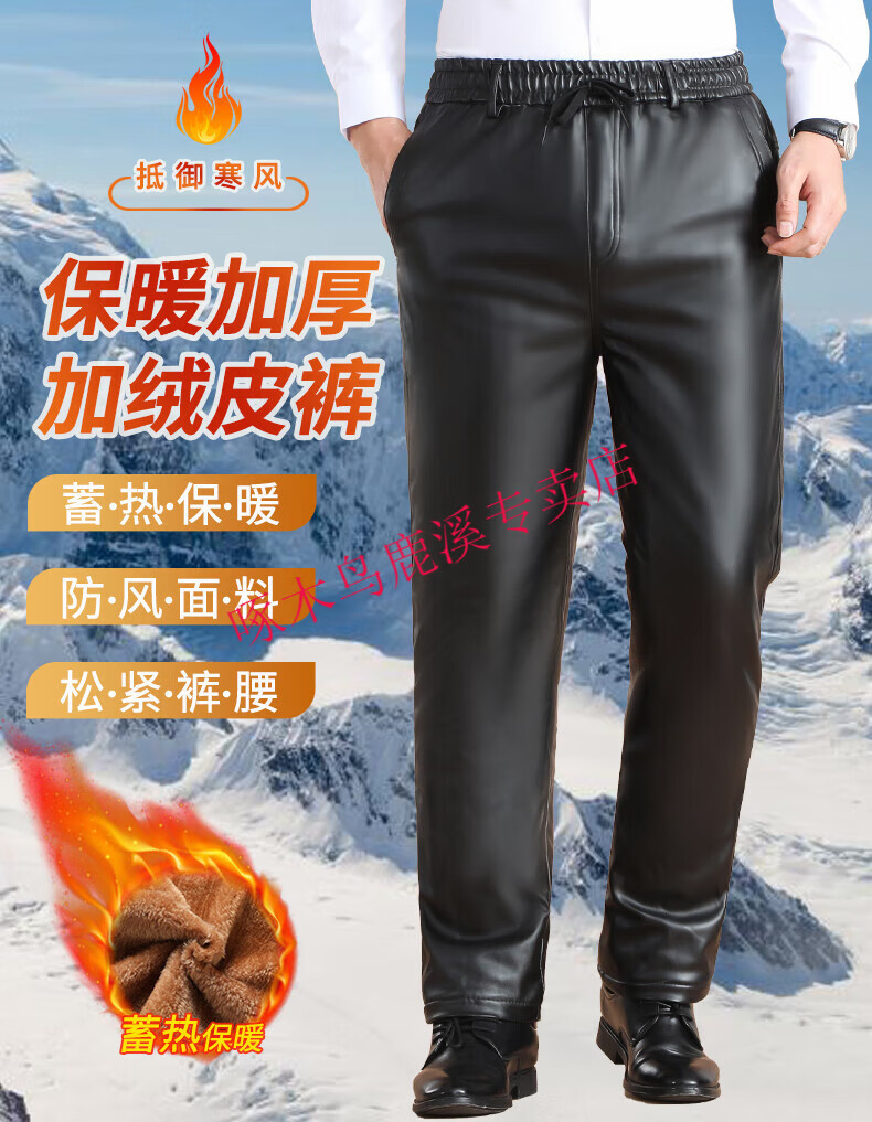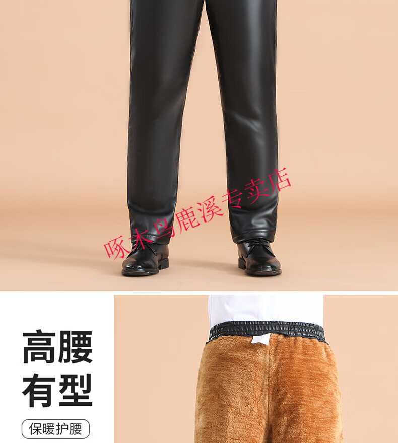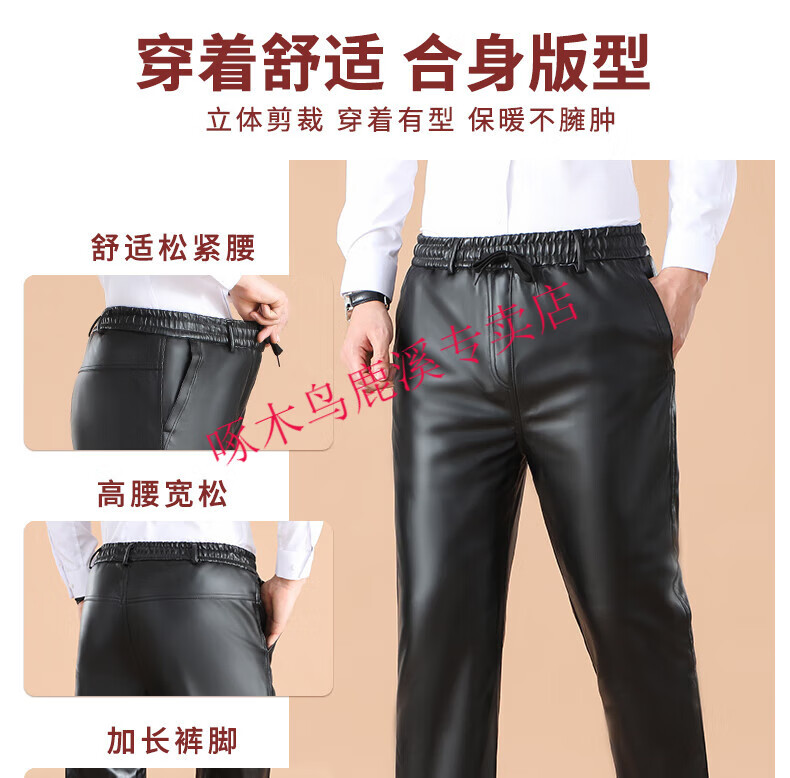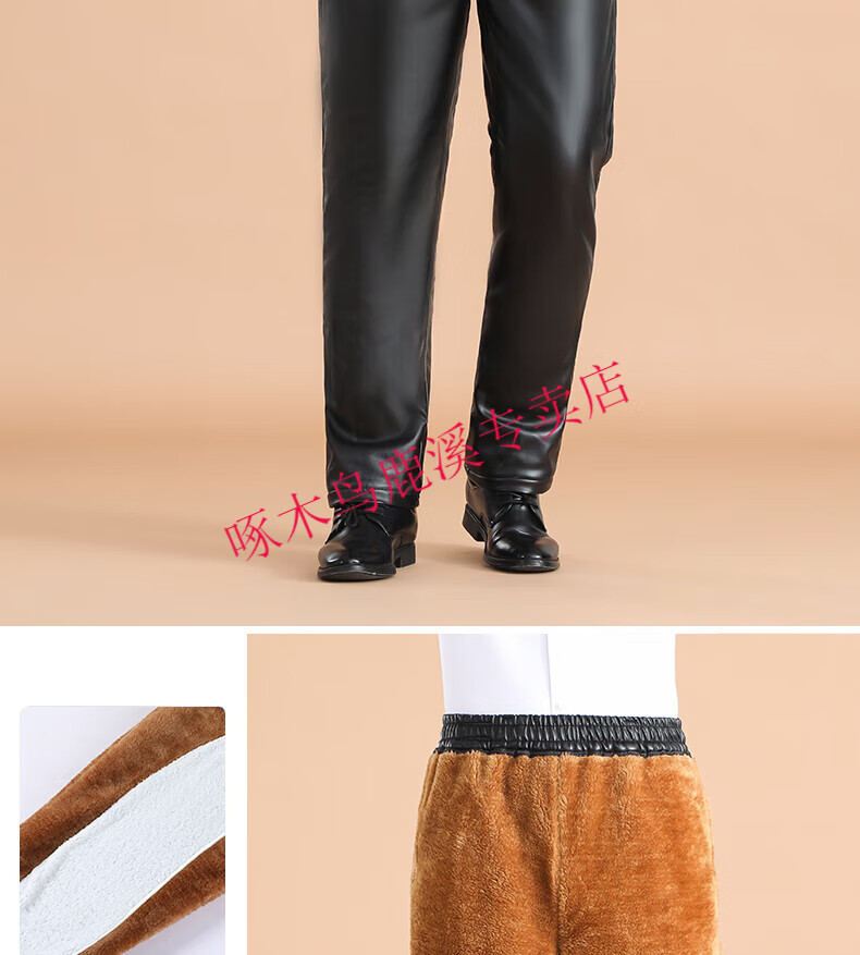 Woodpecker (TUCANO) Men's Leather Pants, Loose, Windproof, Warm, Velvet, Thickened, Waterproof, Motorcycle Riding, Wear-Resistant, Middle-aged and Elderly Labor Protection Work Pants, 801 Leather Pants, Gold Velvet Full Elasticity, 2XL (Recommended 120-140 Jin Jin is equal to 0.5 kg) Size is too small