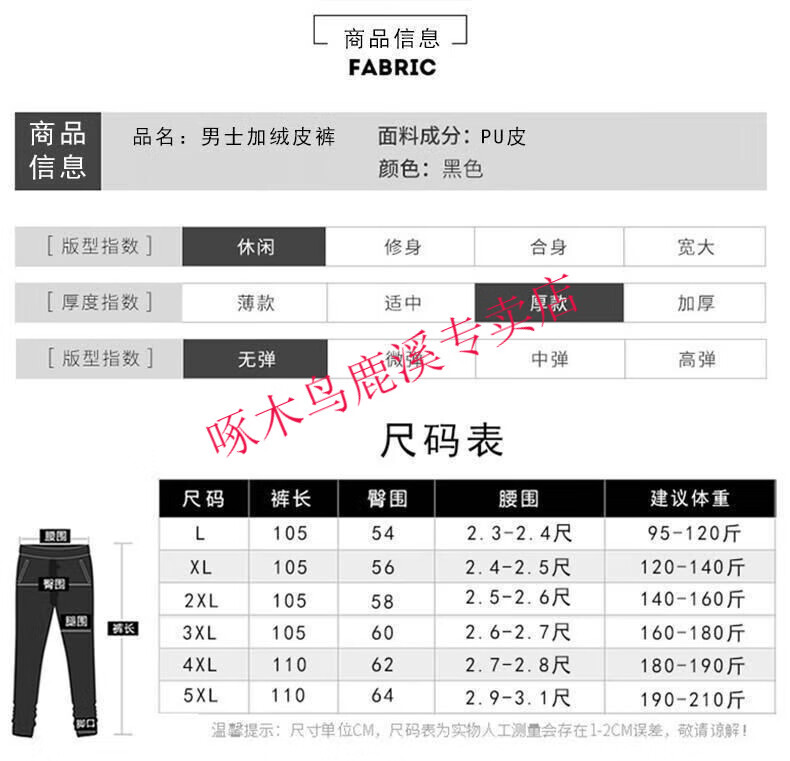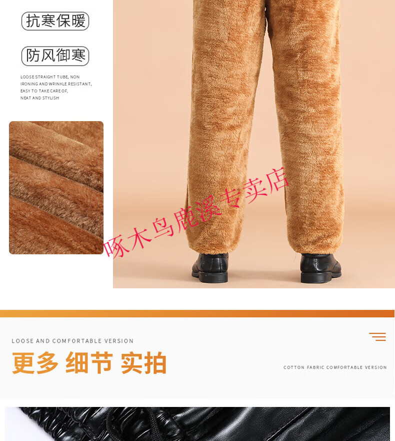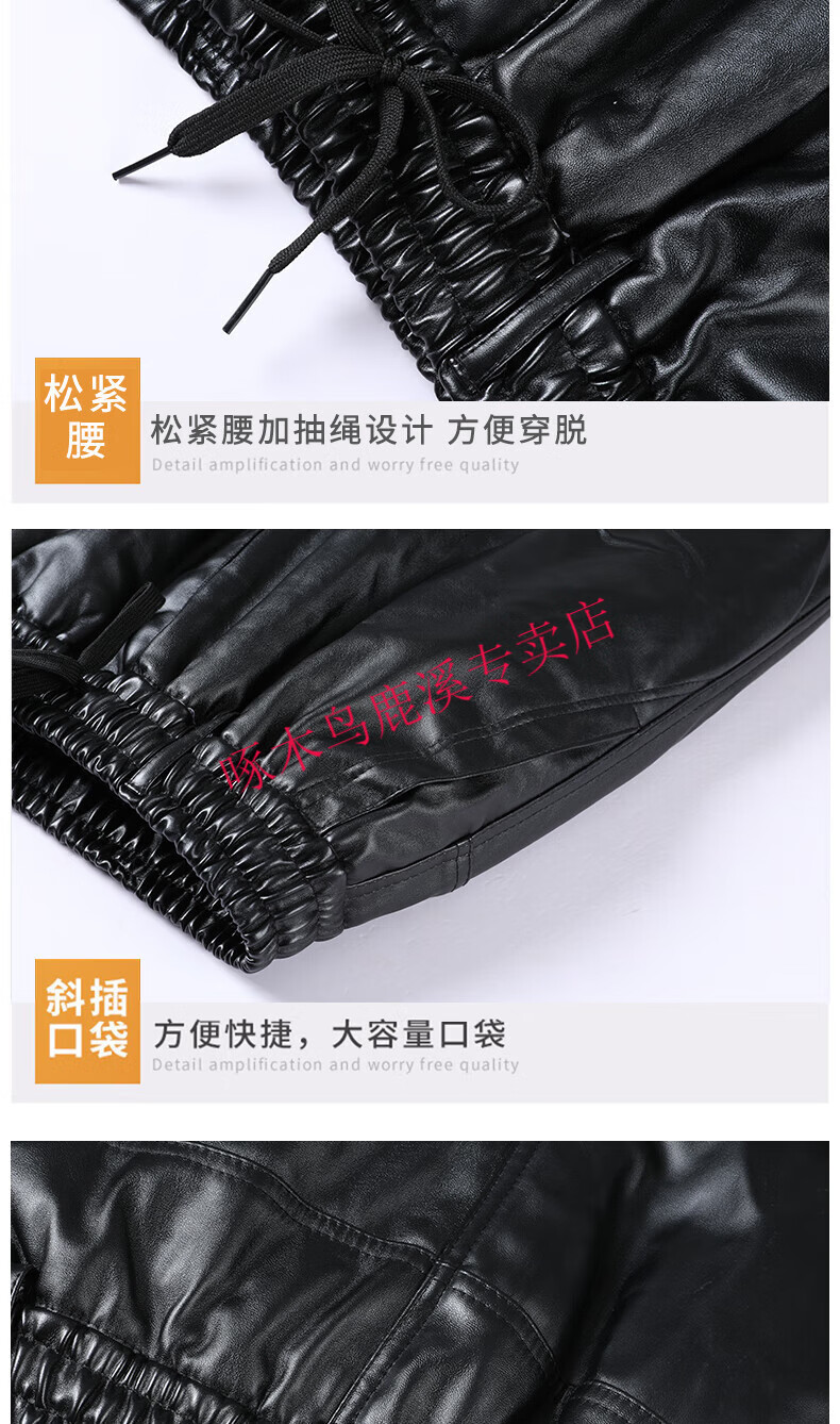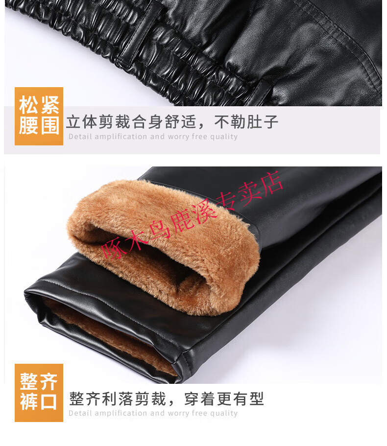 Woodpecker (TUCANO) Men's Leather Pants, Loose, Windproof, Warm, Velvet, Thickened, Waterproof, Motorcycle Riding, Wear-Resistant, Middle-aged and Elderly Labor Protection Work Pants, 801 Leather Pants, Gold Velvet Full Elasticity, 2XL (Recommended 120-140 Jin Jin is equal to 0.5 kg) Size is too small