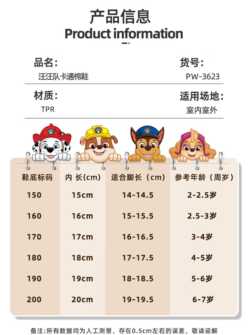 PAW PATROL PAW PATROL Children's Cotton Shoes 2025 New Winter Indoor Bag Heel Anti-Slip Cotton Slippers for Boys and Girls Furry Toe Slippers 3623 PAW Team Dark Blue Archie 15 Inner Length 15cm 150 Size Suitable for 23/24 Size