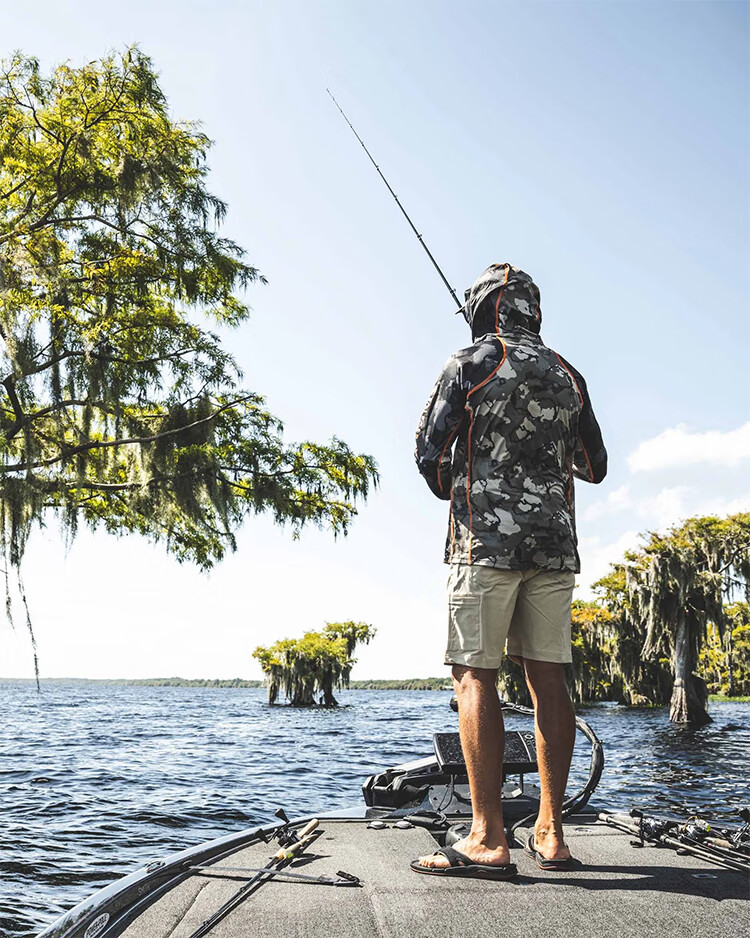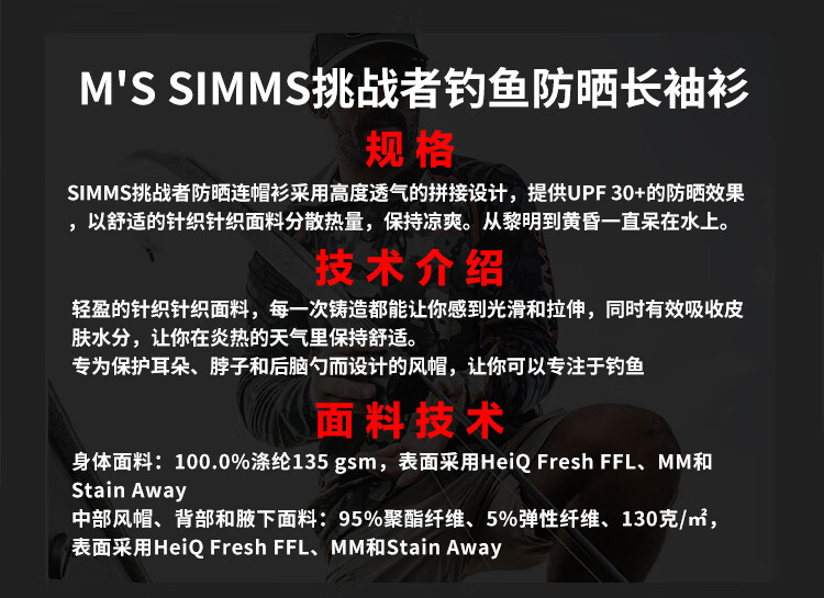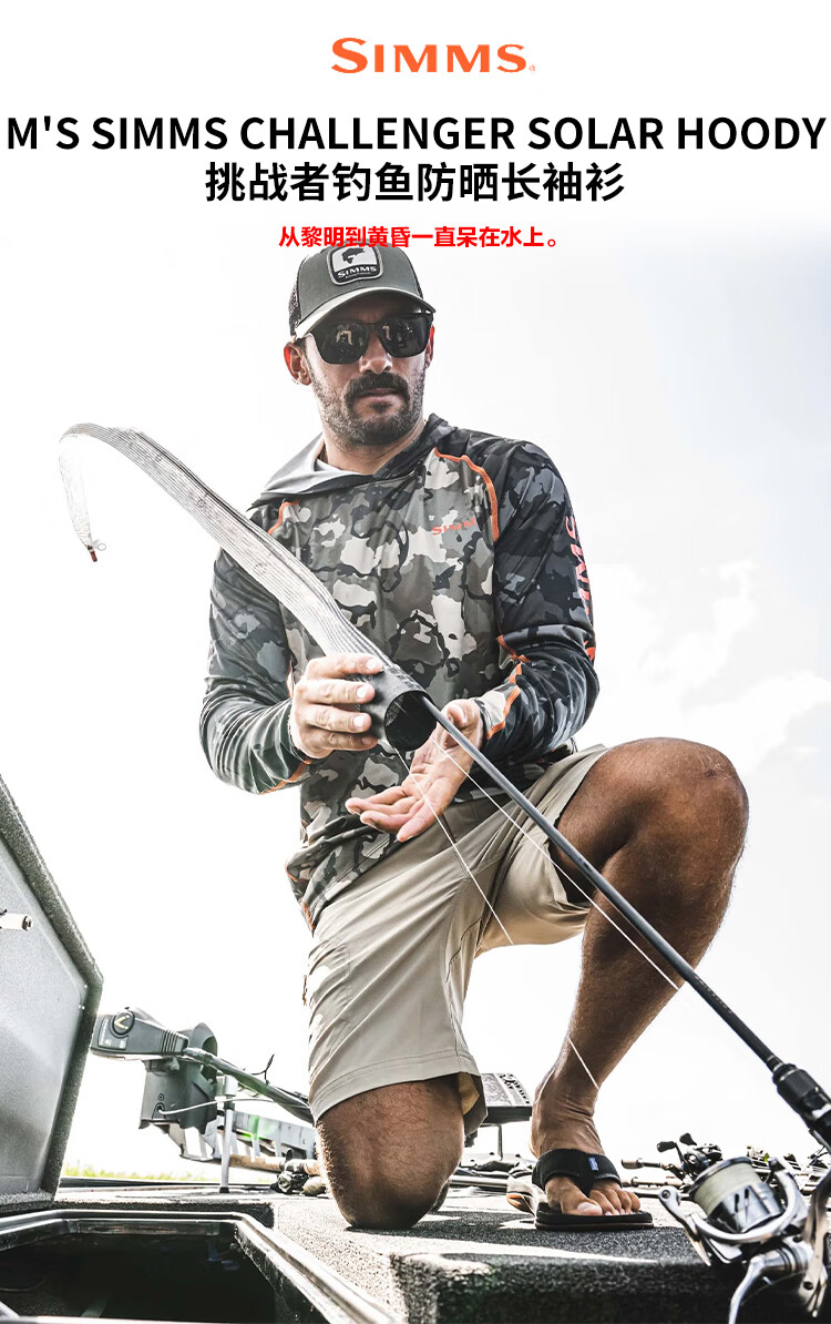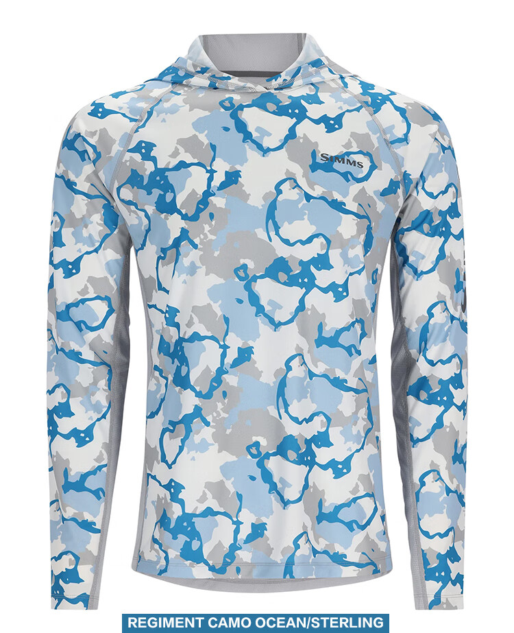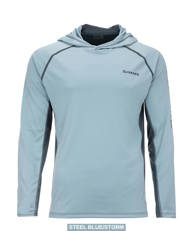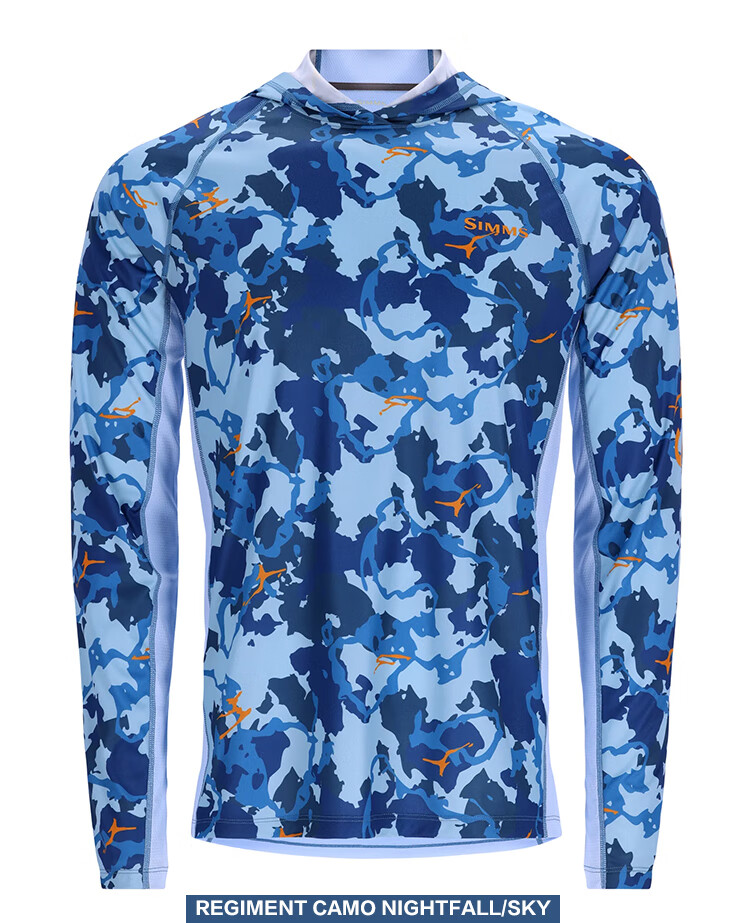 SIMMS Challenger hooded sun protection clothing Challenger spring and summer fishing clothing Luya sun protection clothing comfortable and breathable men's gray white light blue S