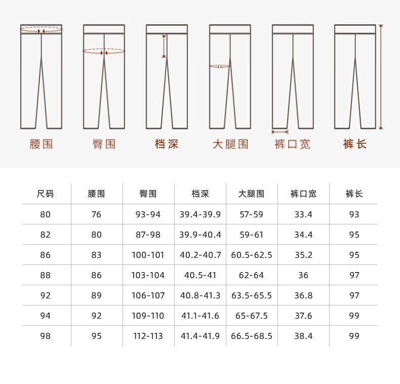 Outseam (cm) 99 cm 101.5 cm 104 cm 106.5 cm 109 cm