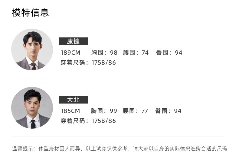 China (cm) 165 / 88-90 170 / 96-98 175 / 108-110 180 / 118-122 185 / 126-130