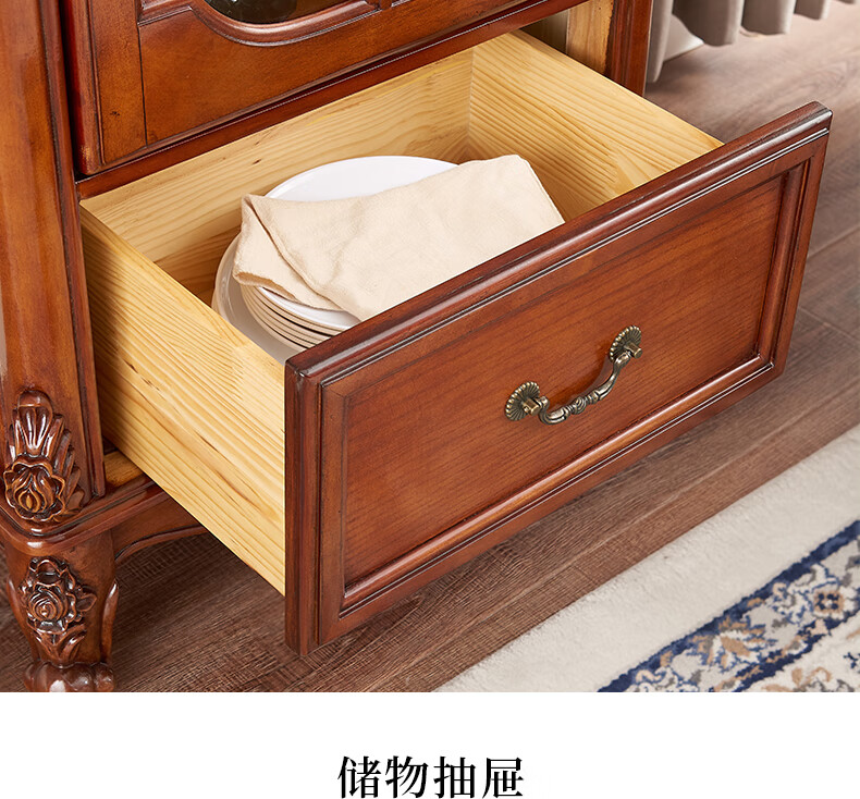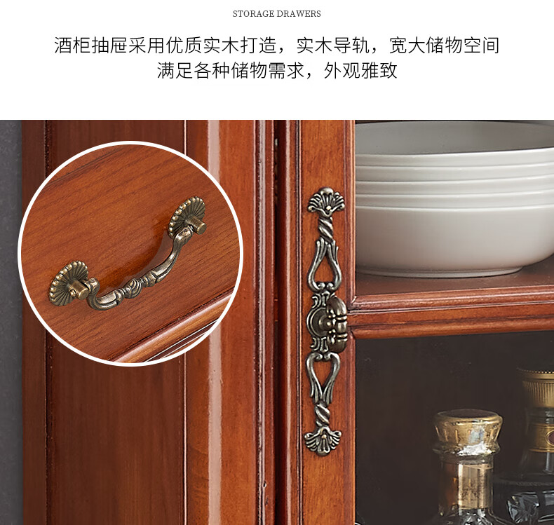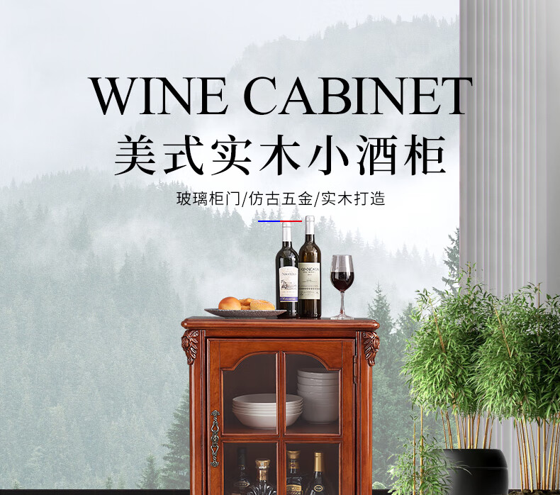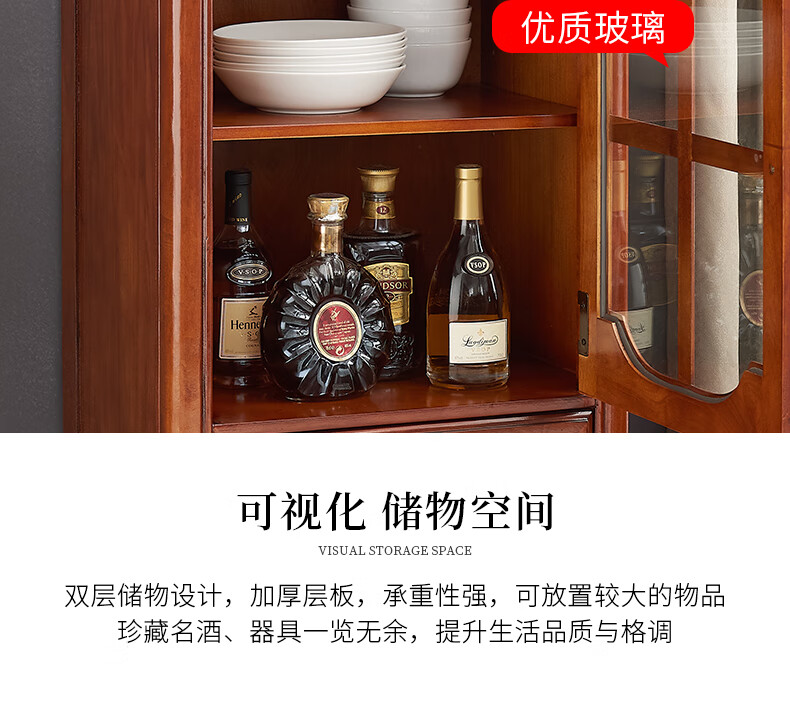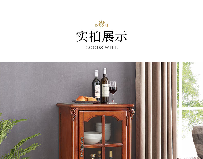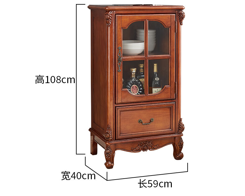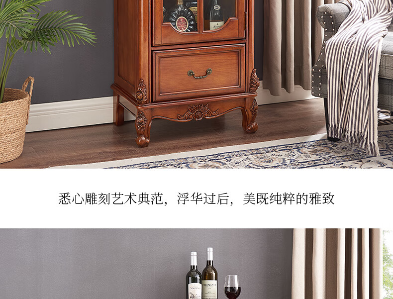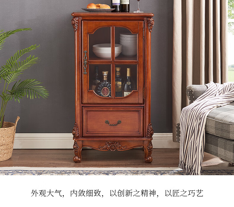 Xinhuayuan Wood American-style small wine cabinet European-style light luxury floor-standing all-solid wood side cabinet single-door wine cabinet home wall-mounted living room storage cabinet right door + cherry color