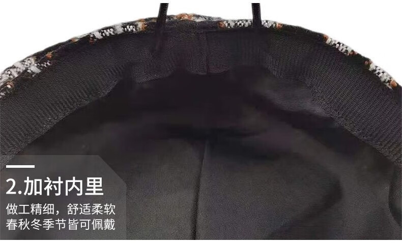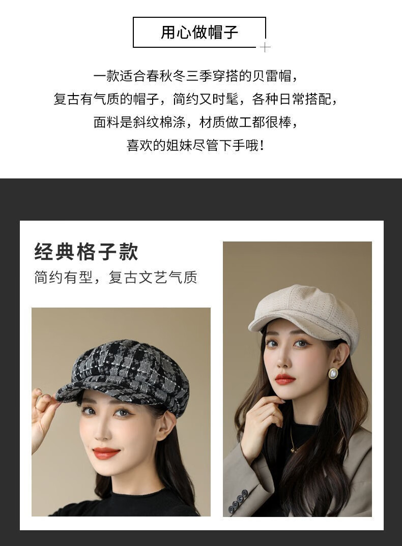 Changyin Fashion Hat Women's Versatile Winter Octagonal Hat Women's Round Face Spring and Autumn Warm Trend Korean Style Internet Celebrity British Houndstooth Black
