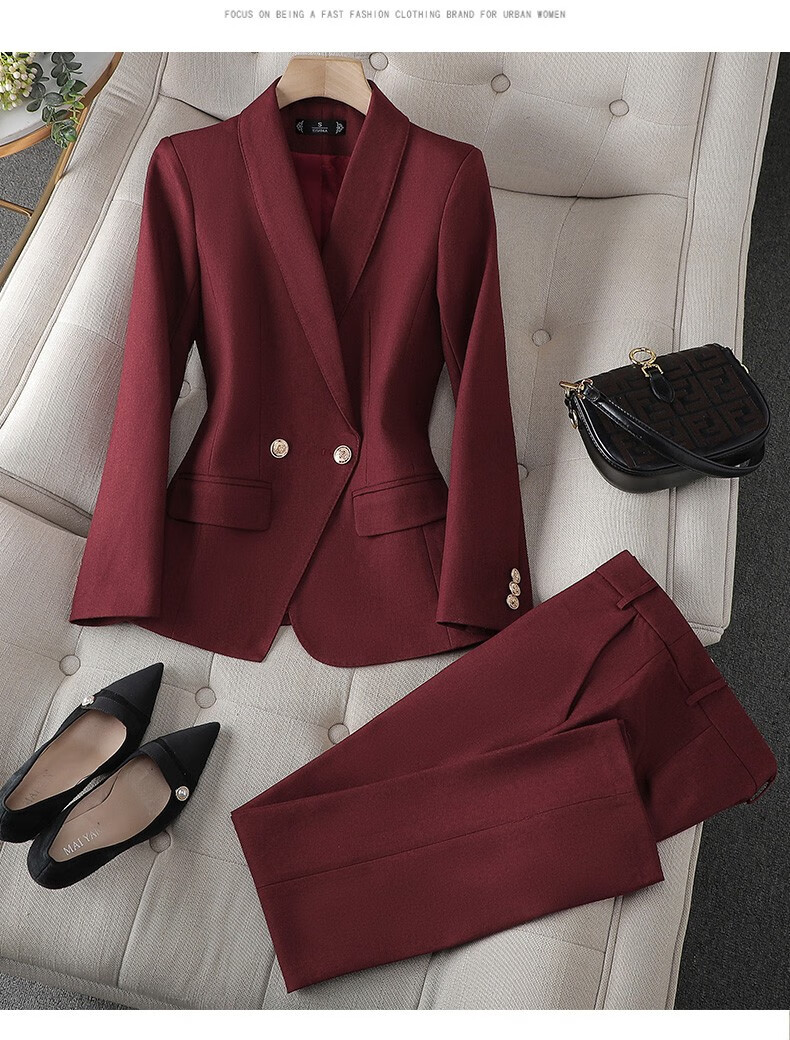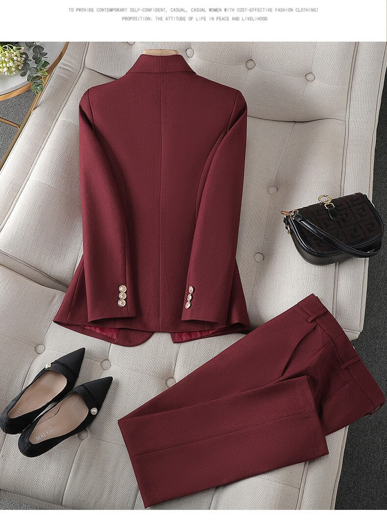 Jian Ting suit jacket women's 2026 spring and autumn new casual suit high-end professional temperament goddess style suit business formal wear maroon (suit + pants) M