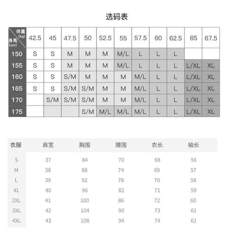 China (cm) 160-165/84-86 165-170 / 88-90 167-172 / 92-96 168-173 / 98-102 170-176 / 106-110